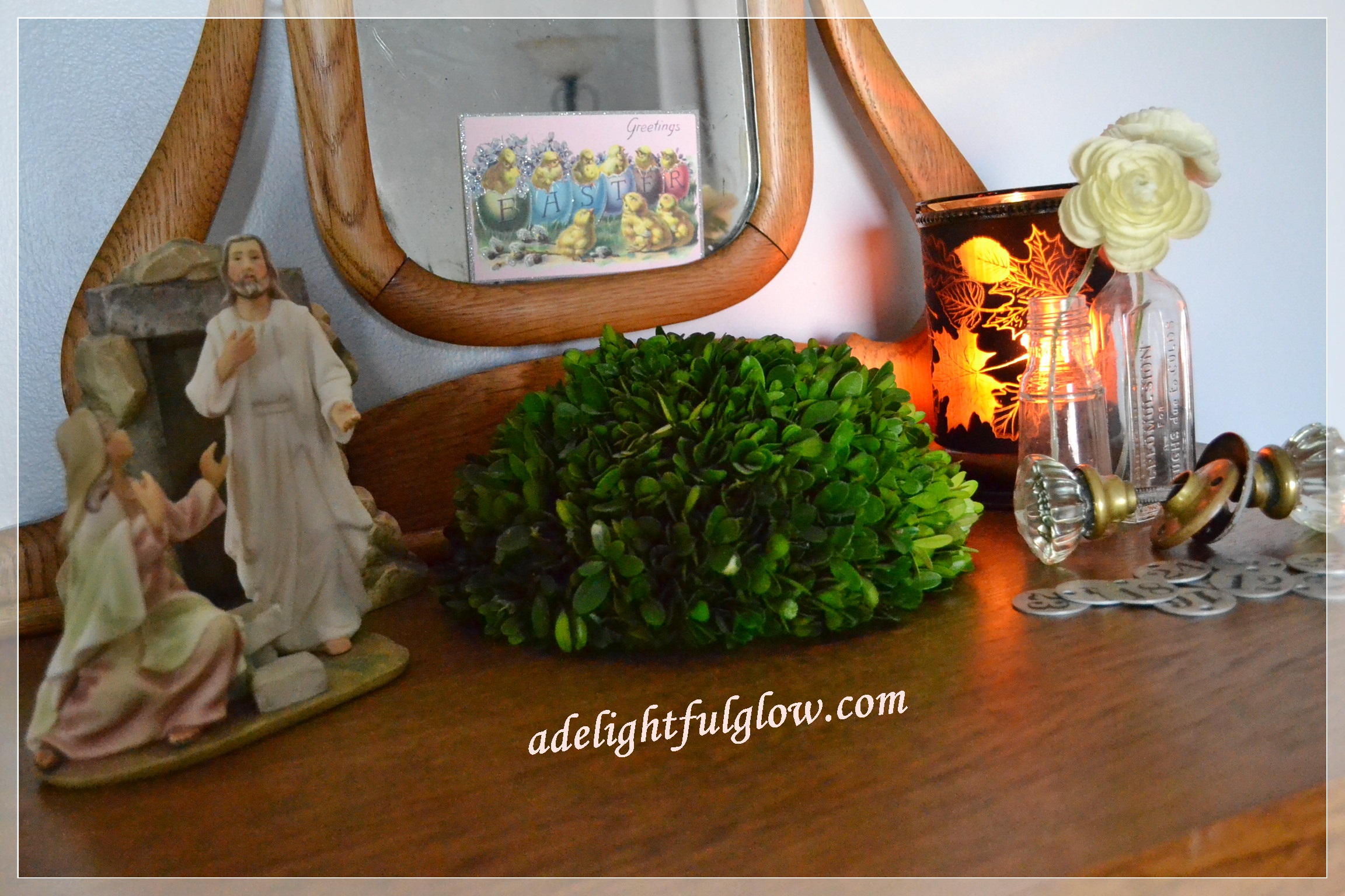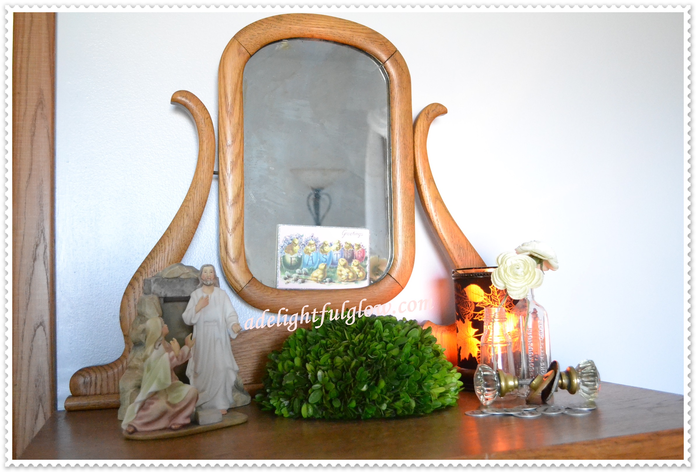 We talked about changing up decor a bit after Christmastime over here. When spring starts creeping closer and teasing us with sunshine and some seventies before wisping away to hide again, I usually think about getting out a few touches of Easter and spring. A few weeks back, I did some decor changing up and some dusting too!