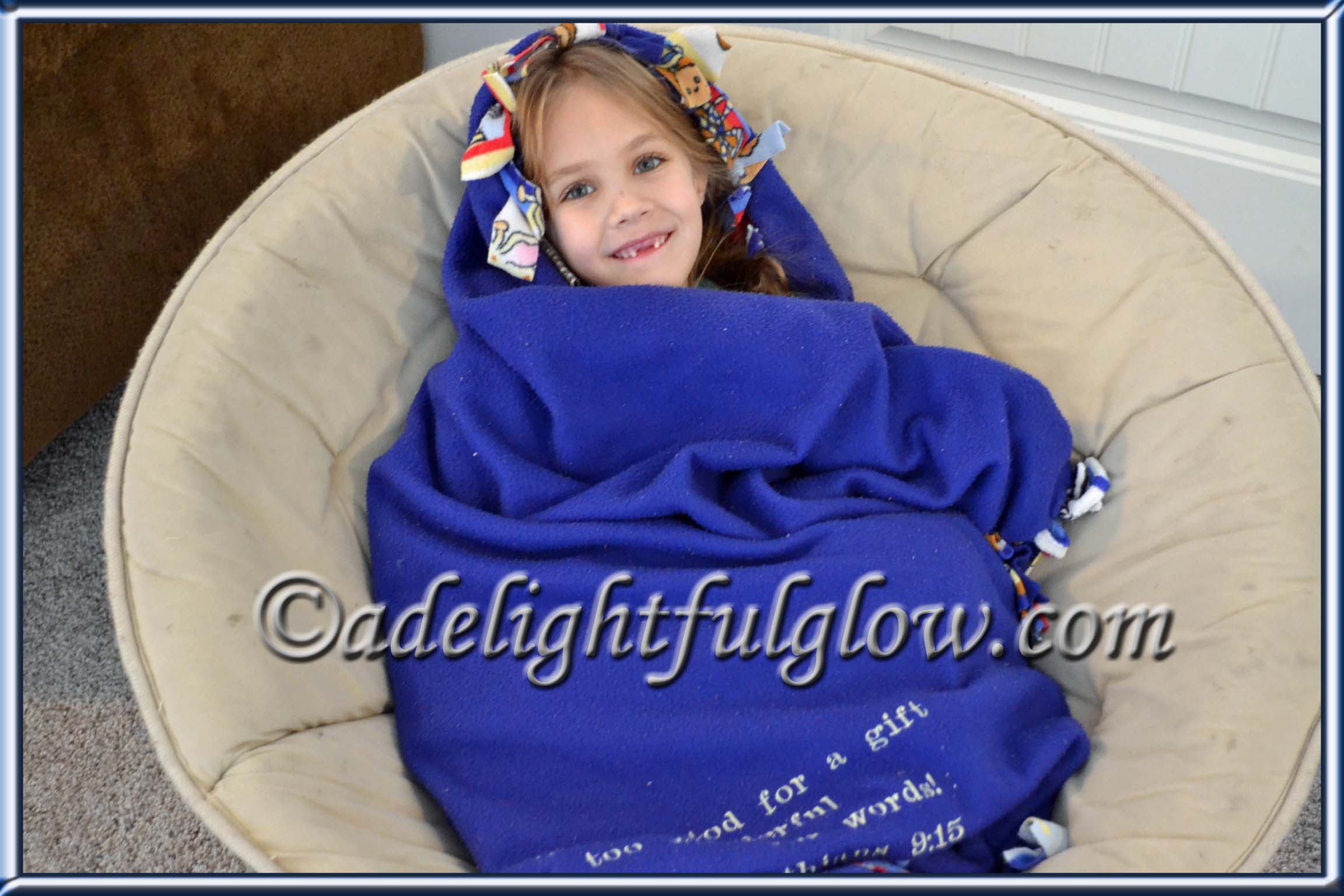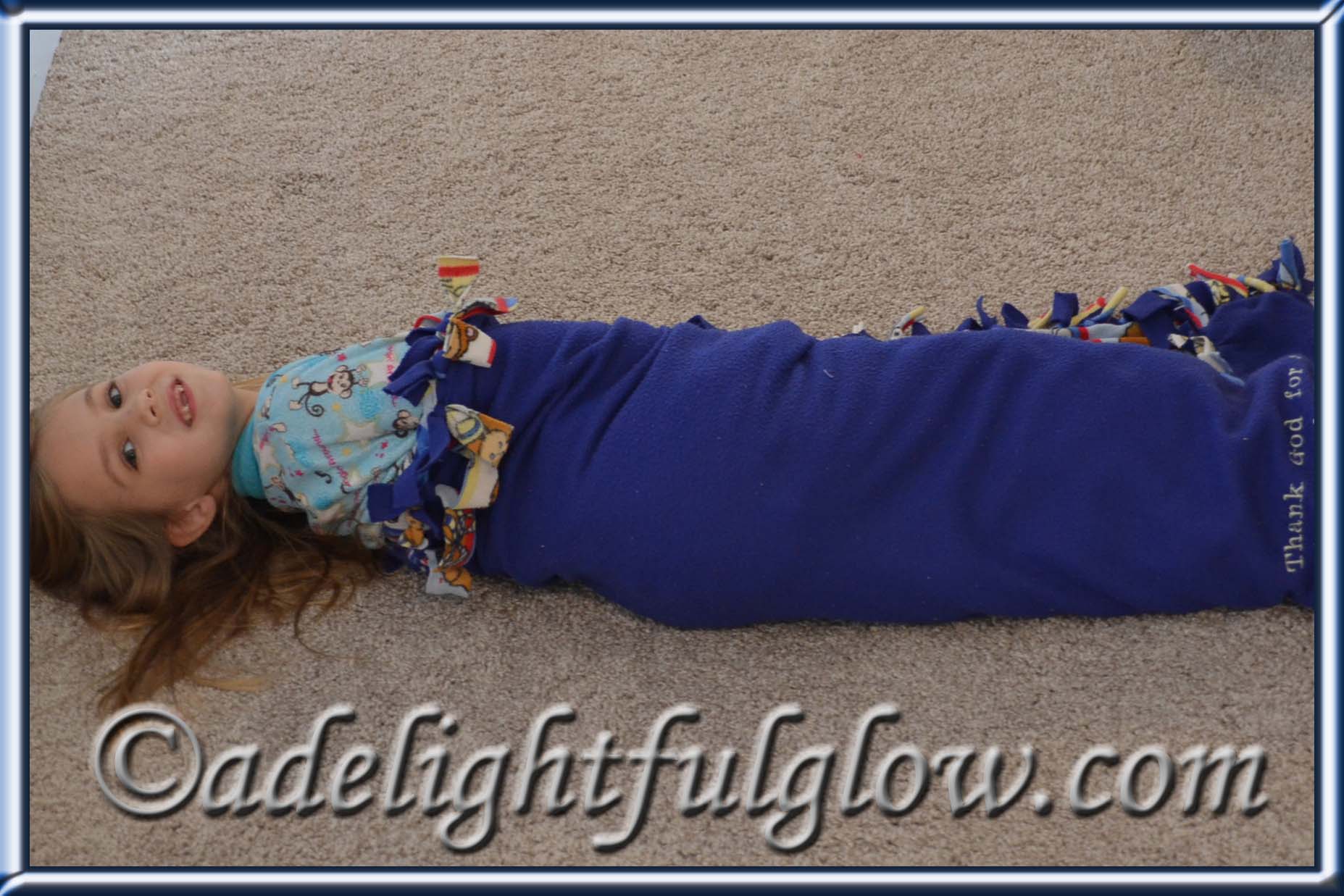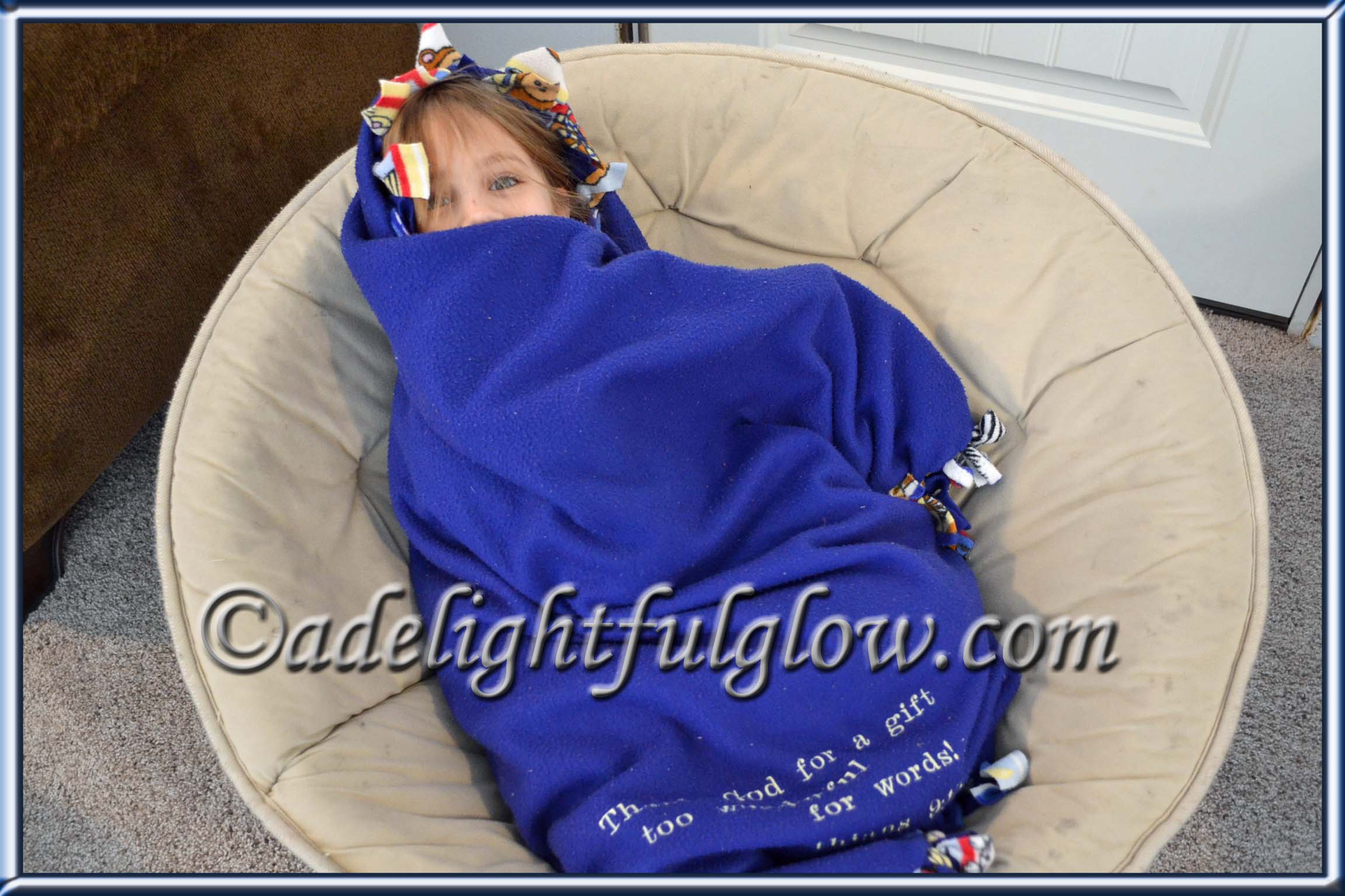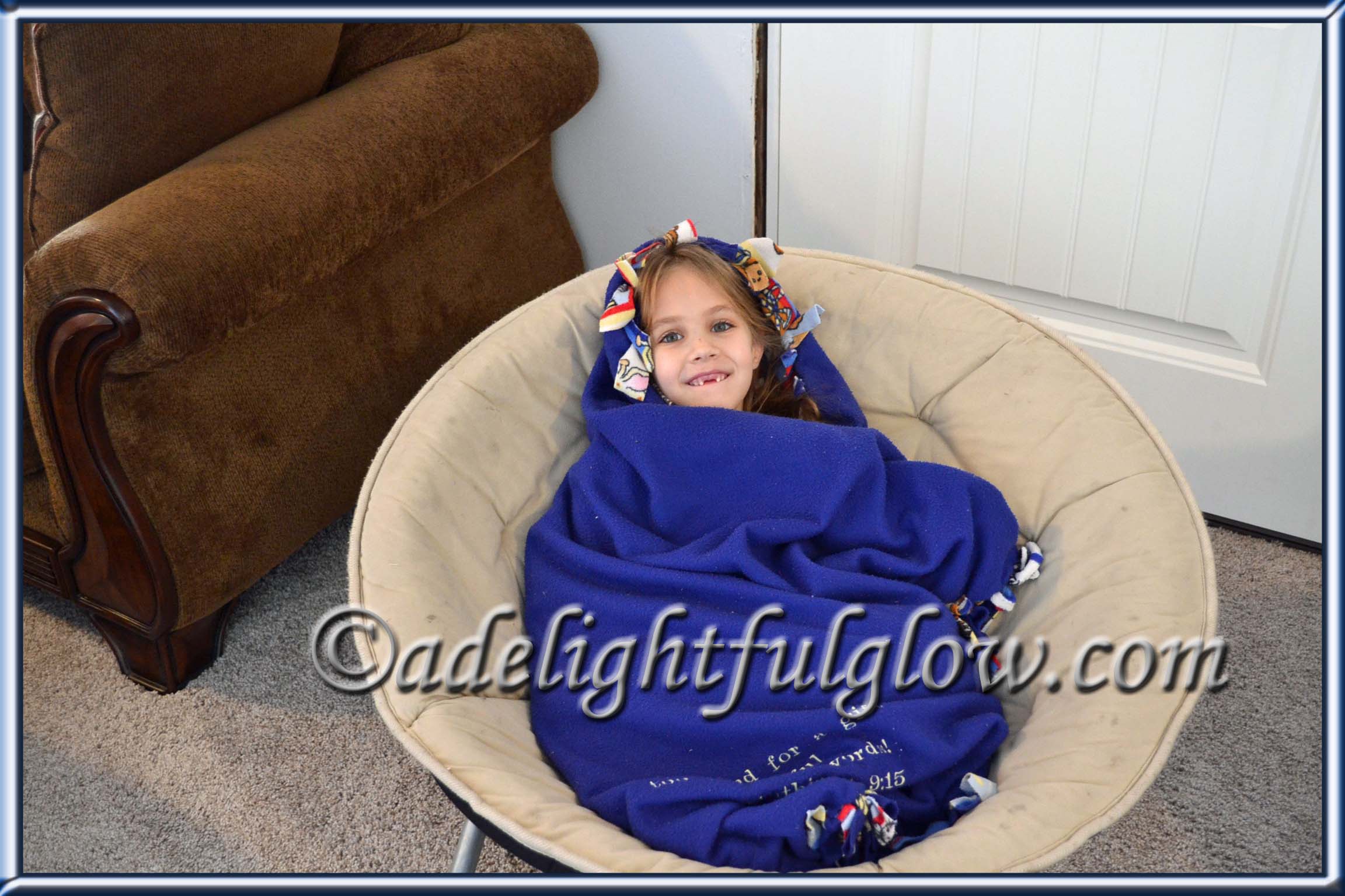 My sweet niece wrapped herself up in her blanket and was happily playing with her new Lego Friends Tree House. She looked so cute. I told her she was a bug in a rug. Later on she laid her blanket out on the floor and rolled herself up in it. She told me, “This is the bug rolling herself up in a rug.” I happily snapped pictures.