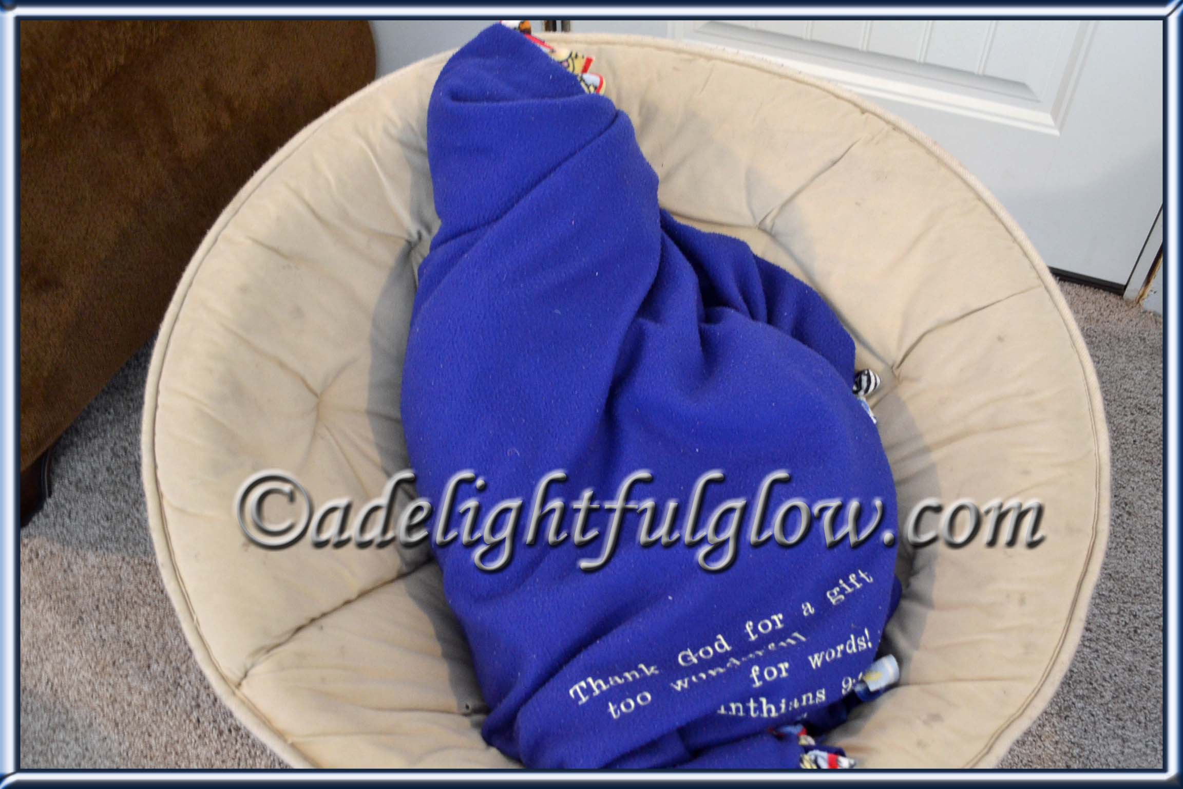 Hello to the bug in a rug all cuddled down in a chair!