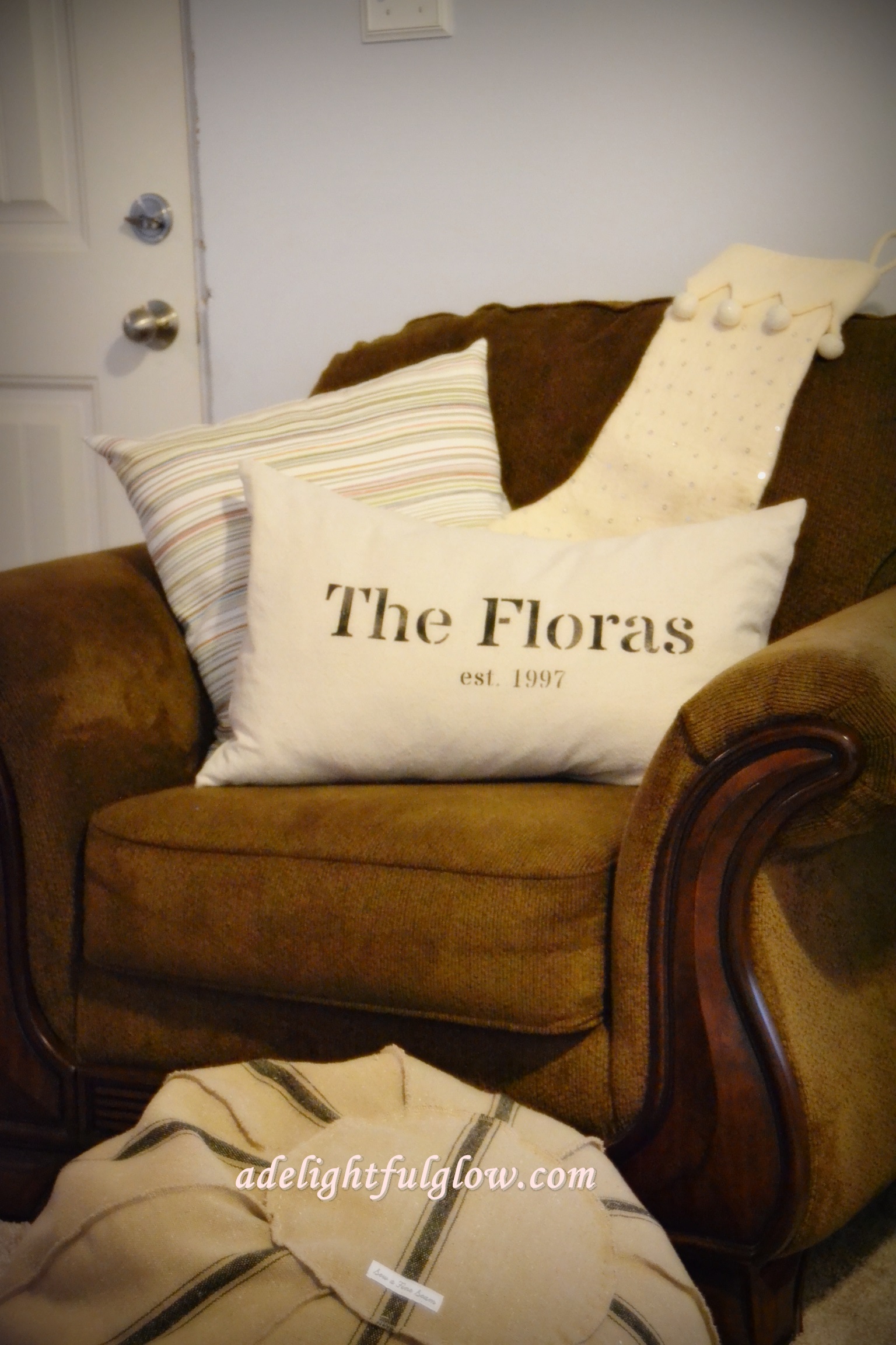 She has some other really fun pillows. Another favorite is the name of your city and state with the latitude and longitude as well.