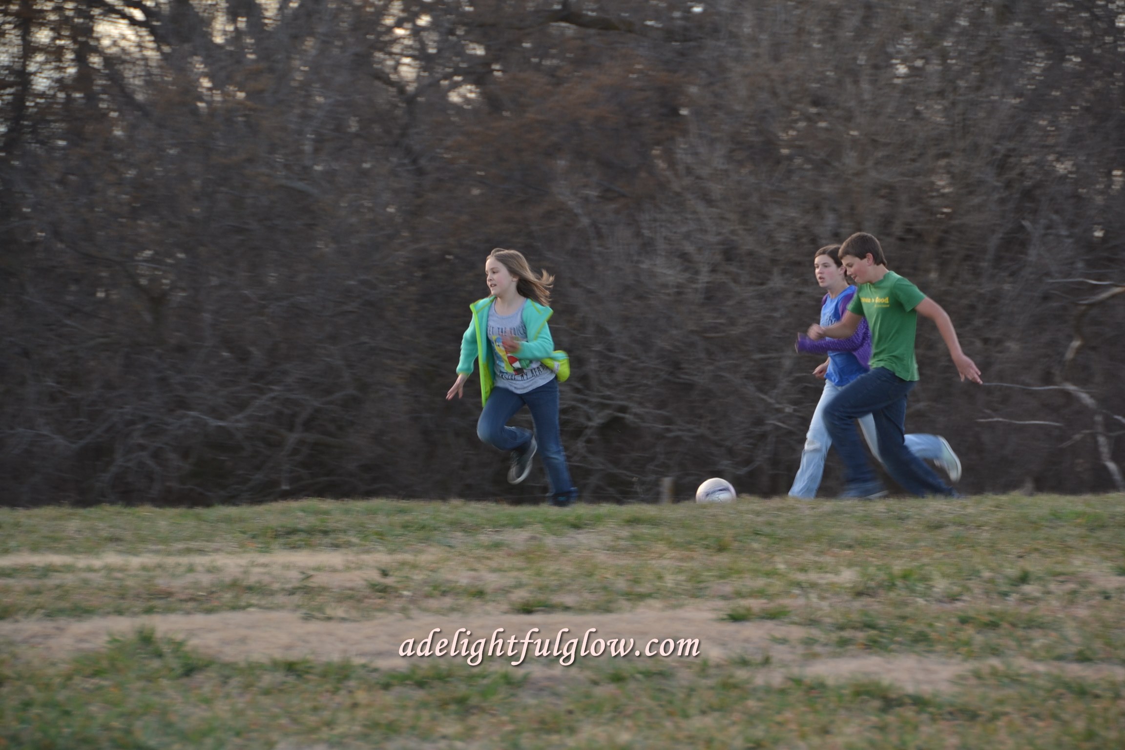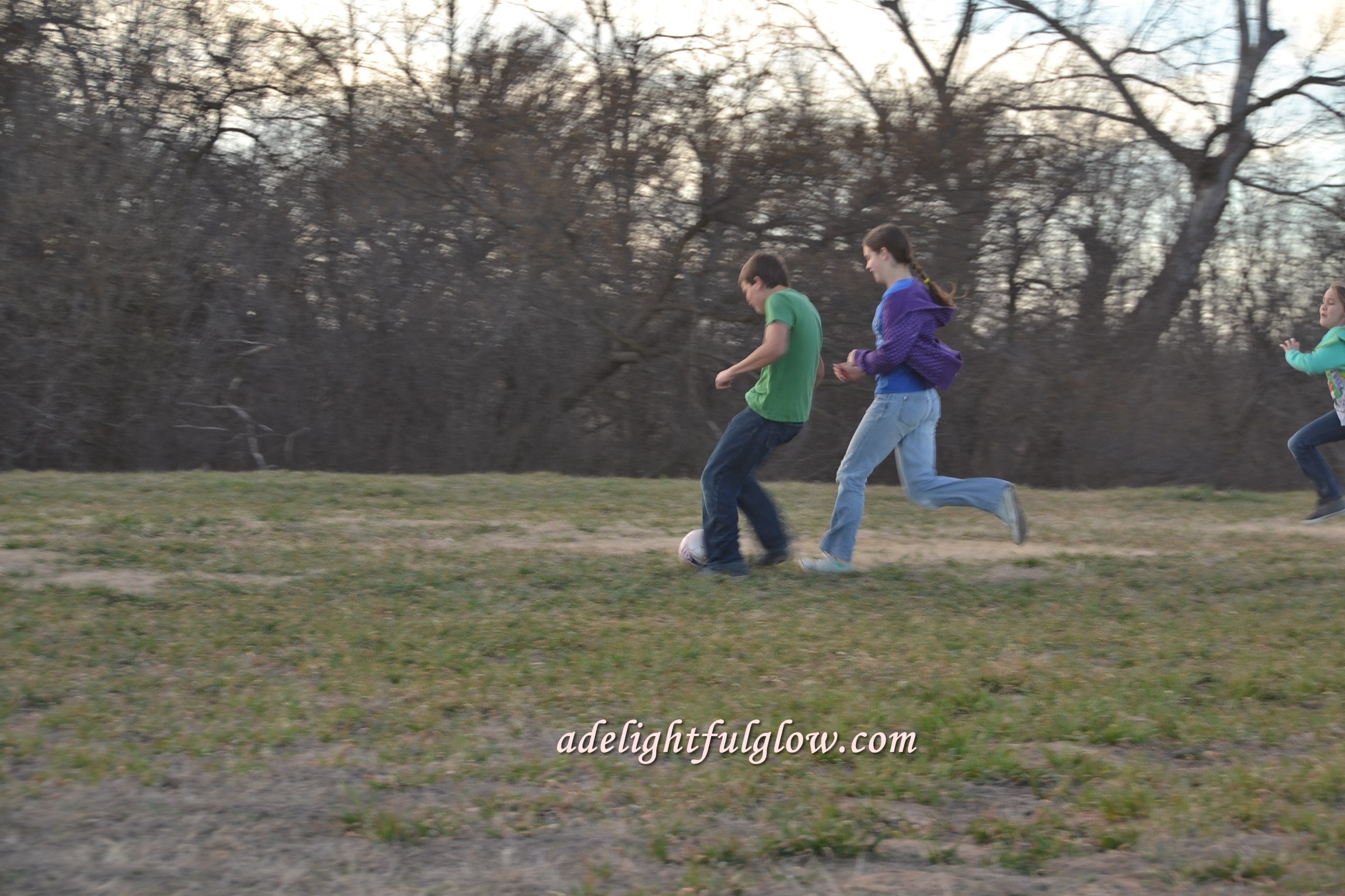 It was an intense game with much running and kicking and blocking and chasing of the ball. We don’t exactly have the best soccer field layout. Some of the terrain was quite uneven and sloped, resulting in the ball rolling away rather often.