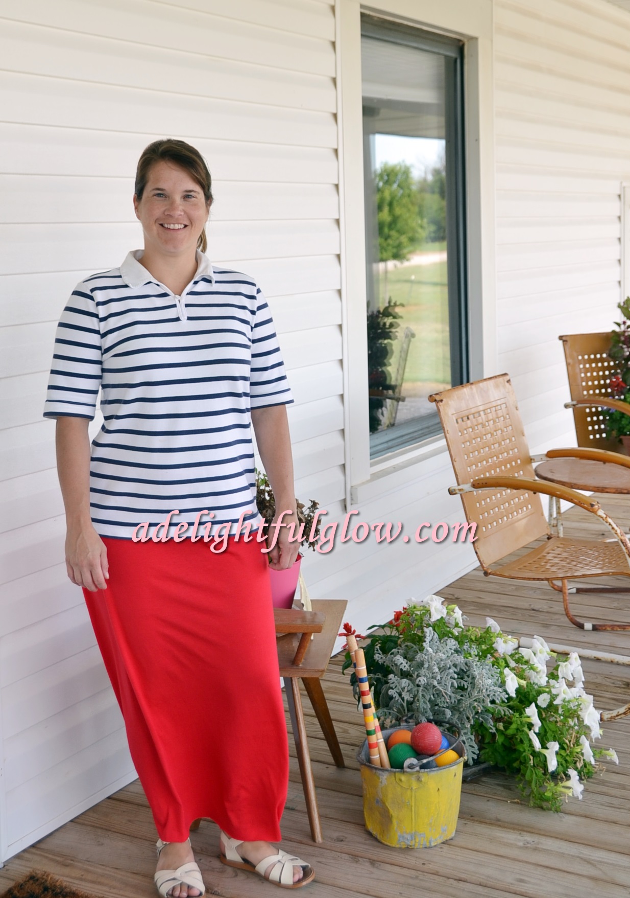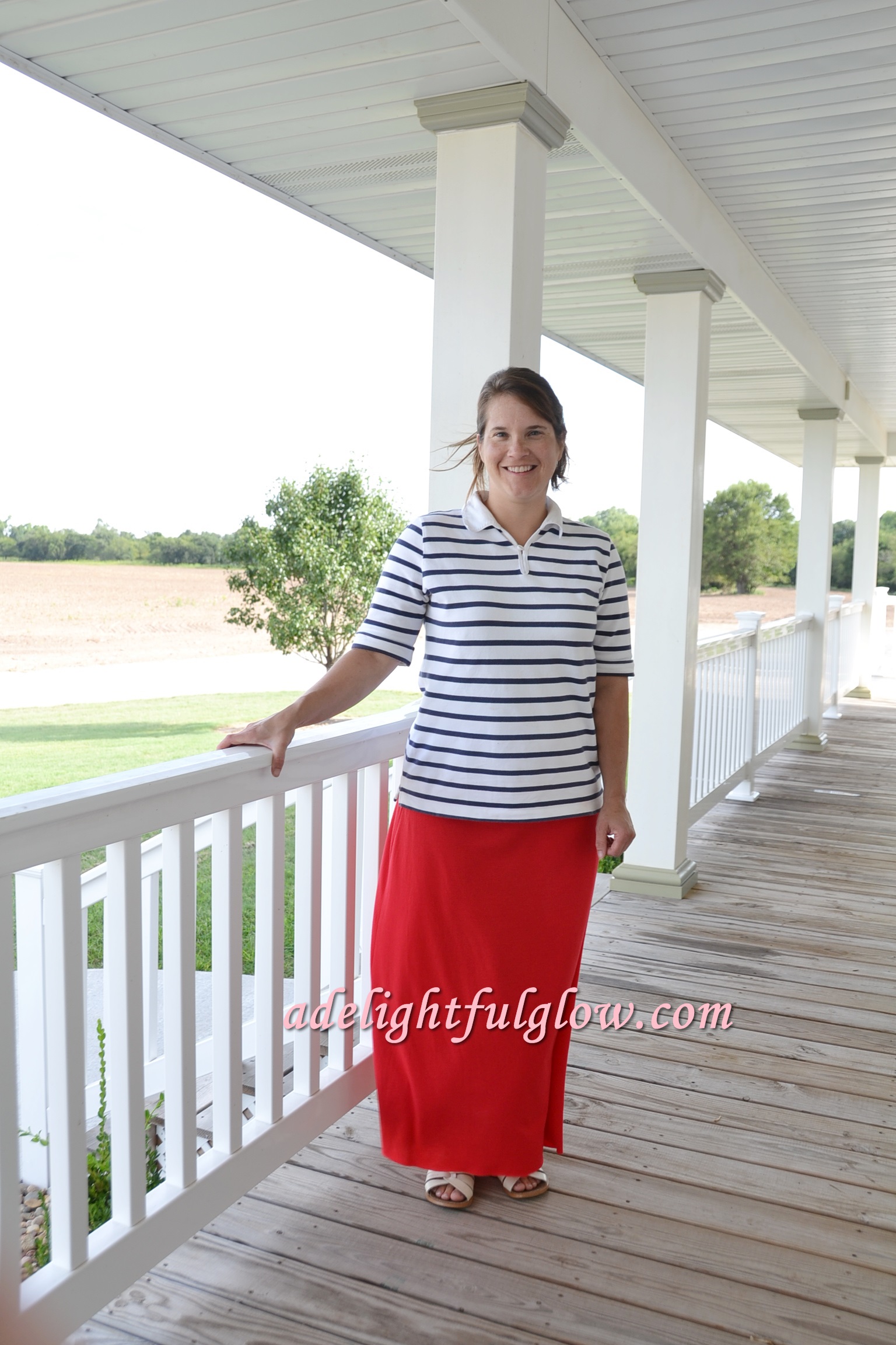 Our Anchors Aweigh flexi was the August 2014 flexi-of-the-month. It was perfect for this striped shirt and red skirt ensemble. {Heehee! I crack myself up, using the word “ensemble” for my outfit.} {There is a part of me that adores elegance and a part of me that just doesn’t quite pull it off and a part of me that has some redneck. Ha!}