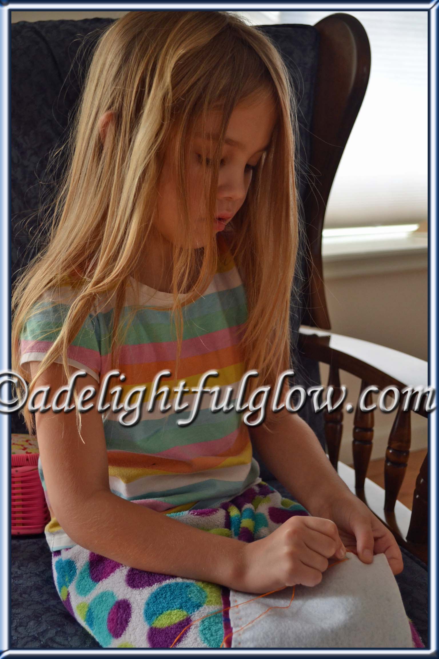 That little seamstress gets up early on Sunday to finish up a project before church. And cries sometimes if she has to let it go till tomorrow because it is bedtime. She is currently working on a puppy. We are all out of stuffing though so she is constantly reminding me that I need to go to Jo-Ann’s and get her some. Now how am I going to fit THAT in my schedule this week? I am feeling beyond pressured with my to-do list!