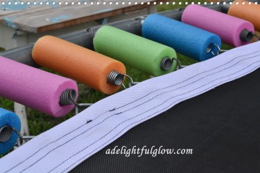 All except the trying-it-out part! Tucker had volunteered for the first-person-on-the-new-mat spot. They are both glad to have the trampoline working again and have already logged quite a few hours on it. It was fun to try the pool noodle project and it gives it a nice pop of color!