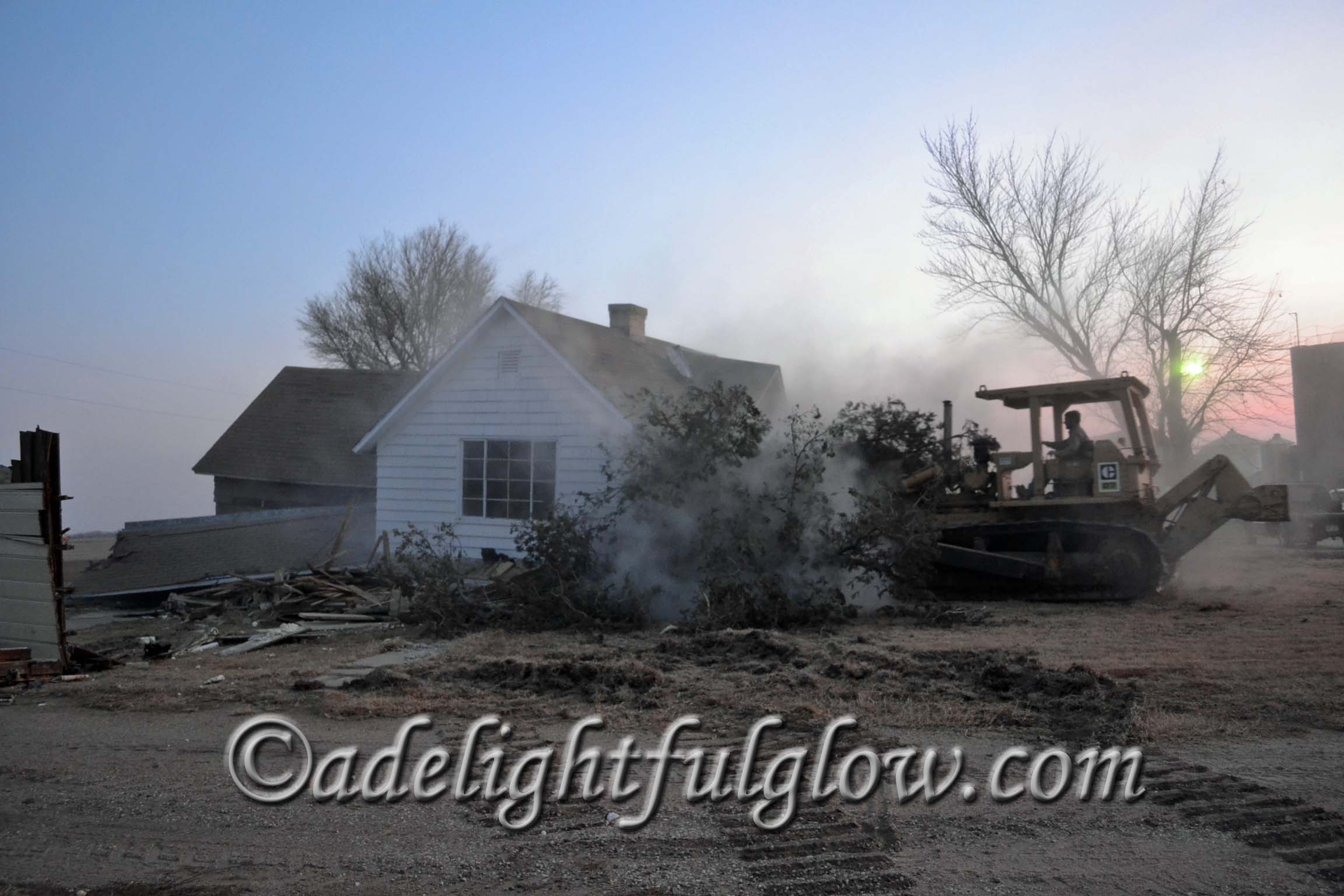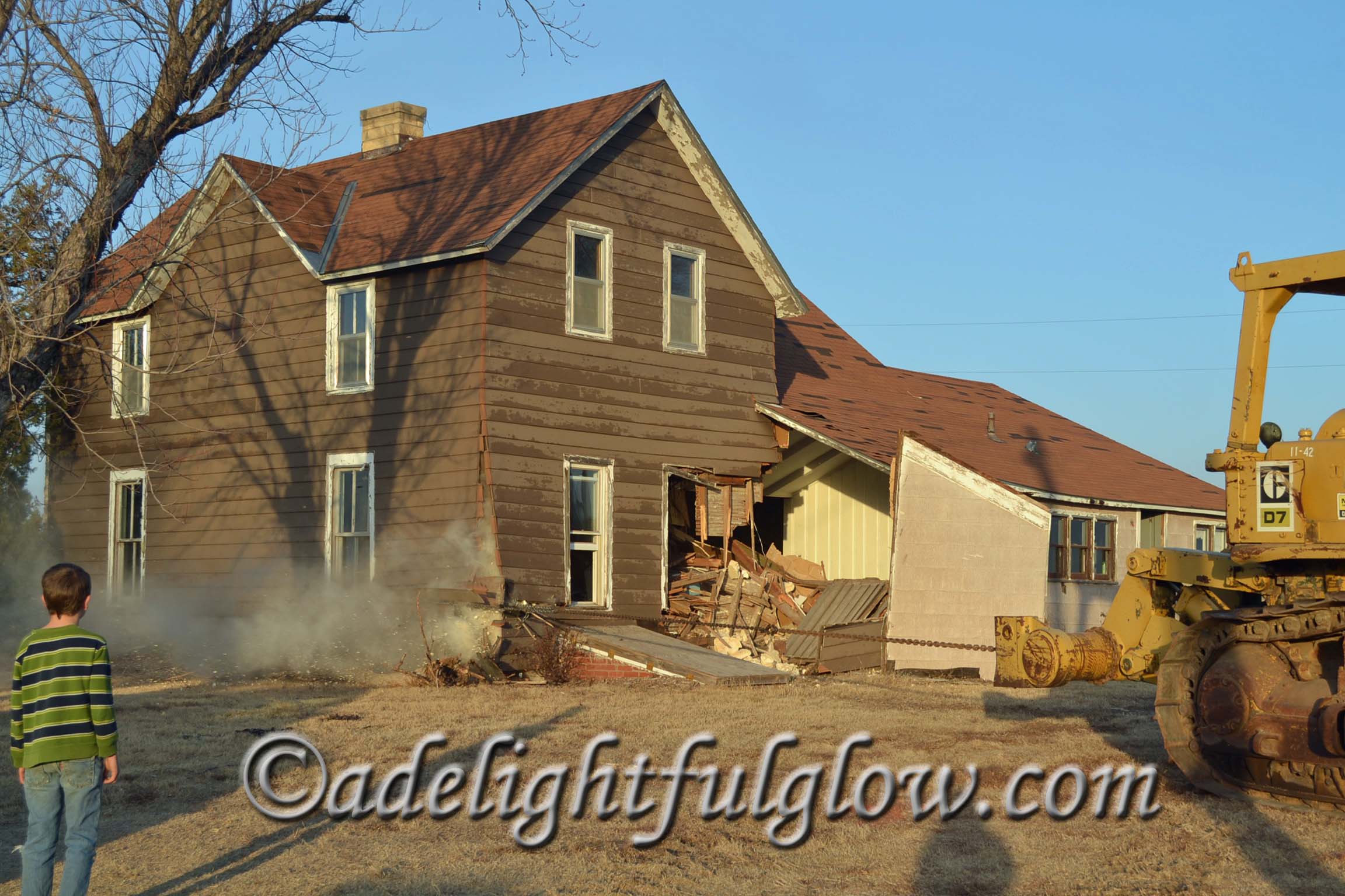 It was interesting to watch and I do think most menfolk enjoy a project like tearing down an old structure now and then. My brother came over and he shot some videos for us. My father-in-law was around, since we were using his bulldozer, and a couple of neighbors stopped by. Living in a rural area adds to it too. Most of us notice what the neighbors are doing or what changes are happening when we’re out and about. I think my man enjoyed operating the bulldozer. He’d love to own one, but our small farming operation really doesn’t need one. Plus, we might as well use his dad’s. 😉