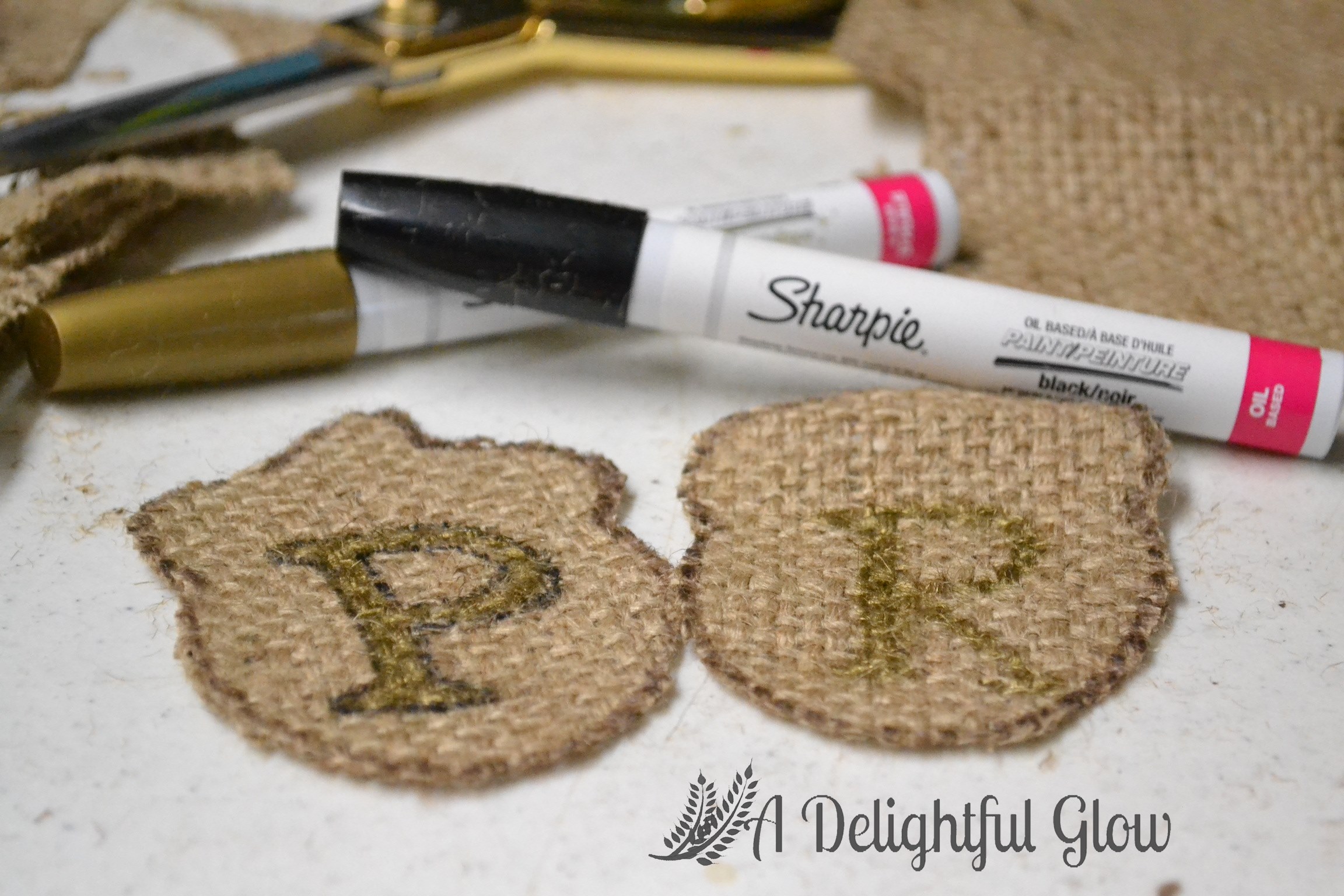 I wrote my letter with a gold paint pen and then outlined it with a black one. The outlining made the letters stand at attention.