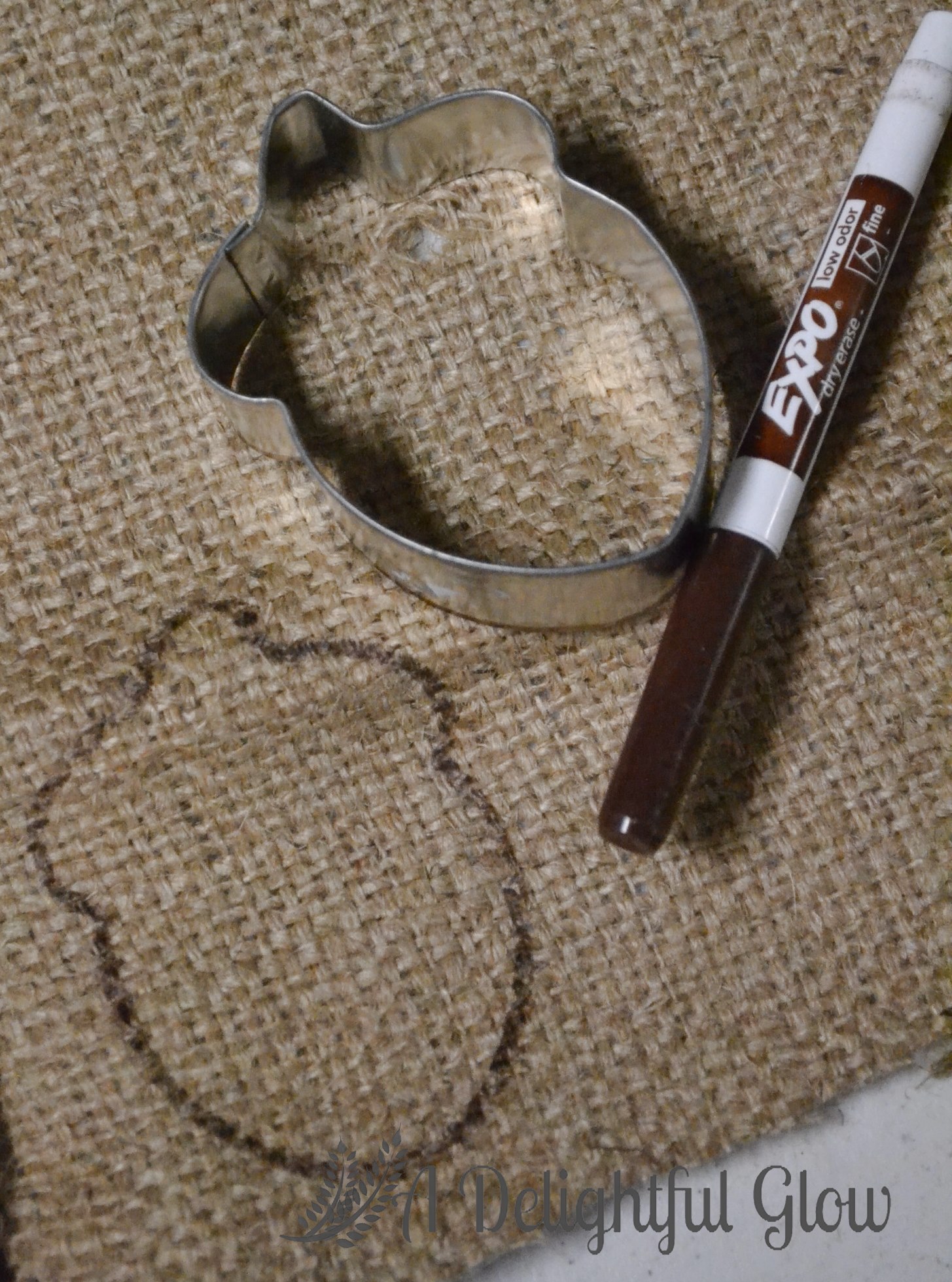 But, then I thought about my acorn cookie cutter and how burlap looks like autumn and maybe an acorn banner????!