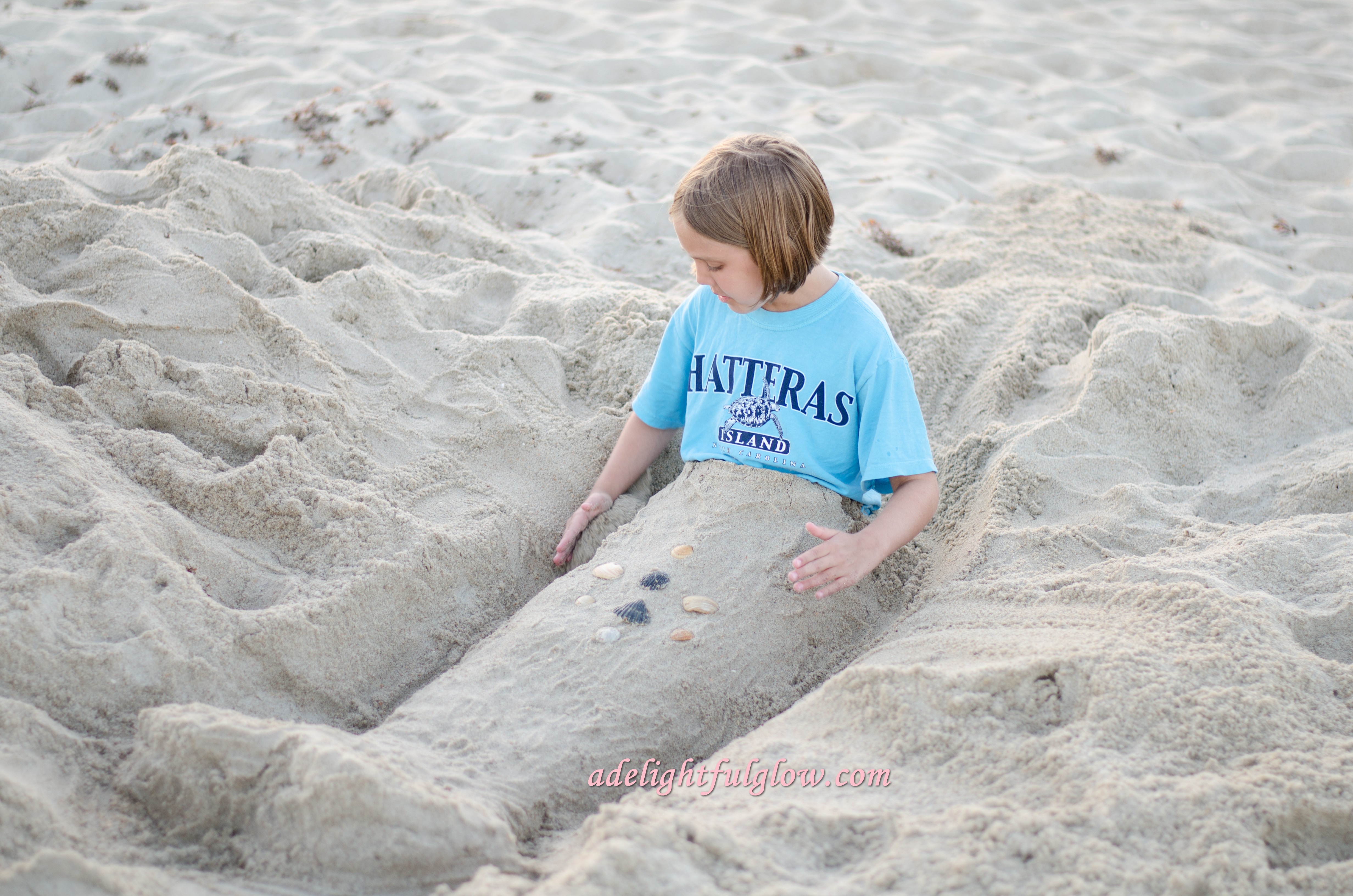 My niece would make such a good advertisement for Hatteras with her Hatteras t-shirt and mermaid tail. The pictures certainly say, “Come to Hatteras! Come to the beach! Come and play!”
