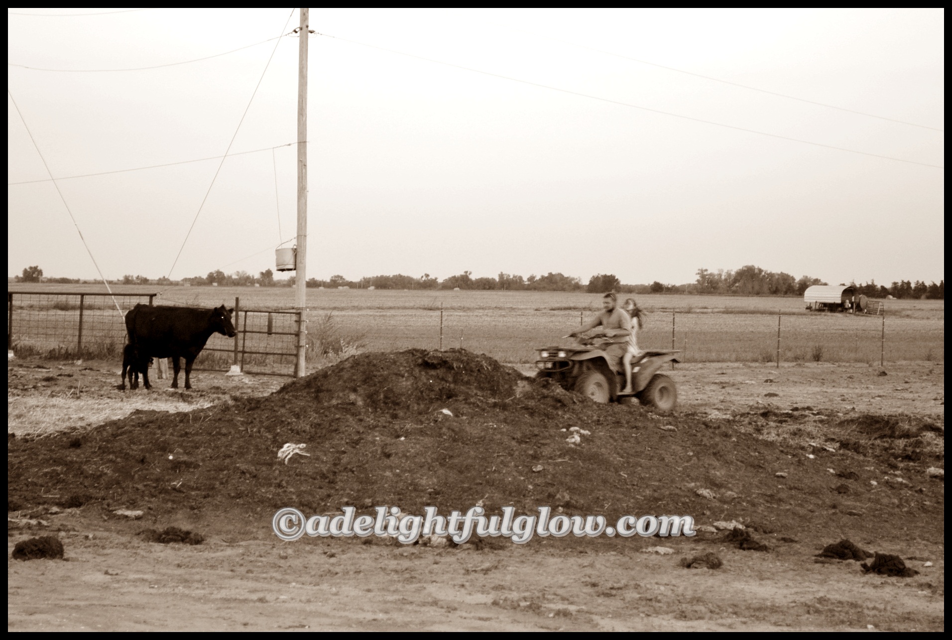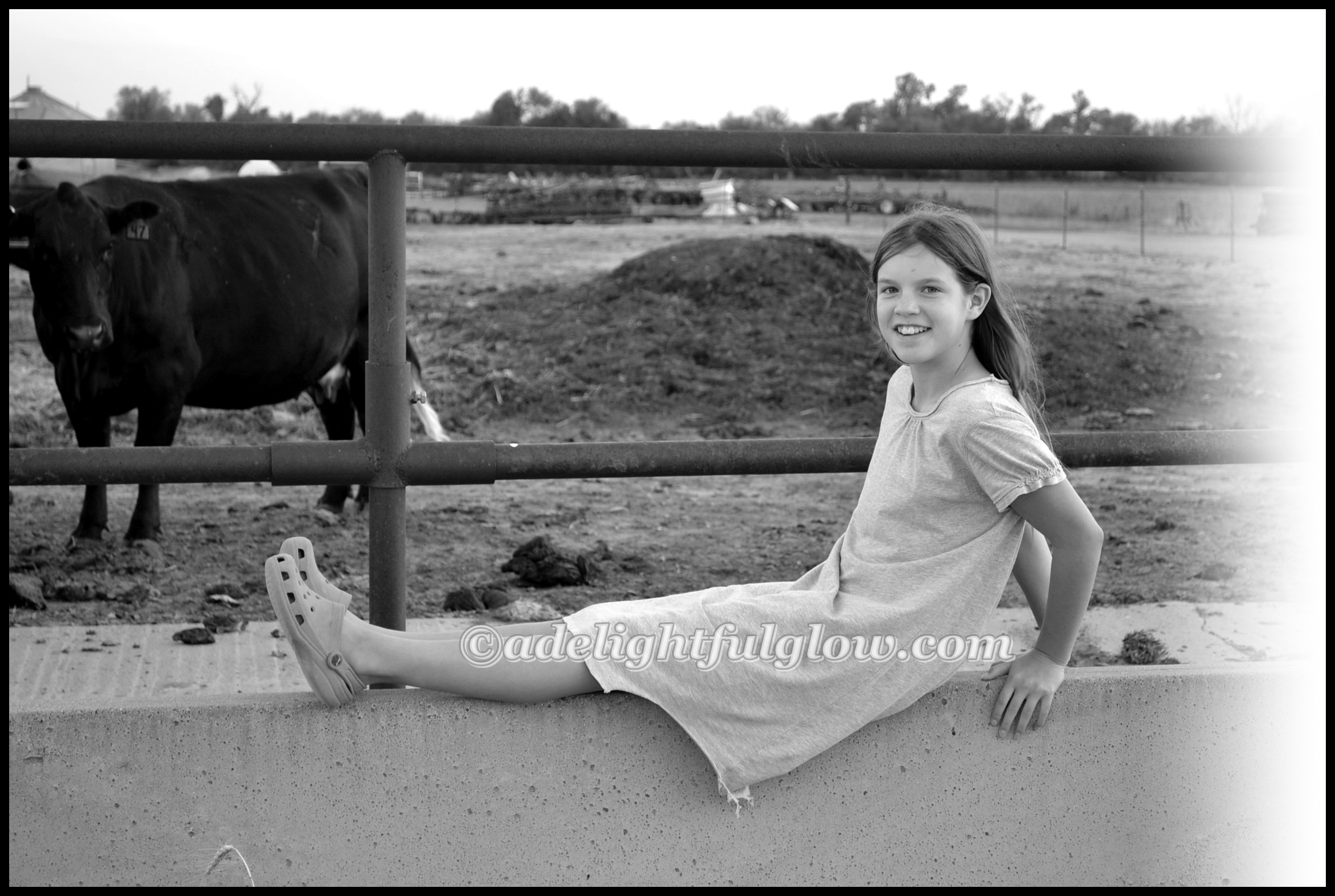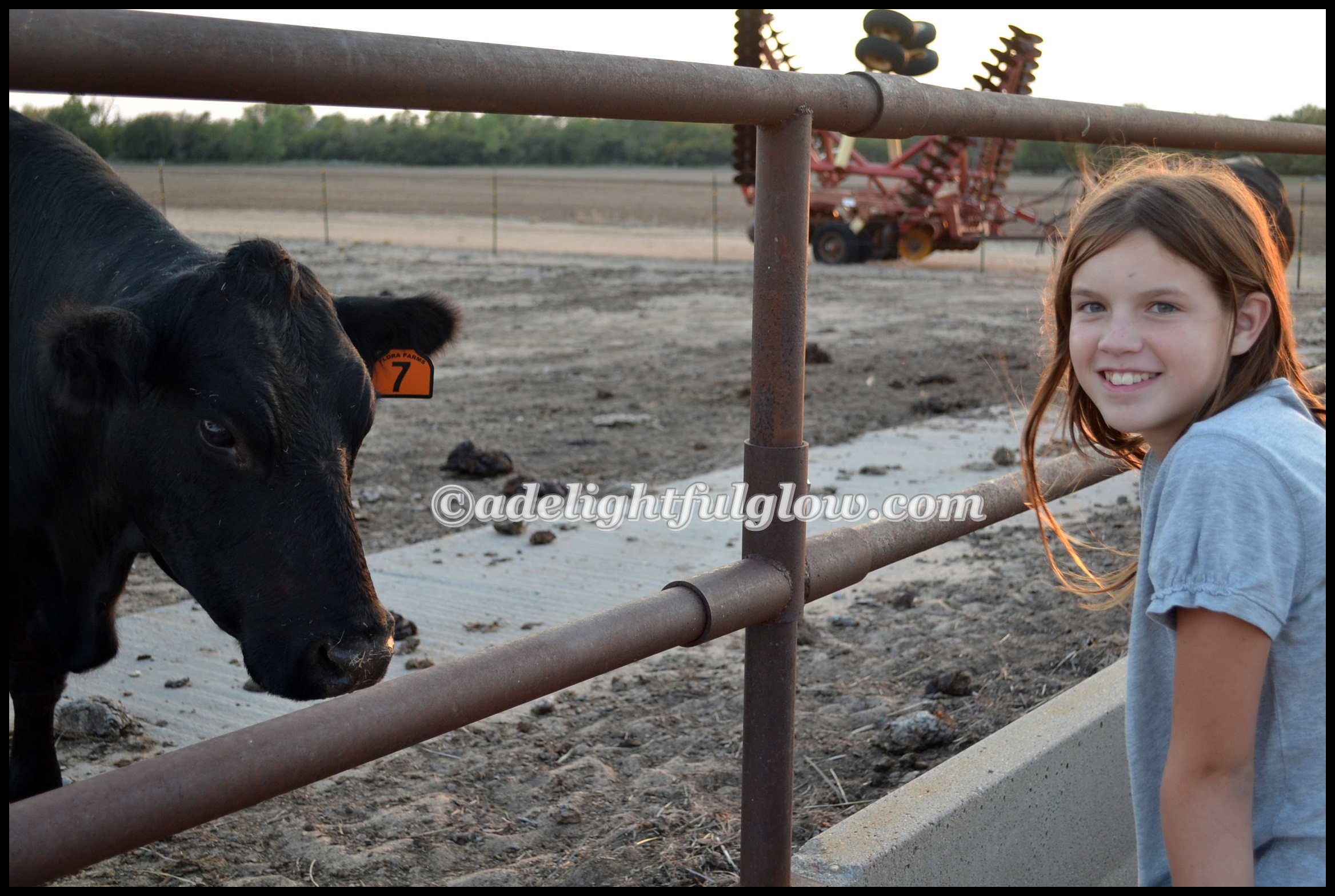 Hello cows! Hello to my husband hauling me and our girl over to the farm one evening, so I could take pictures of the new baby calf that arrived at the beginning of the week. (Photos that didn’t turn out all that well-the ones of the calf himself. He wasn’t in a very good spot for me to get very close to him and the lighting was not grand.) And I really wasn’t into traipsing around inside the cow pen. My man did give me a ride into the pen on the four-wheeler, so I could get a little closer. I had fun taking photos of my daughter, though!