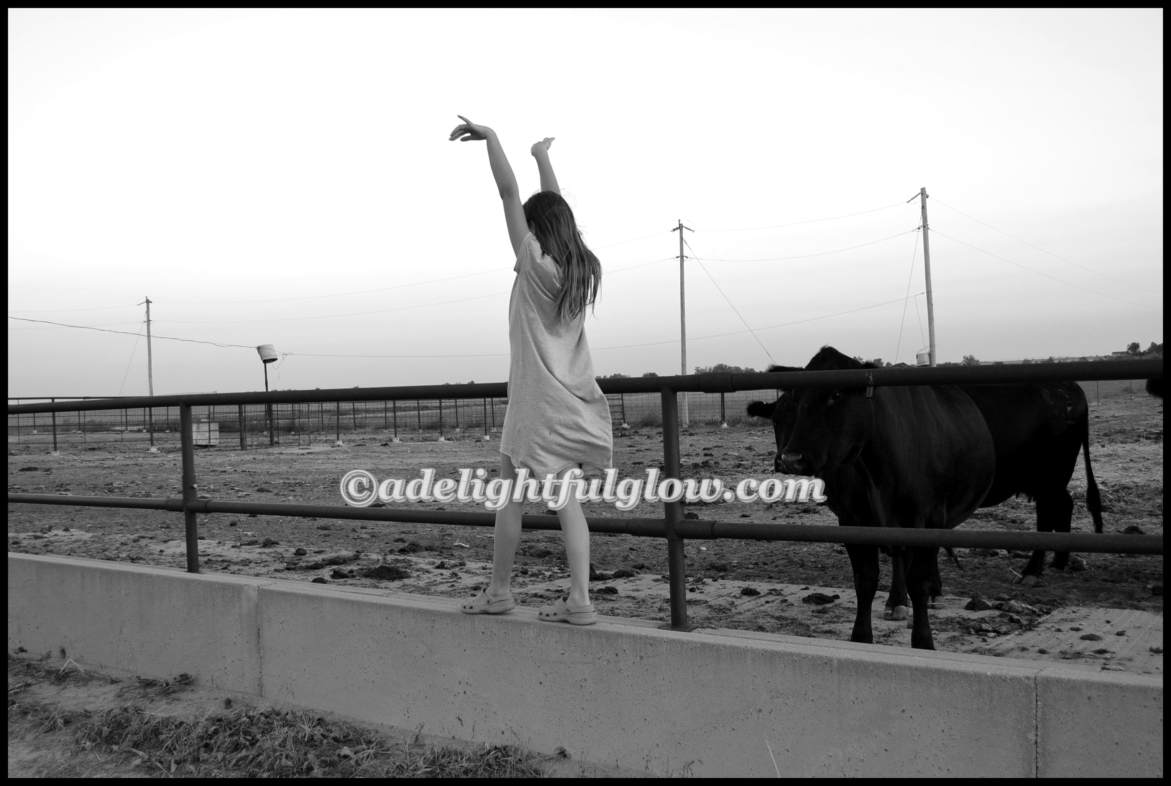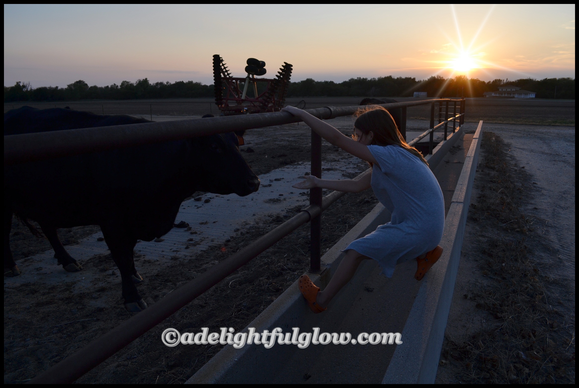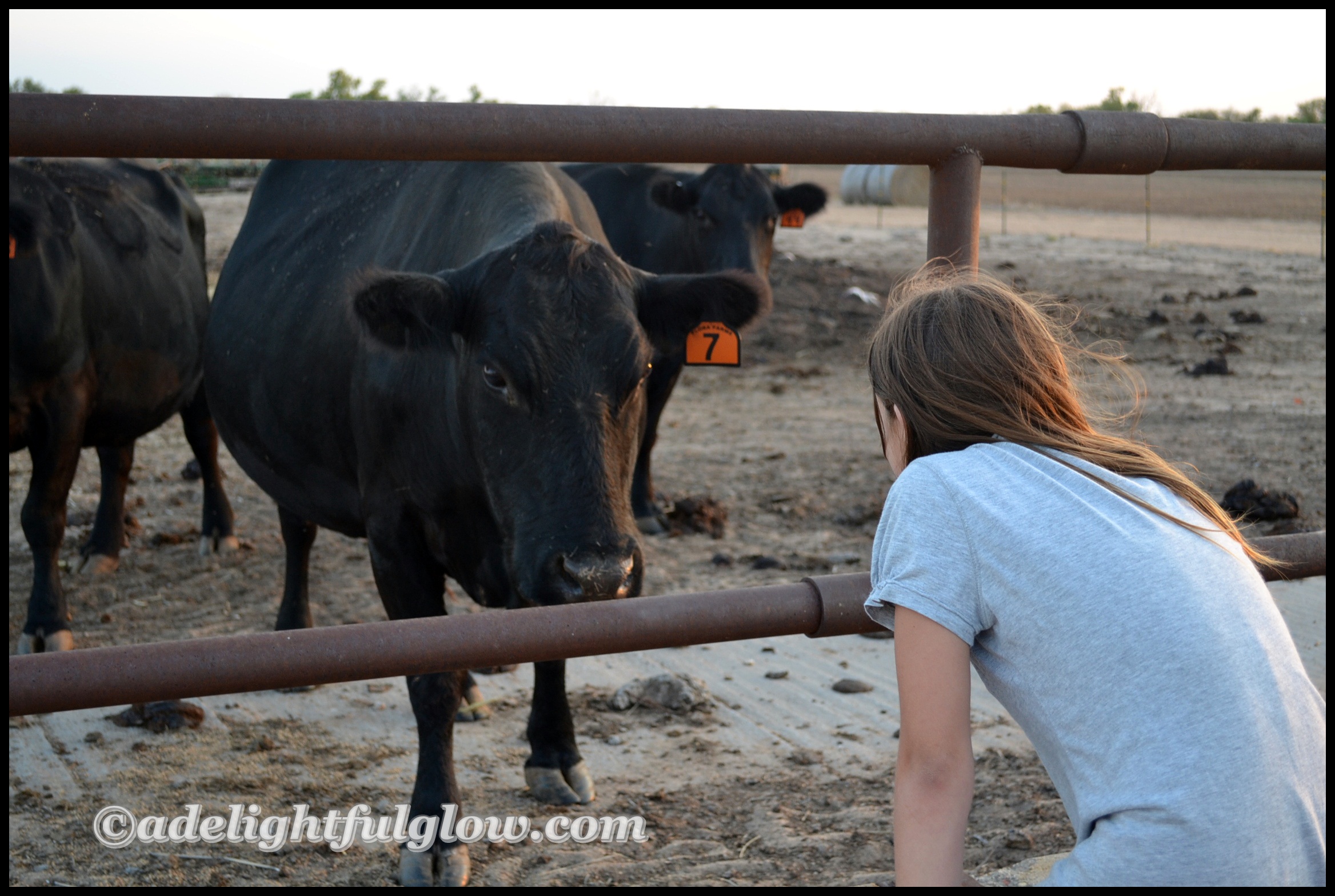 Hello cows! Hello to my husband hauling me and our girl over to the farm one evening, so I could take pictures of the new baby calf that arrived at the beginning of the week. (Photos that didn’t turn out all that well-the ones of the calf himself. He wasn’t in a very good spot for me to get very close to him and the lighting was not grand.) And I really wasn’t into traipsing around inside the cow pen. My man did give me a ride into the pen on the four-wheeler, so I could get a little closer. I had fun taking photos of my daughter, though!