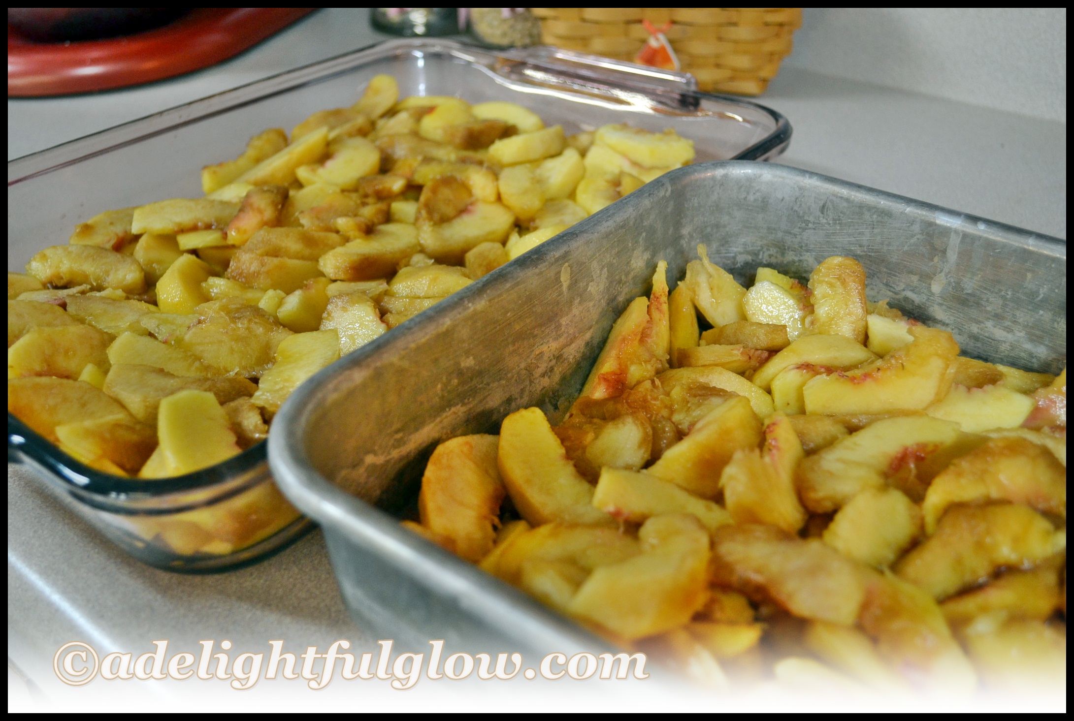 We’ve been making apple recipes, since we had lots of apples from our neighbors. Makes sense doesn’t it? Well, I also had some peaches that needed used. They were rather of a disappointment as peaches go. The flavor was good, but a LOT of them had a bad texture. That texture that my mother-in-law refers to as pithy. Pithy peaches are very sad. Spongy and a disgrace to all peaches.