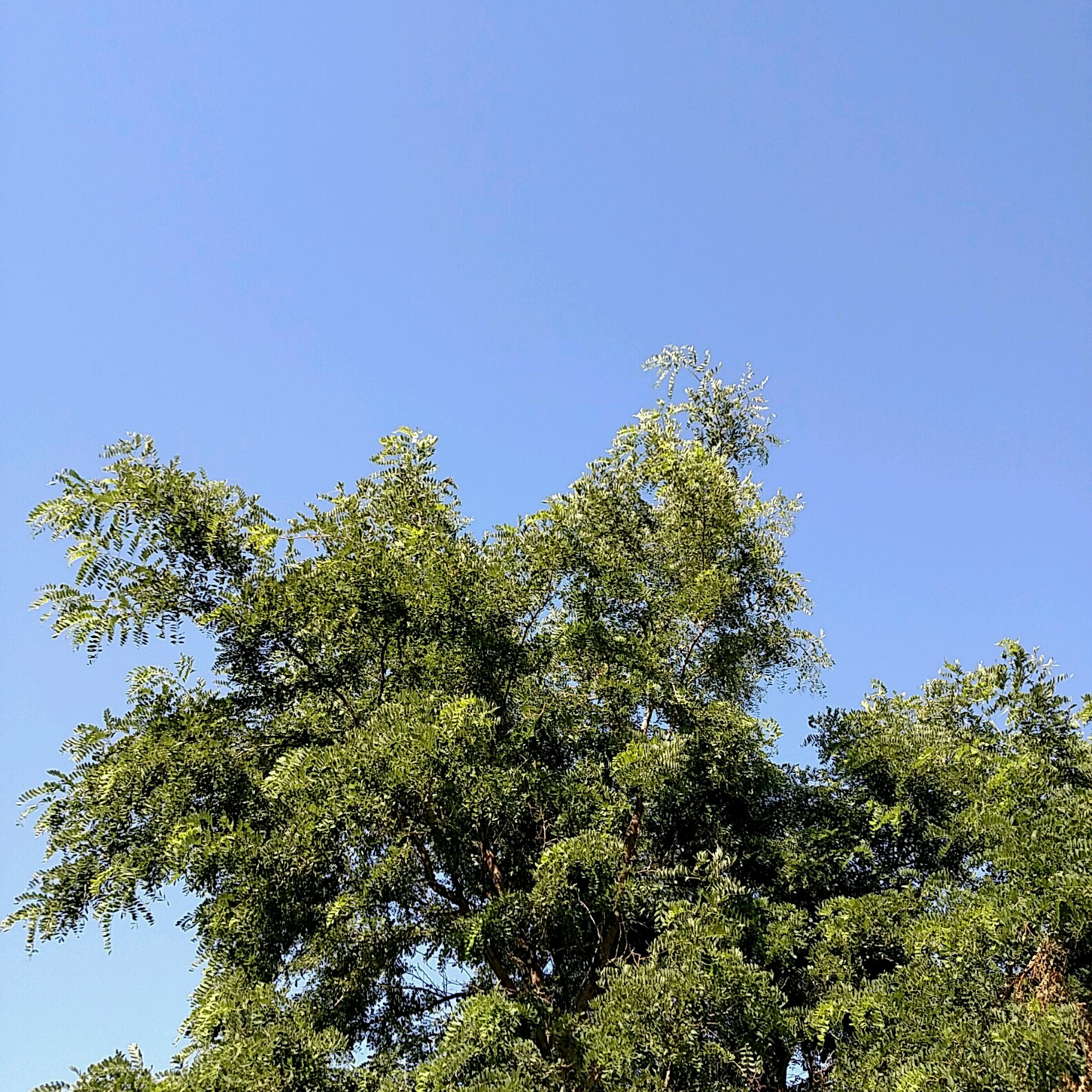 The humidity hangs around, heavy, but the brilliant blue can’t be beat and the leaves of this tree stand out in glorious detail against it.