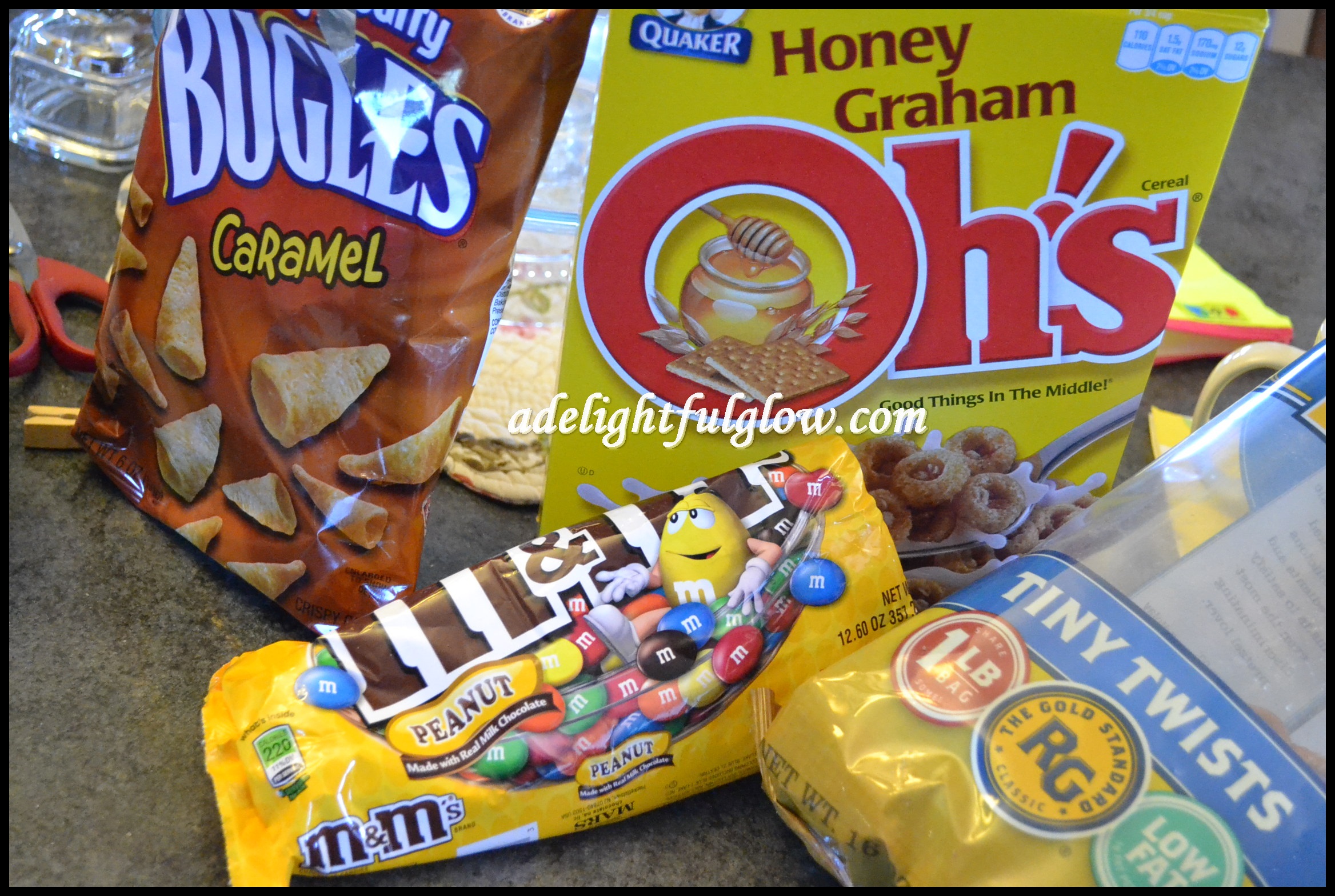 My mother-in-law has made a mix called trash. 🙂 I think it is just basically a mix of whatever snacks you want to get, though and then you mix it in a trash bag.