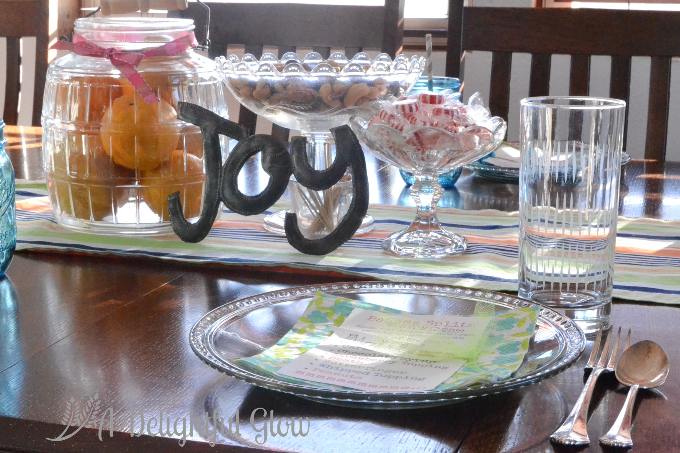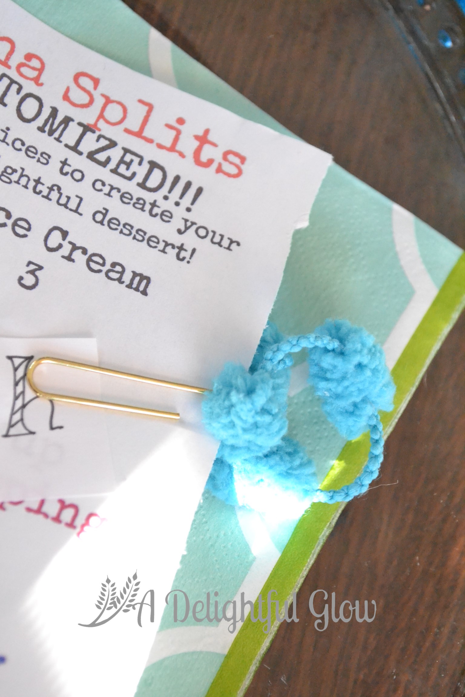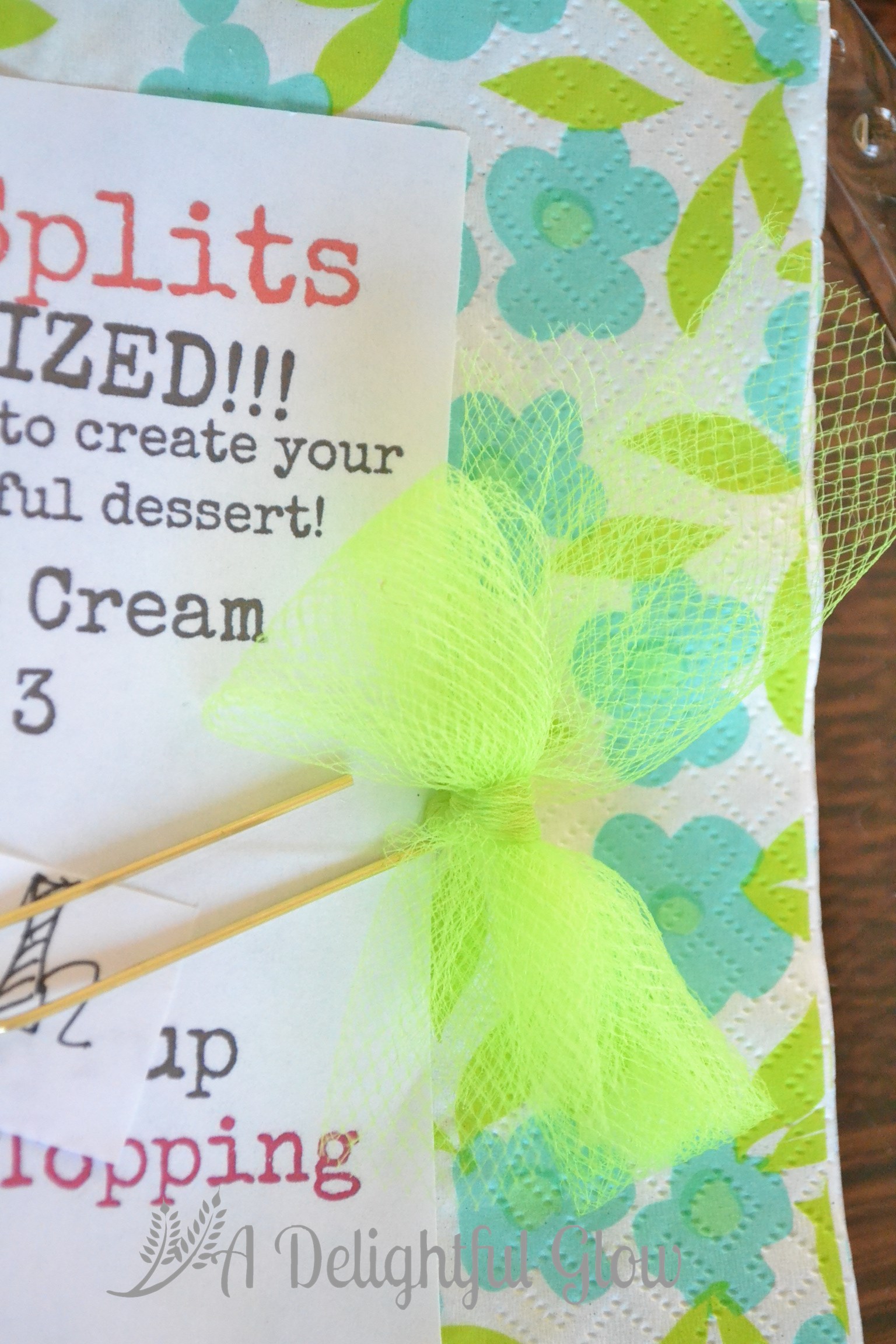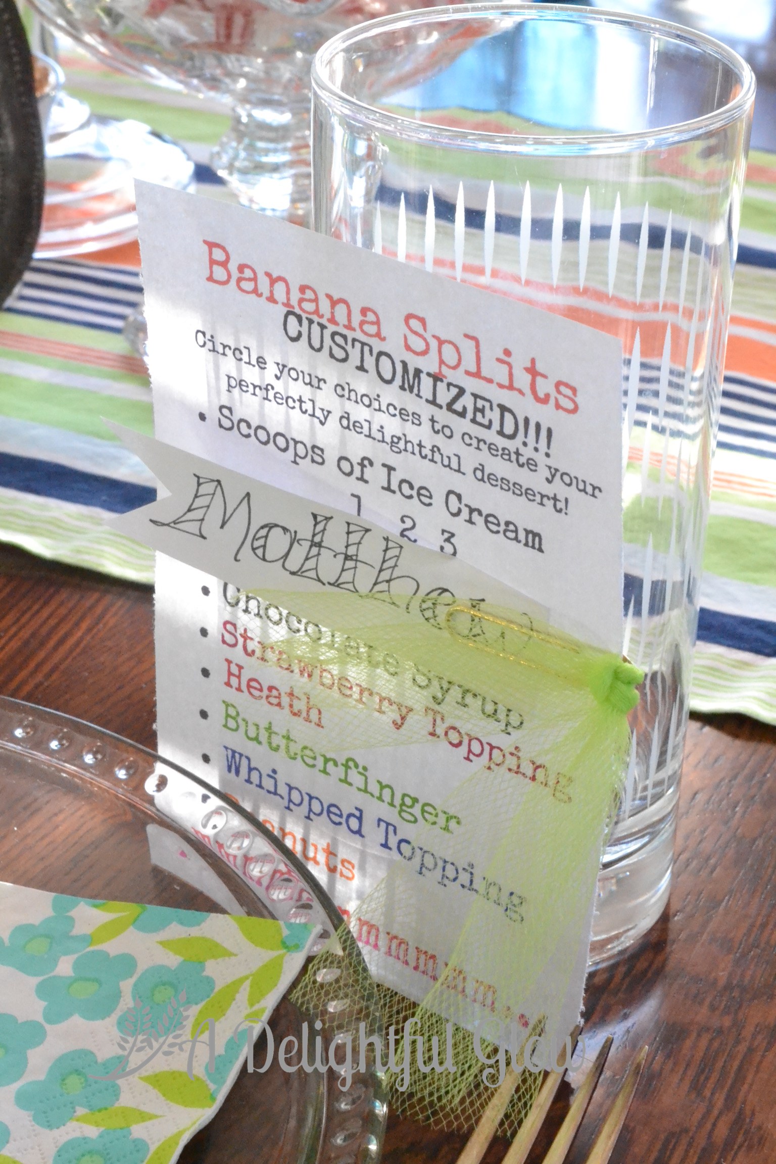 To print out your own Banana Split menus go over here! The only catch is you’ll have to want to use the same topping options as we used or get creative in changing it after it’s printed, cause they are what they are!! 🙂 And we totally stray from the original pineapple/strawberry/chocolate options.