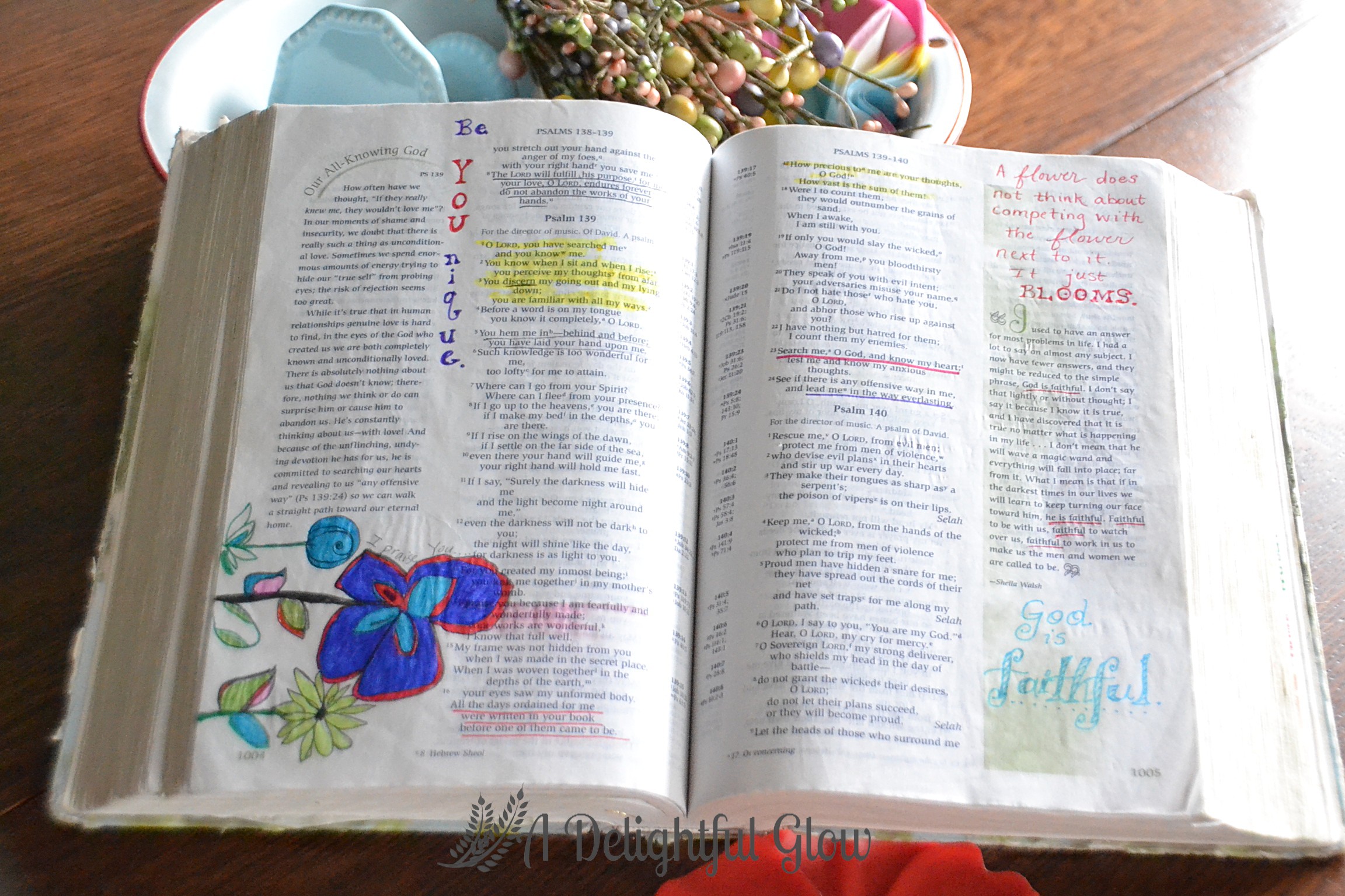 I certainly don’t do the beautiful artwork that a lot of Bible journalers do. I’ve seen some beautiful watercolor and paintings.