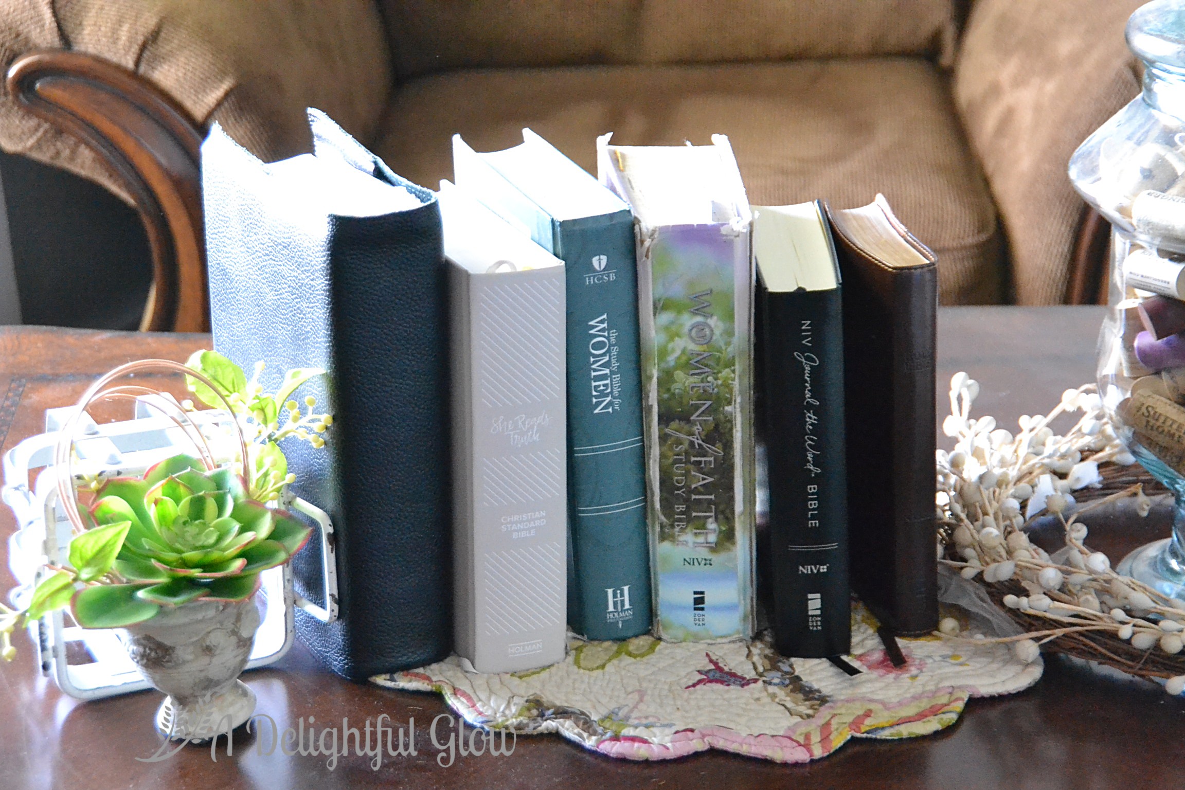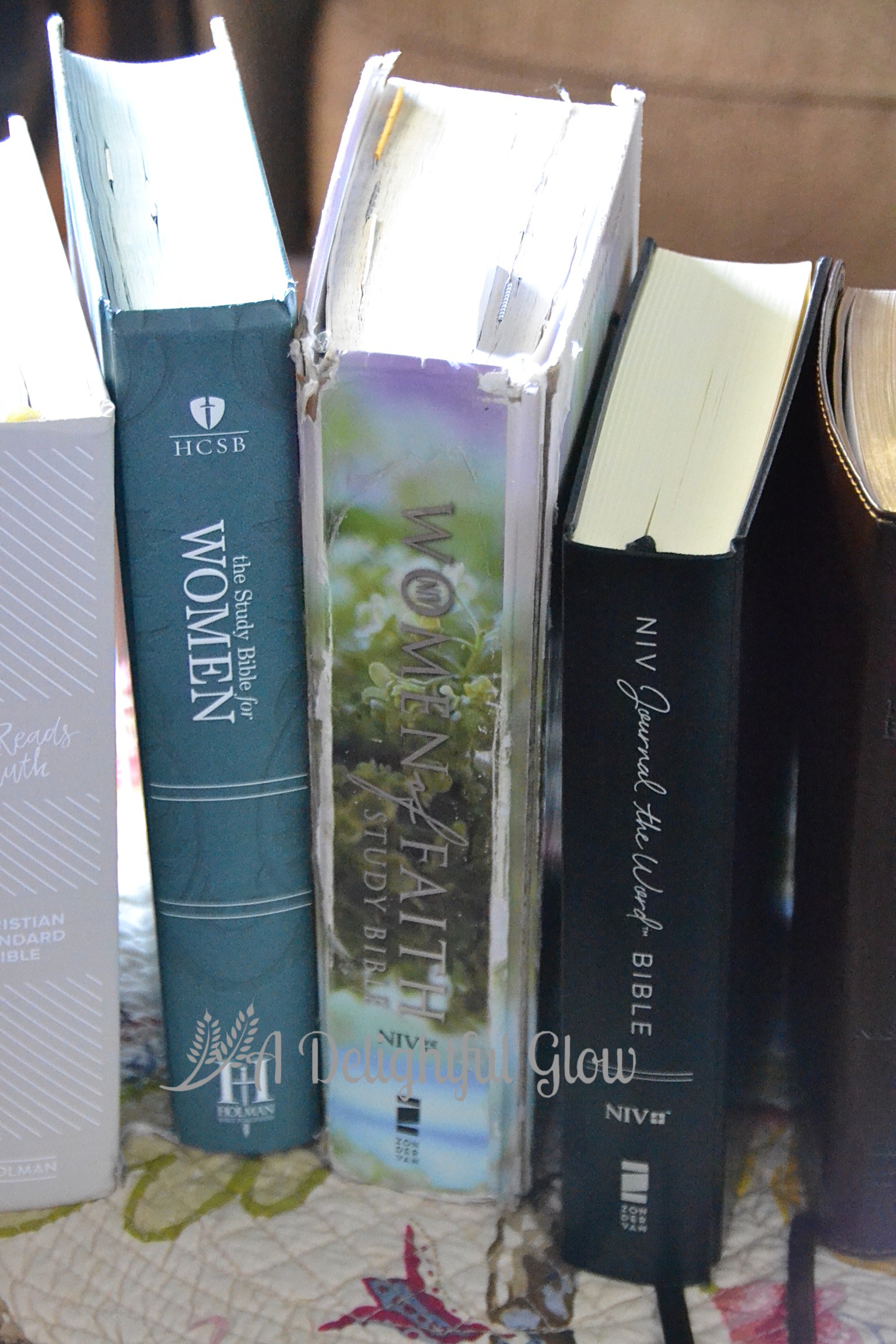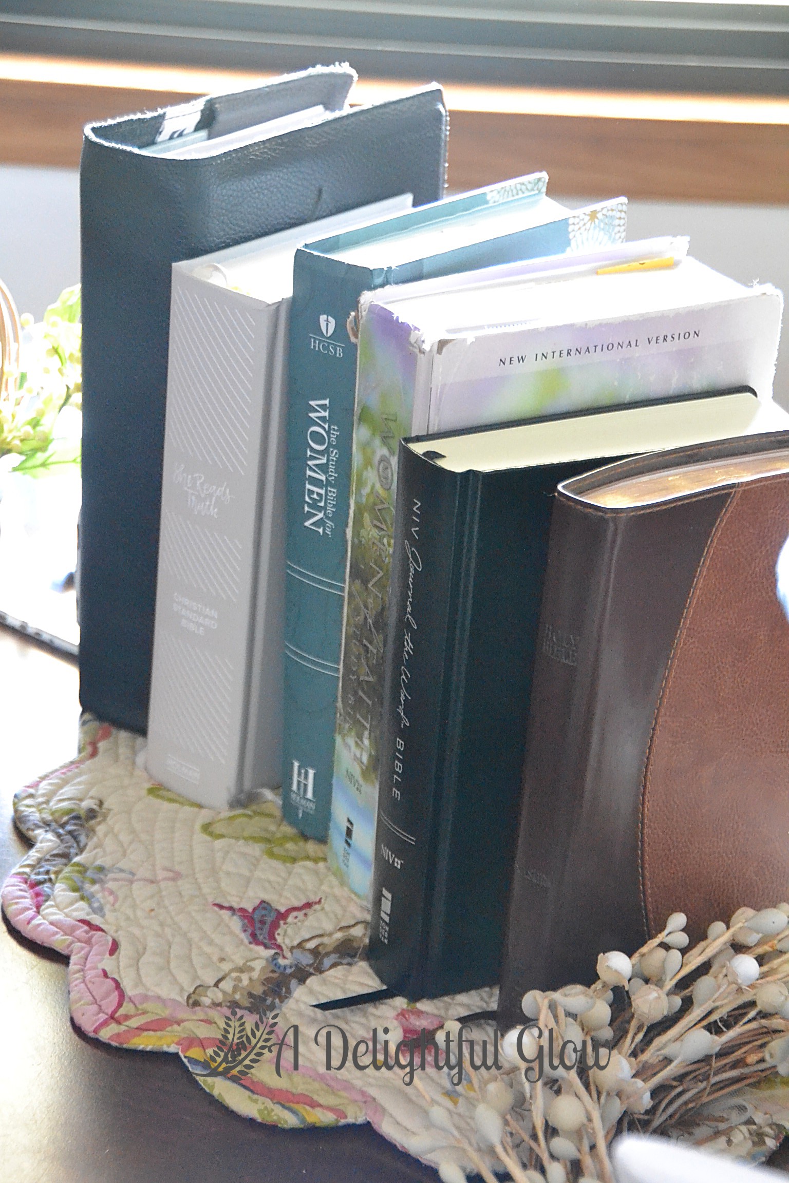 I realized I have a small collection of Bibles as I was thinking about putting this post together. I gathered them up for a couple of photos.