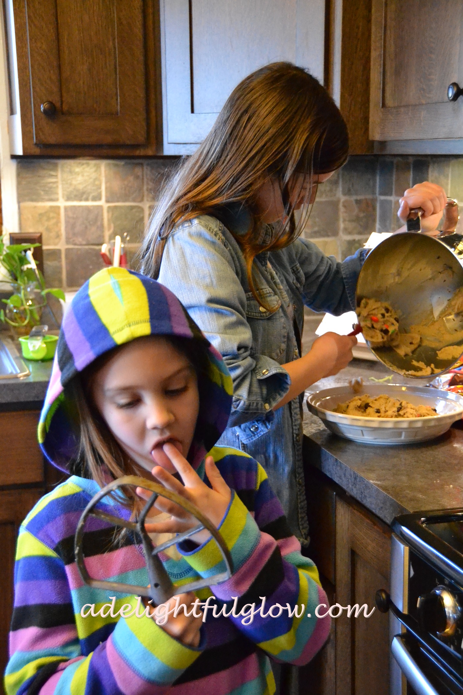 This year, we made a cookie pie for Renae’s birthday. It was terribly yummy! I was going to stir it up and then she decided she wanted too, and so she did!