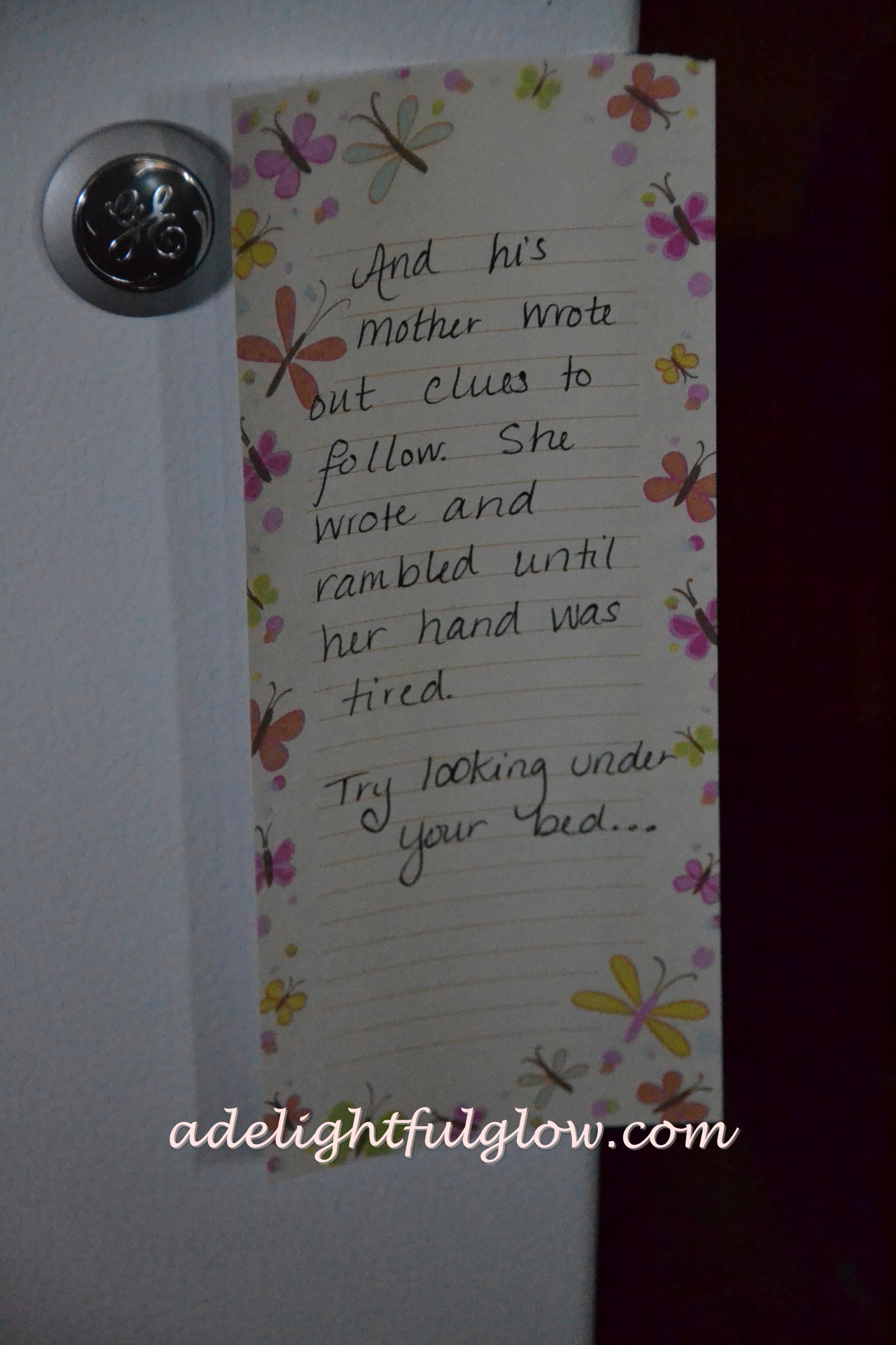 Grandma had a Lego set for him and I knew he’d know it was a Lego set just by looking at the wrapped package. So, we put together a scavenger/treasure hunt with clues to follow. At the end of the trail of twelve clues, he found his gift and tore it open! Legos!! Equates happy!