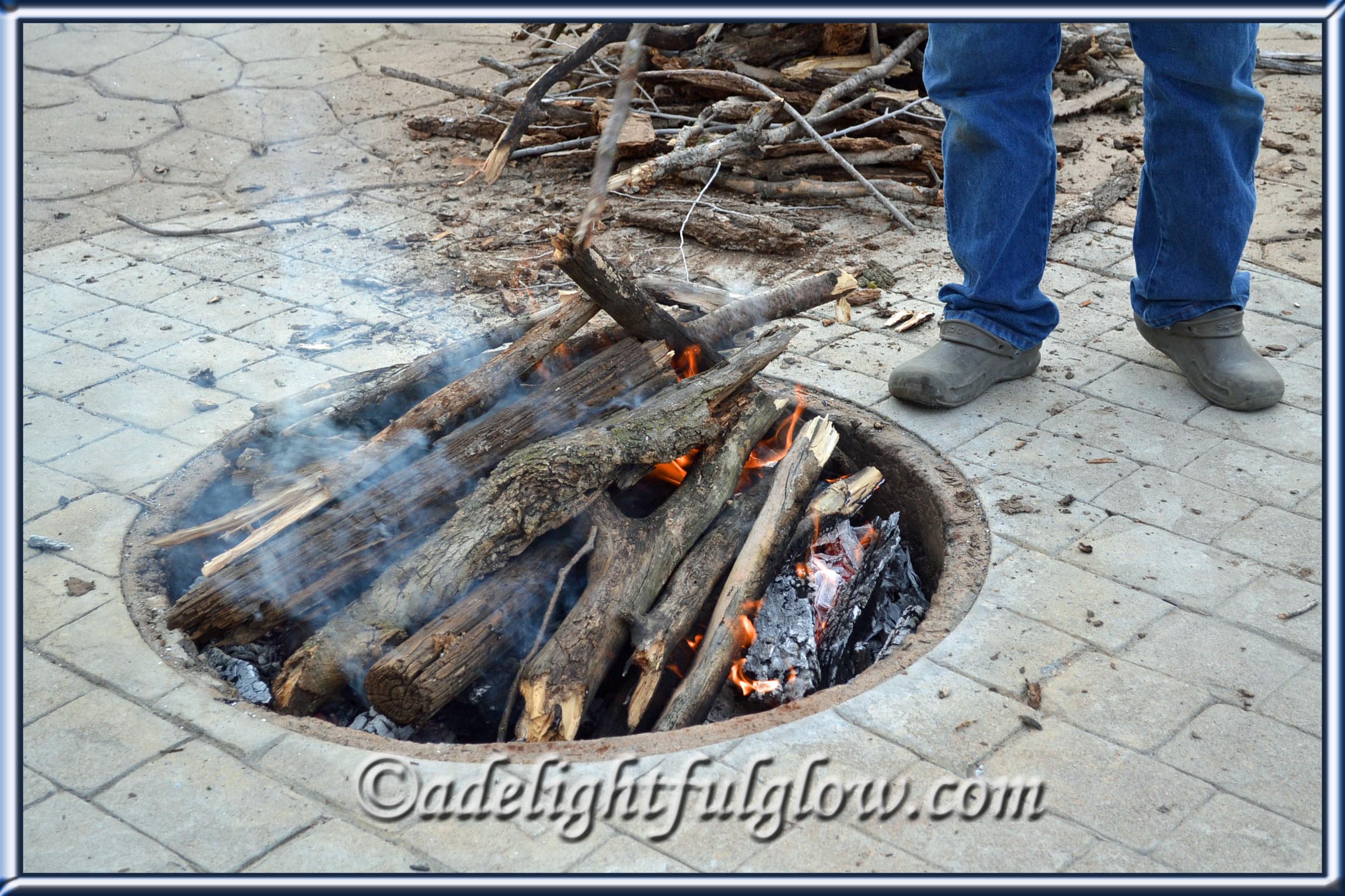 Hello to a Sunday evening campfire from a whole week ago! It was a beautiful spring evening with no wind at all. We enjoyed being outside and relaxing and snacking.