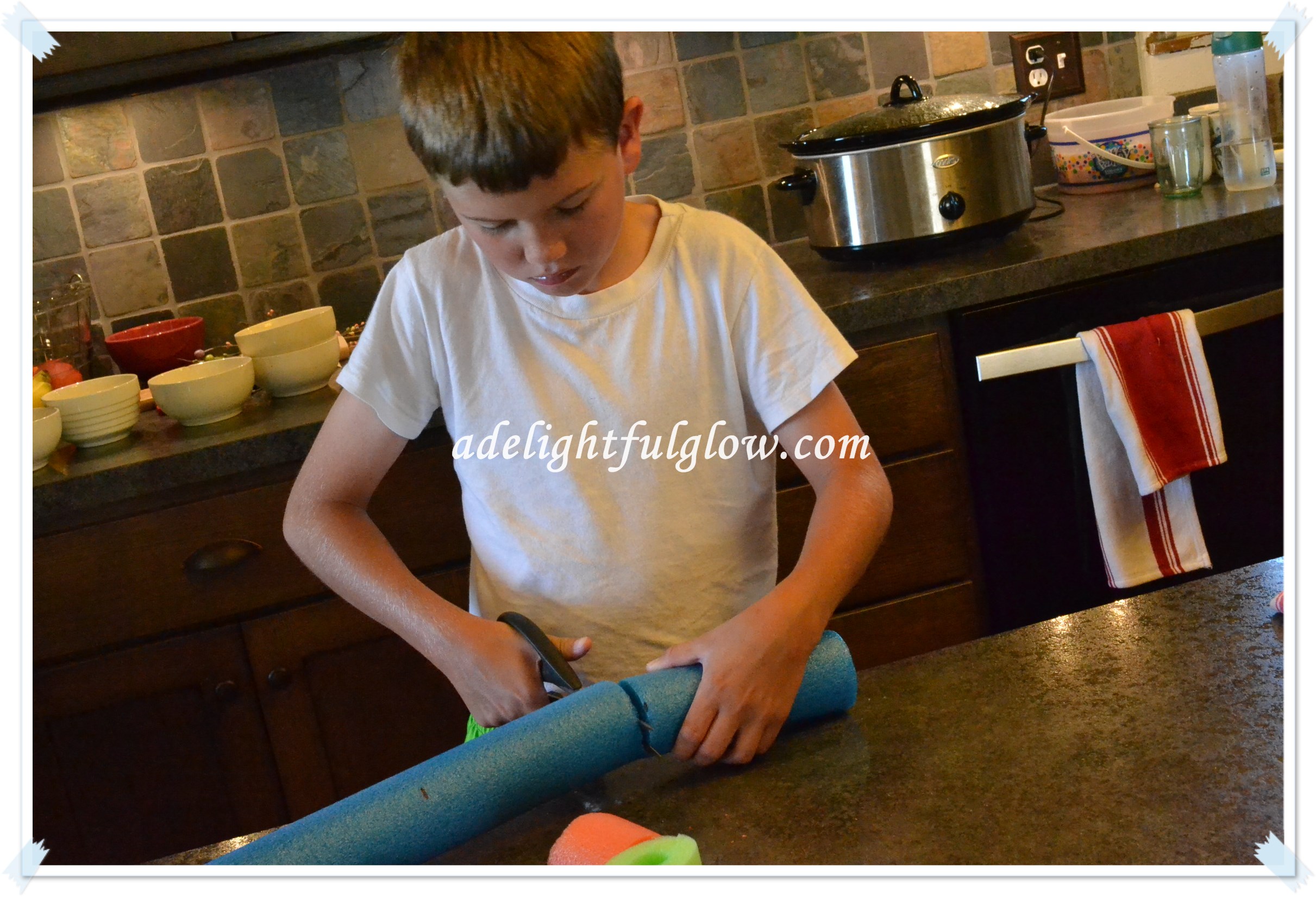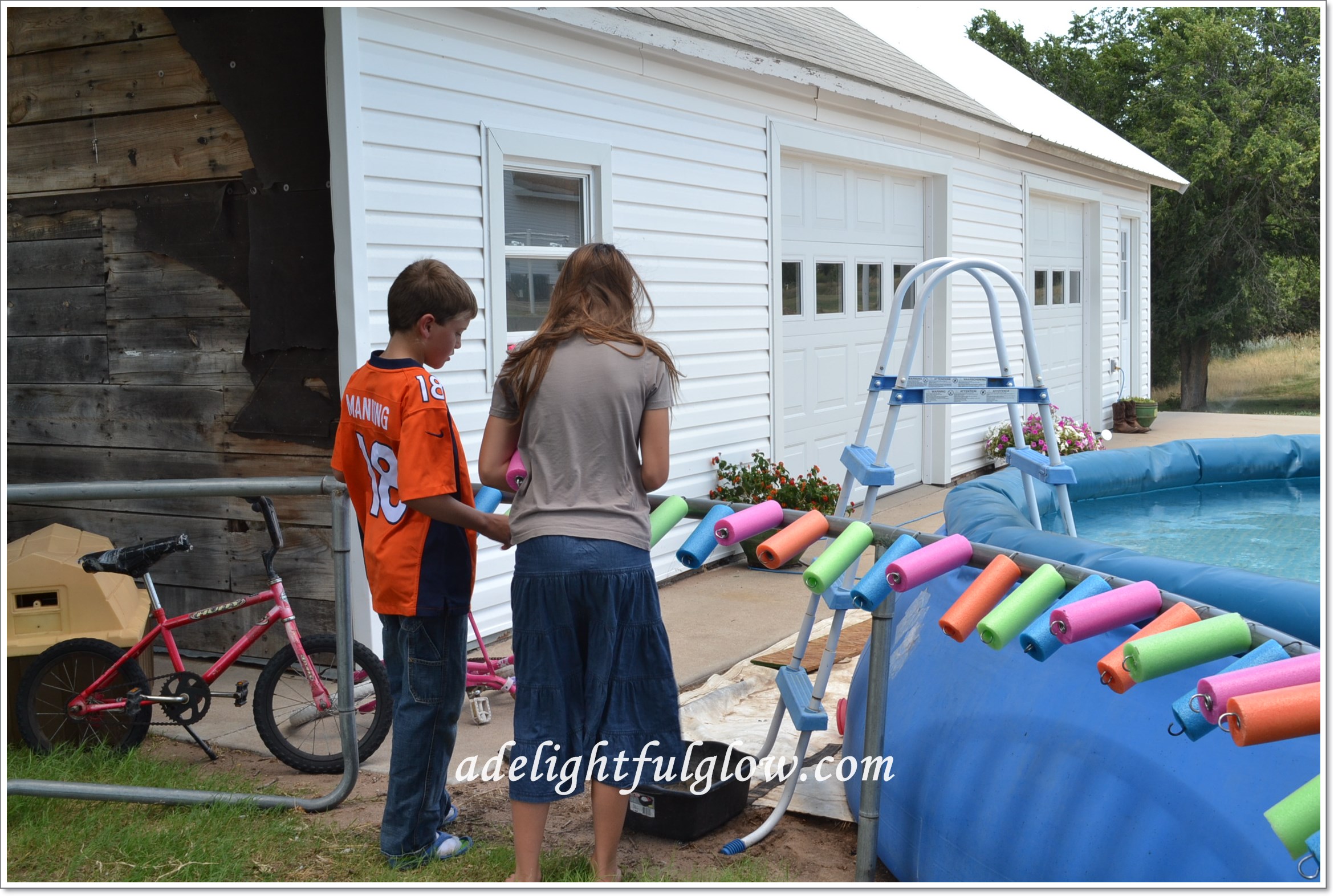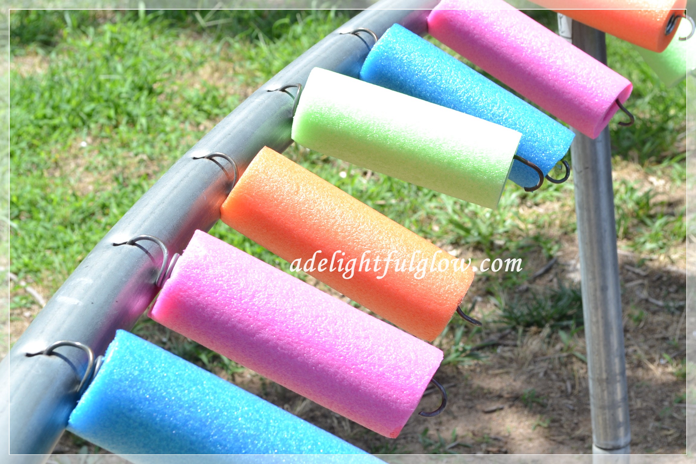 It was fun to use the noodles on the trampoline and makes it look cheery. Maybe pool noodles will be going on sale soon!