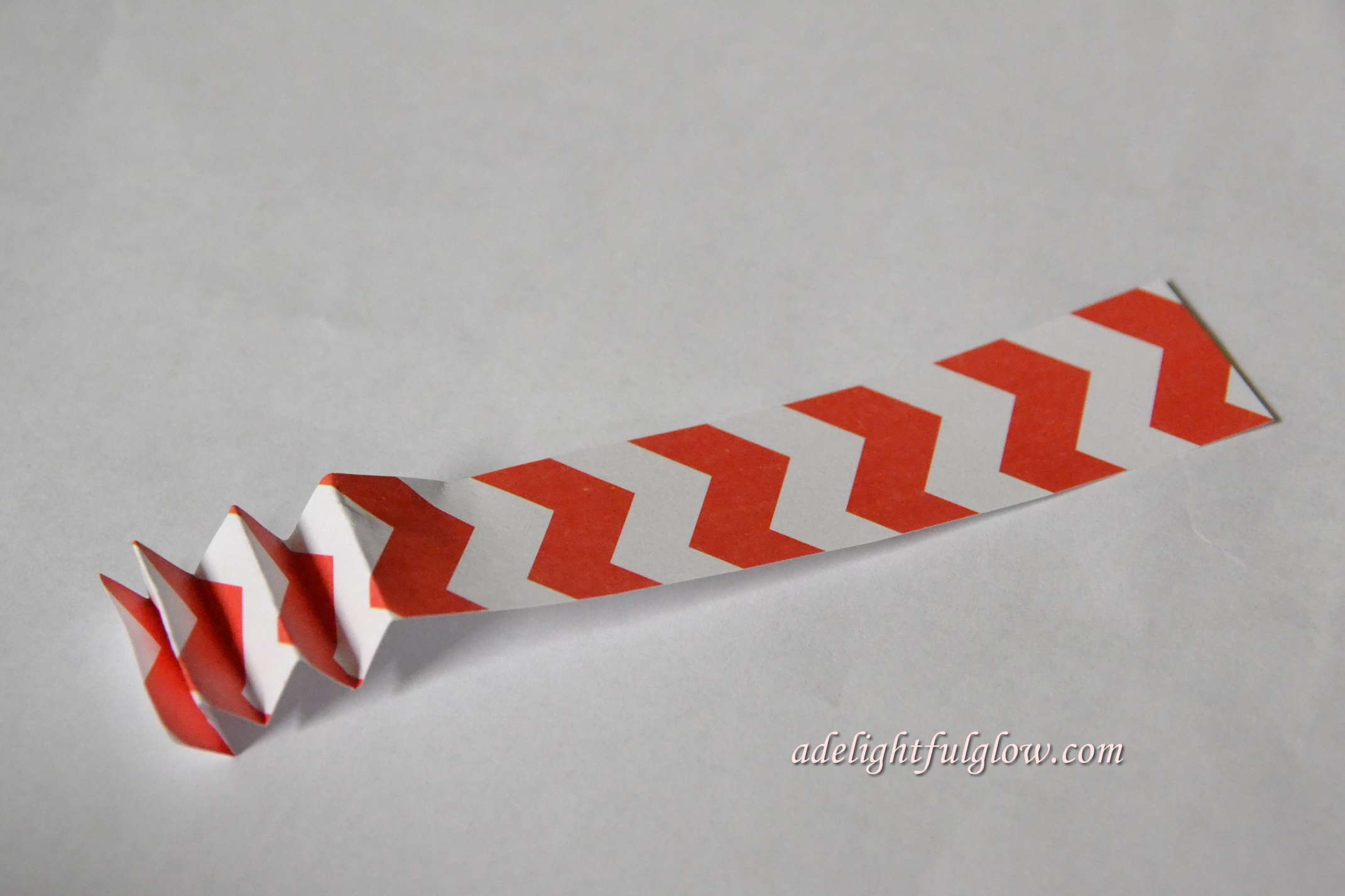 You will start with a few strips of paper. To get a good size, I use at least four strips of paper. The paper I’m using is cut from 6×6 squares, thus each strip is six inches long.