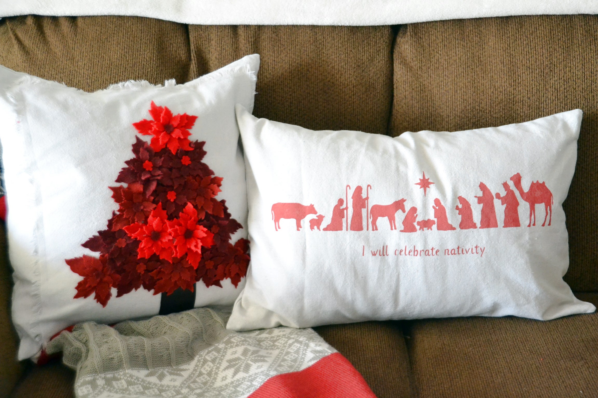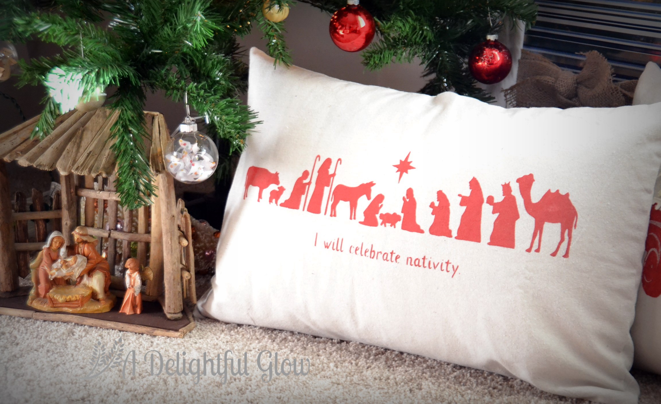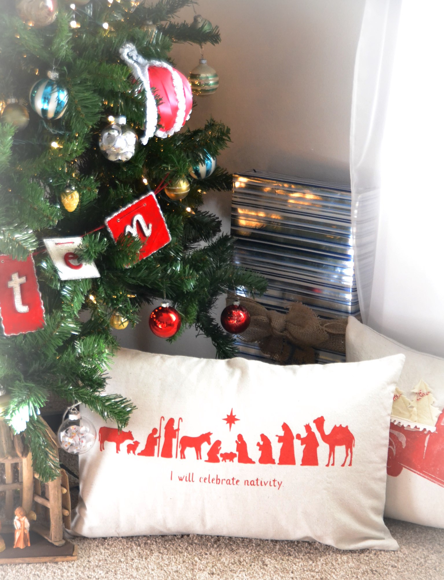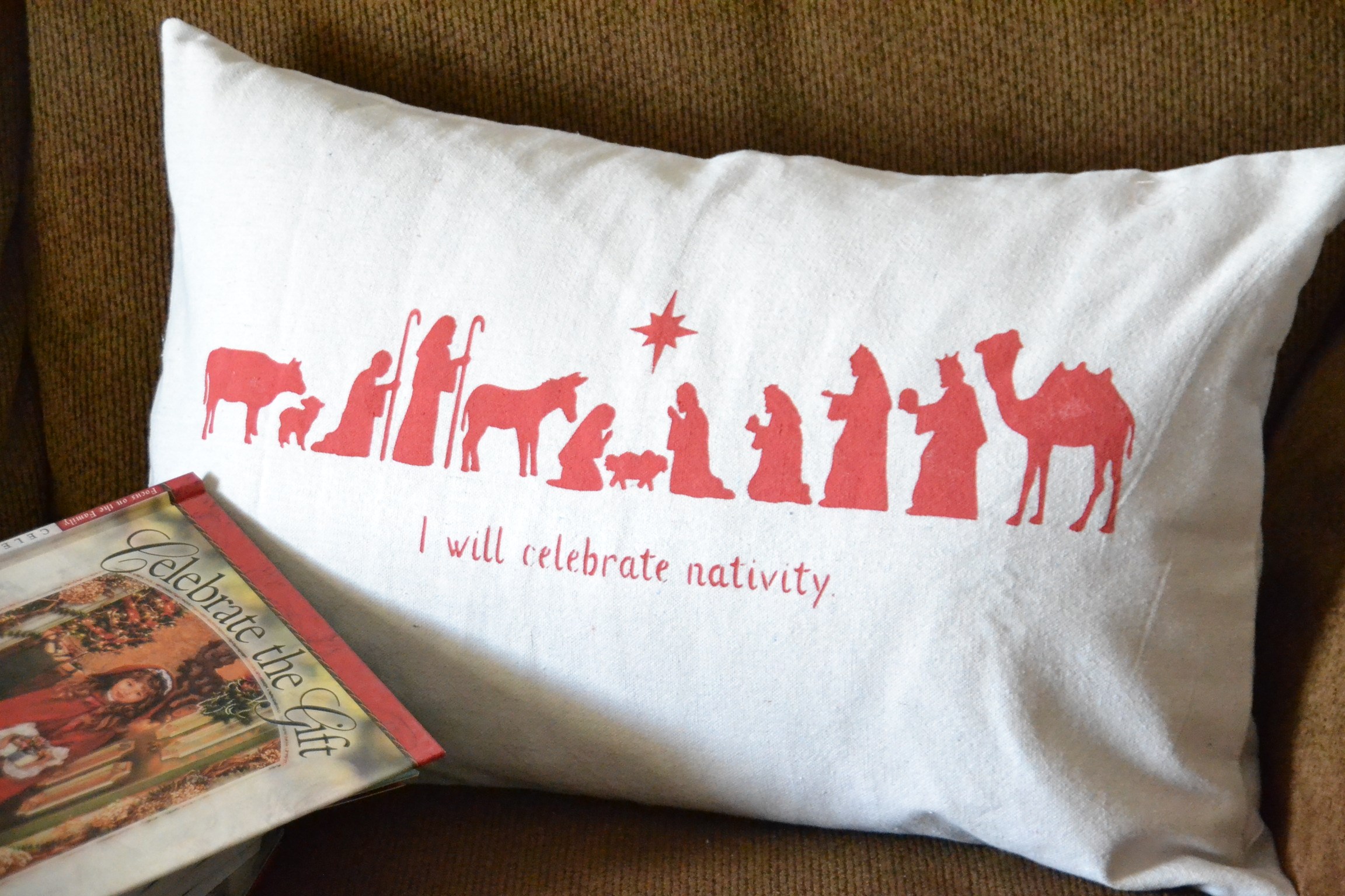 We’re giving away an “I Will Celebrate Nativity” pillow.