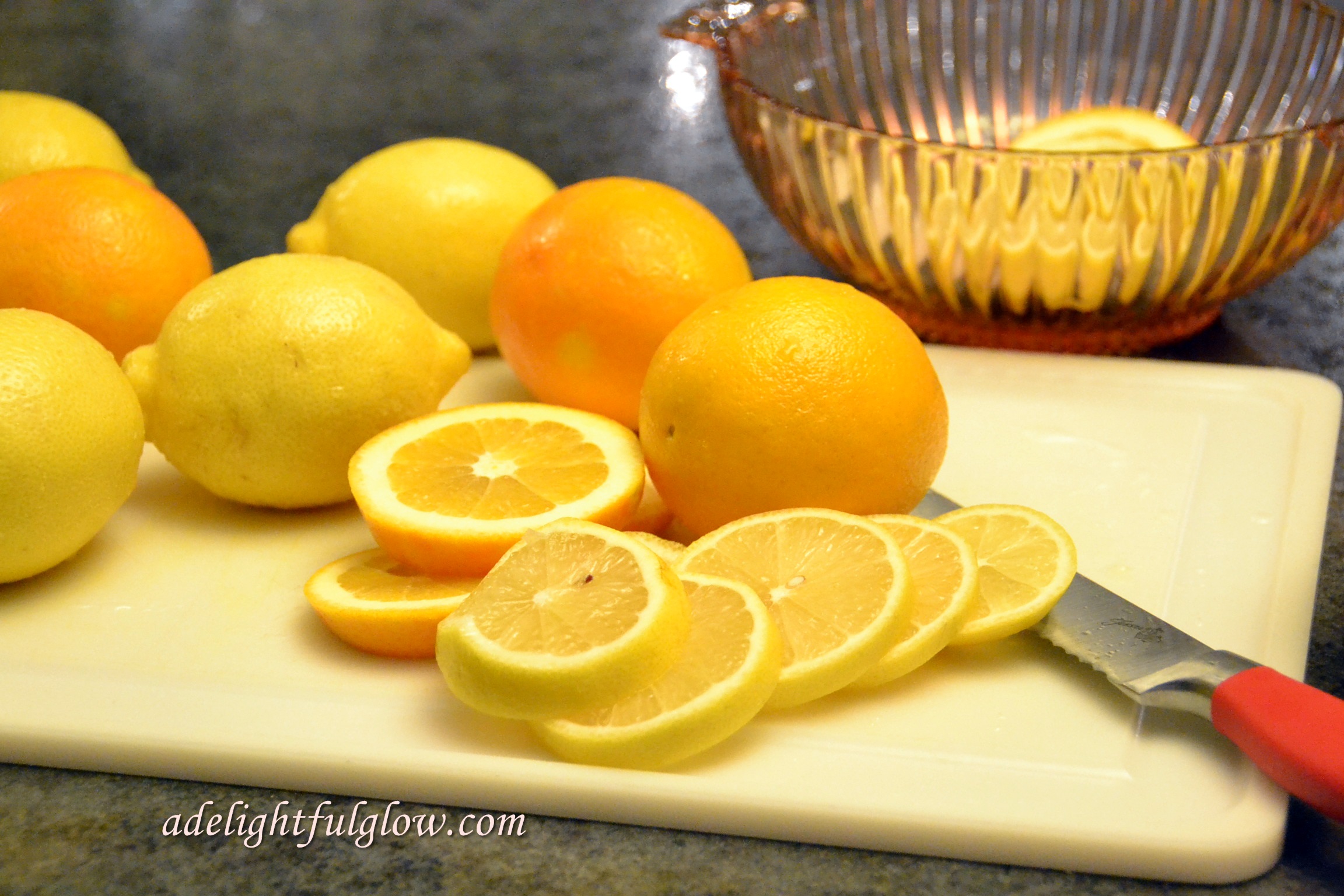 https://adelightfulglow.com/citrus-punch/Slice your fruit up! Taking pretty pictures is totally optional, but highly recommended!