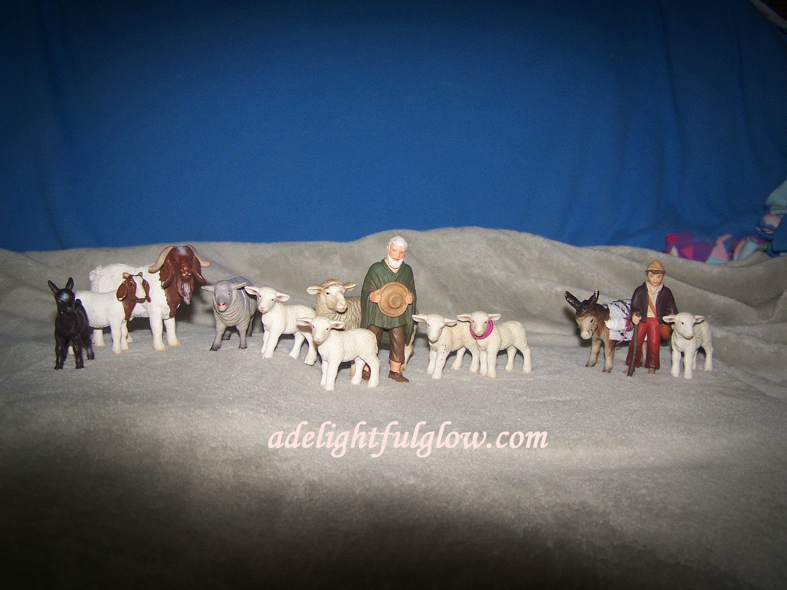 When we pulled out our Christmas decorations and nativities and set them up throughout our house, back in December, Renae took one of the nativities we have and detailed it and set it up in the basement. Then she had fun posing it and taking pictures of it. I loved what she did with it and her creativity and the fun she had. I loved all the detail so much that we still have it set up in our basement. I have another nativity that stays out year round. Babies are so precious and baby Jesus is a celebration all the time, even though Christmas is a special time to really remember and celebrate His birth and coming to earth for us.