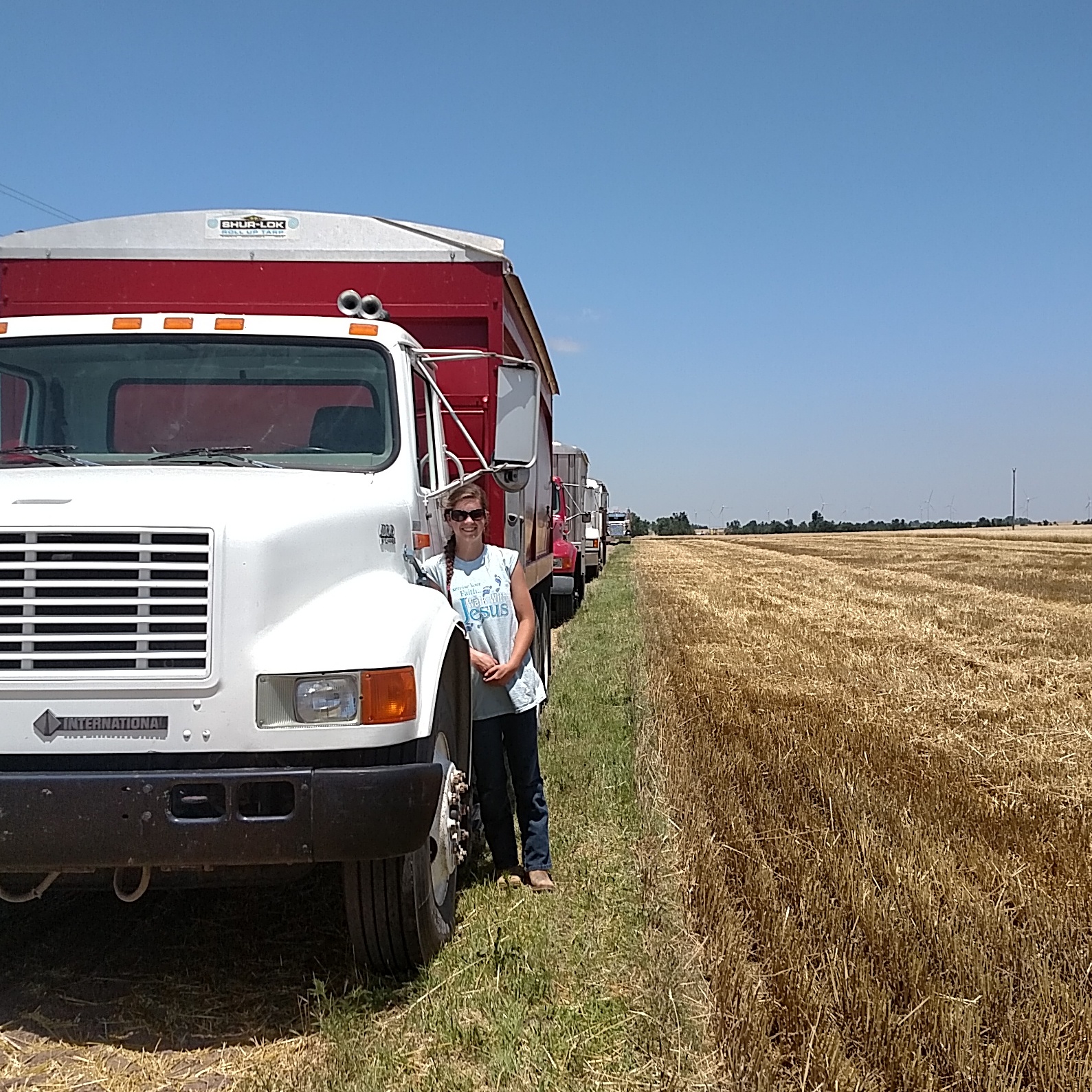 And somewhere along the way, as she grew up following her farmer daddy around and riding in the grain truck with her Grandma or her Uncle during wheat harvest, she began to say that SoMeDaY she would drive the wheat truck.