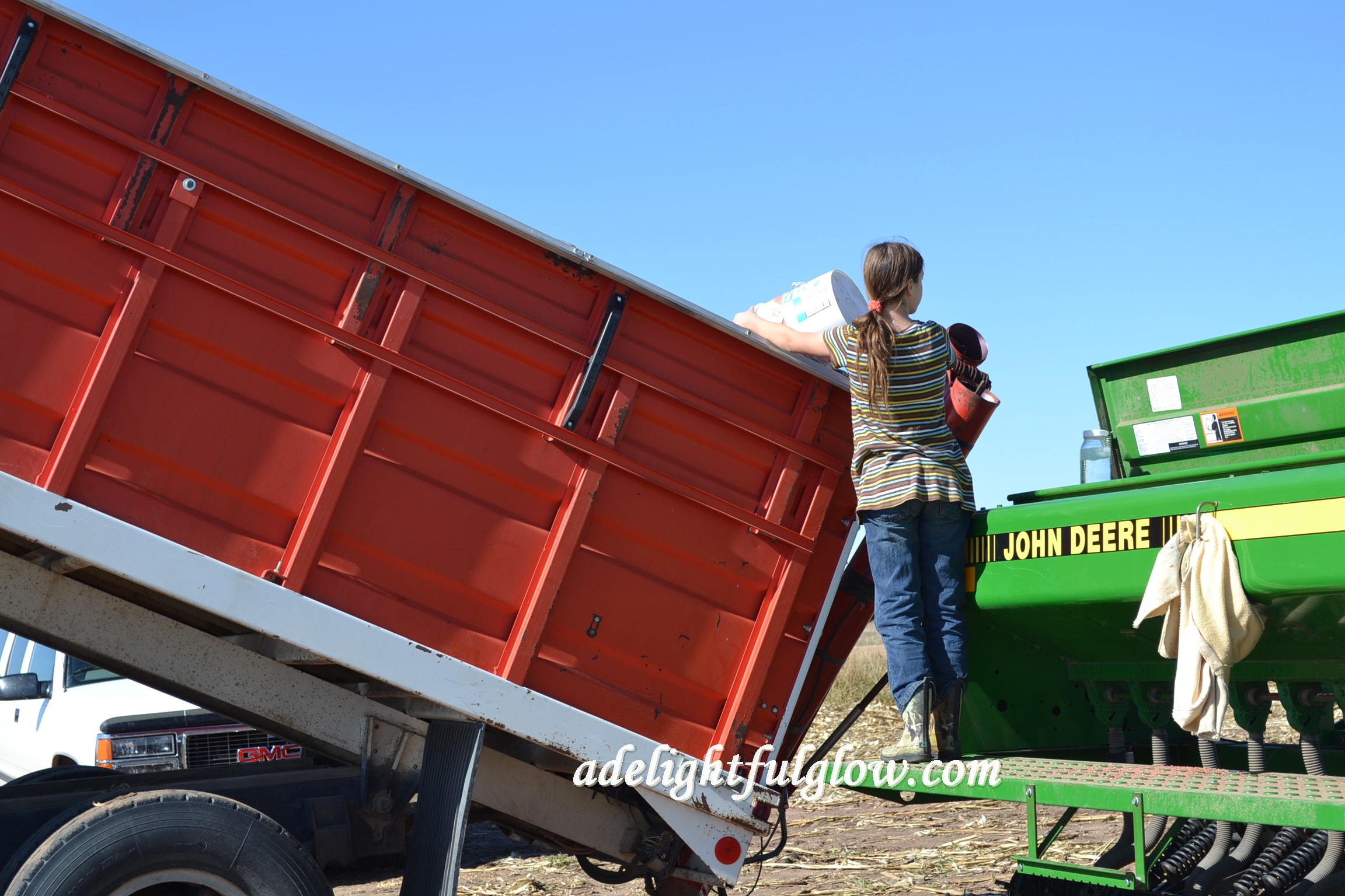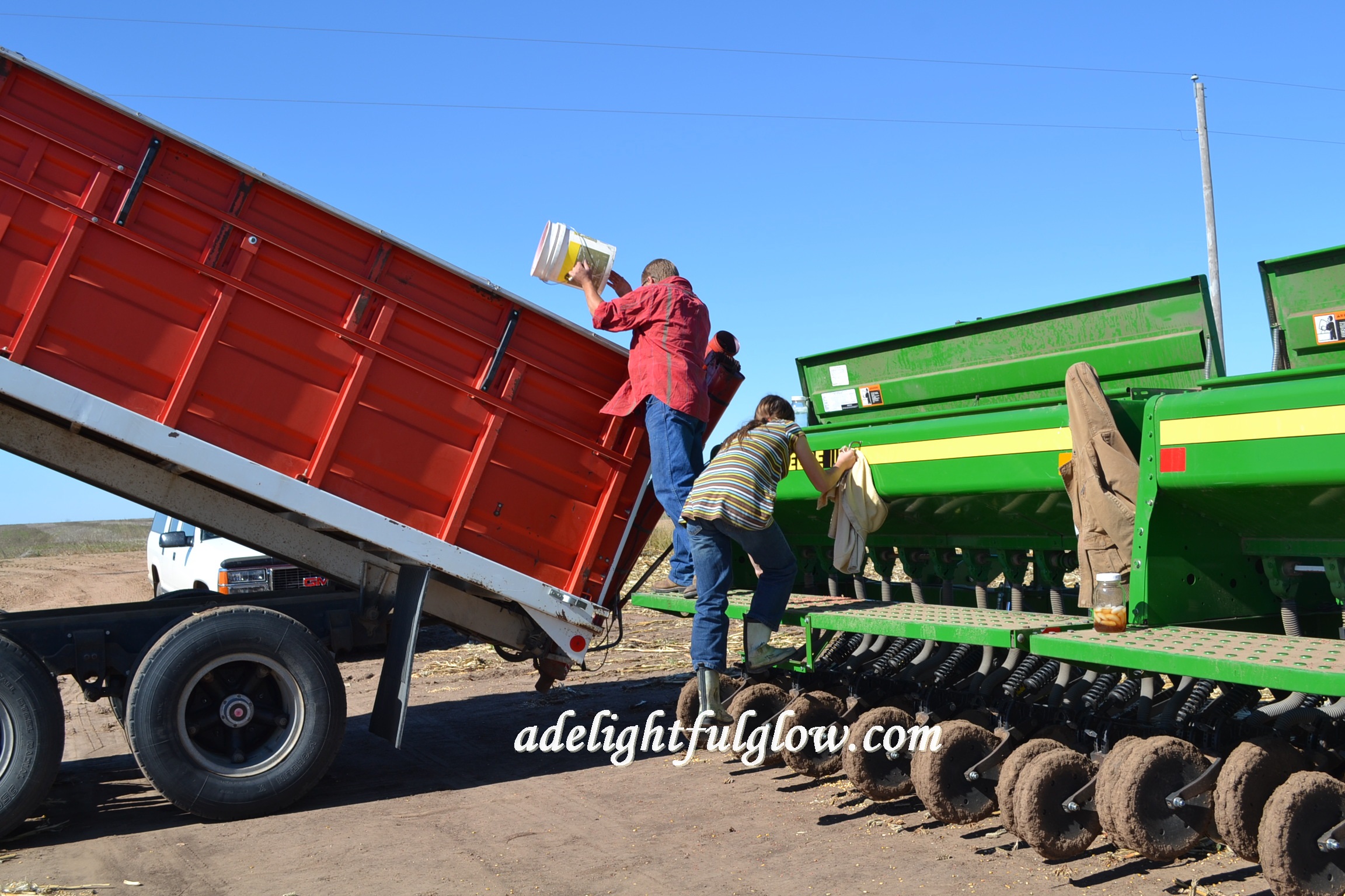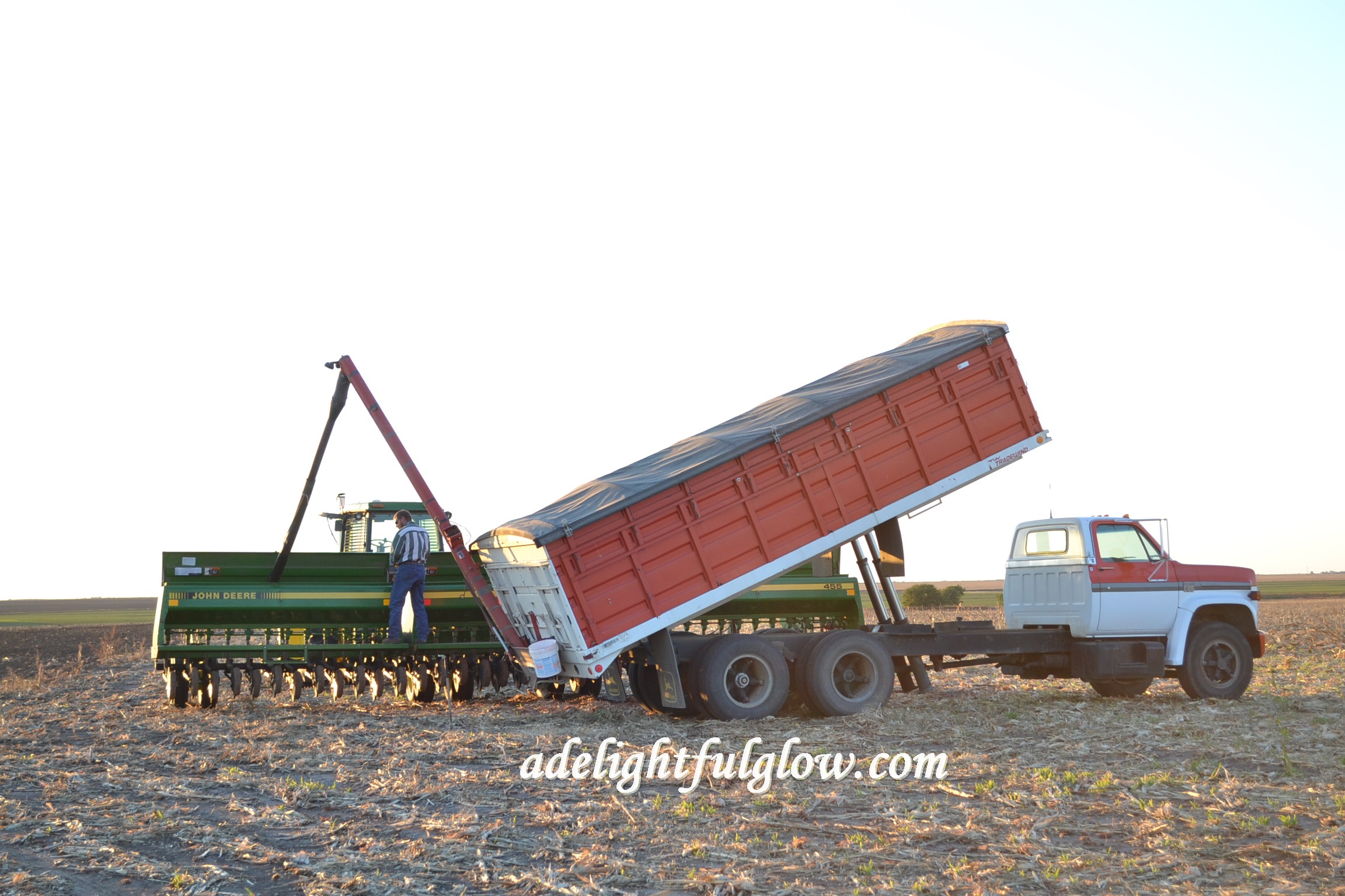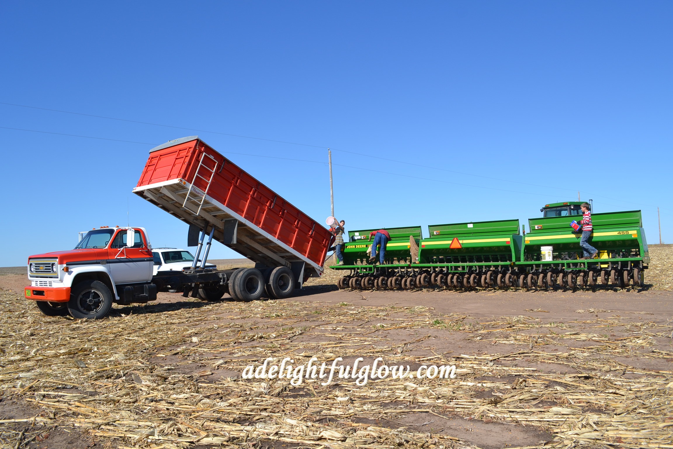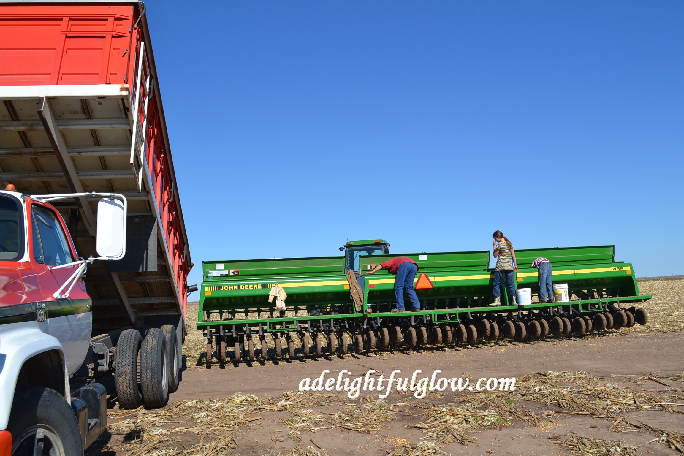 And when you get your drill full of seed wheat then you can drill your field until the drill runs low and you need to fill it again.