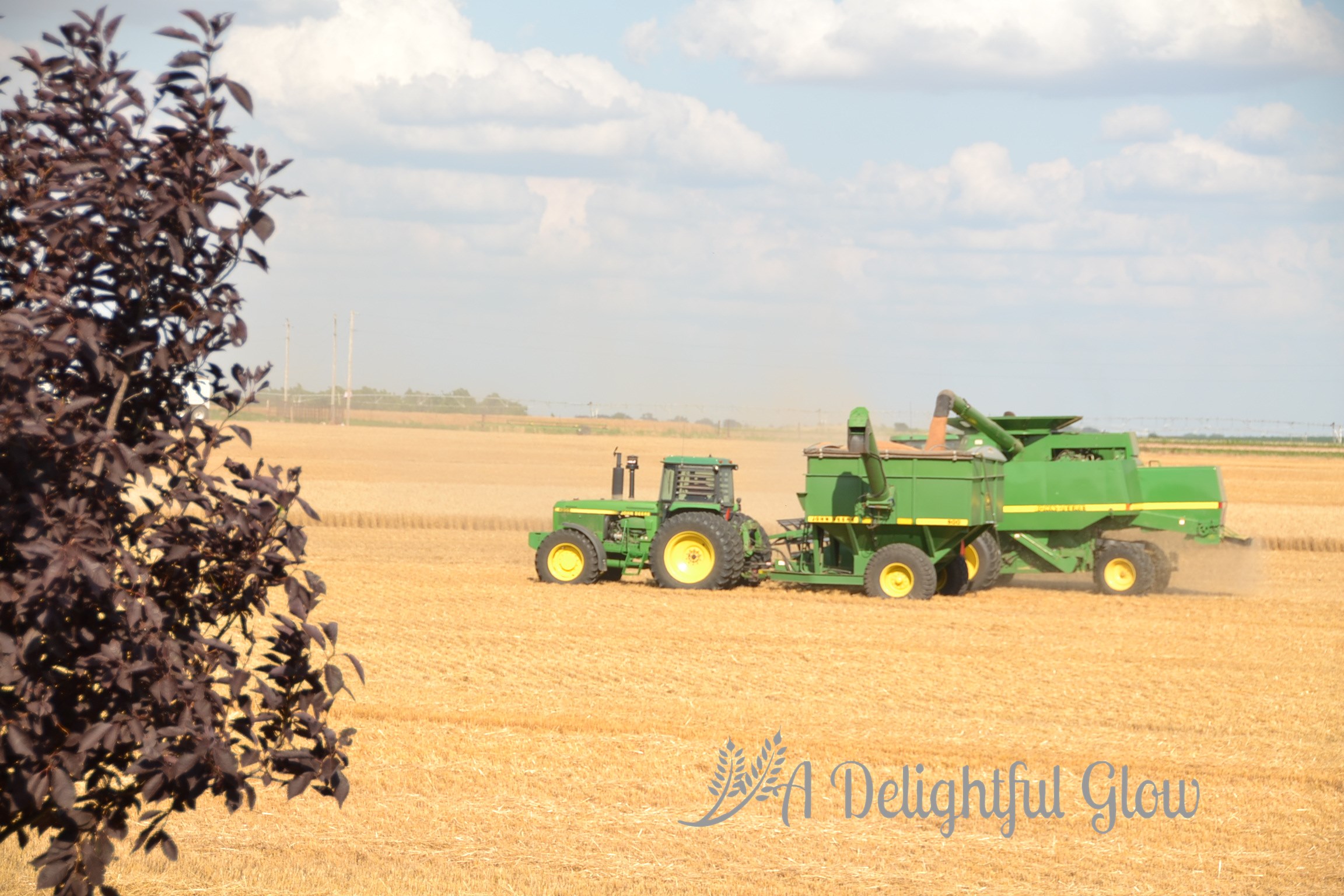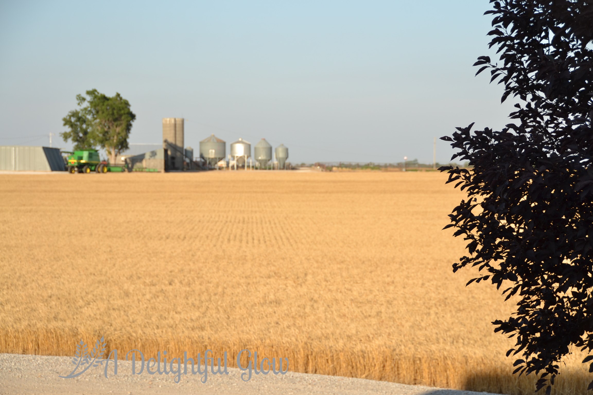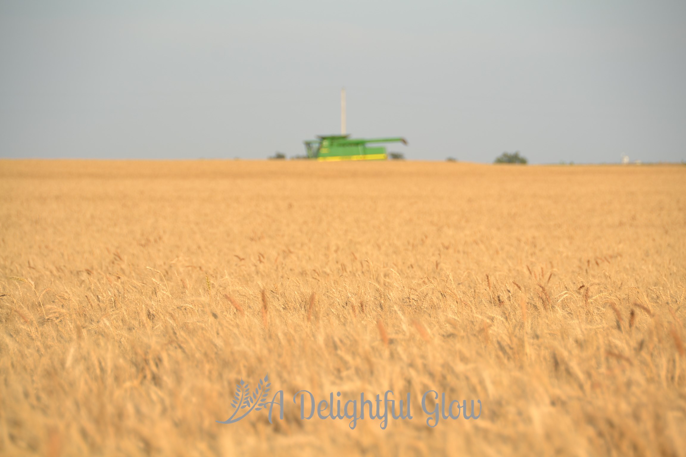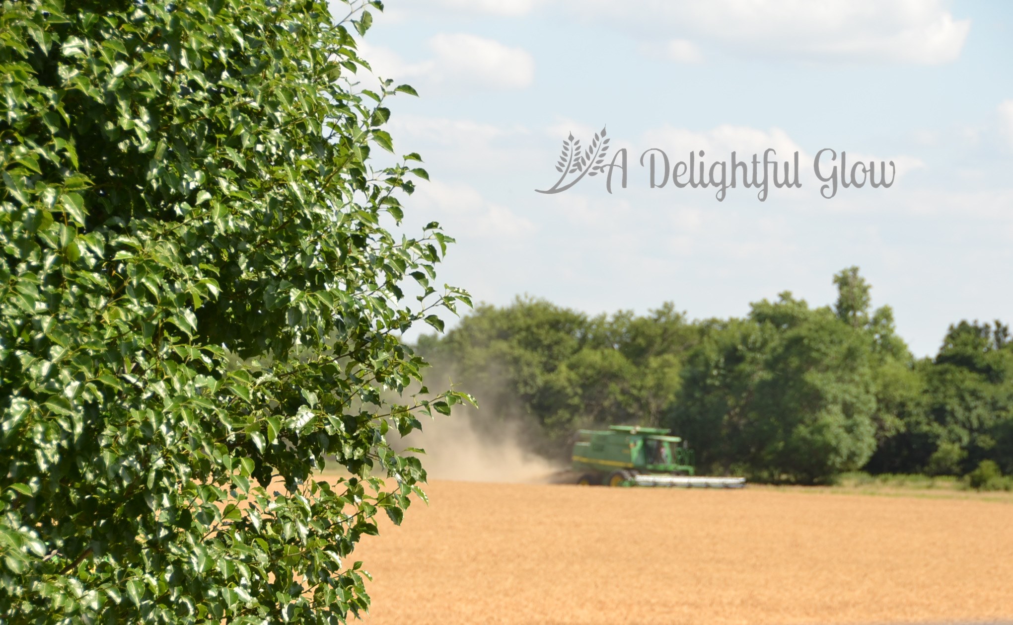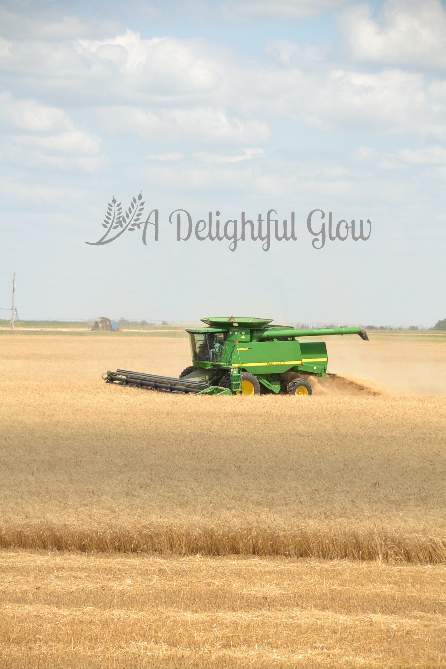 Tuesday morning we had a tiny shower again. Late afternoon, the combine fired back up and we did get some acres cut. Mr. Matthew was cutting the small field right beside our house. I always love it when he’s working so close. It makes for porch-sitting and watching, great photo opportunities and easy-easy to deliver meals or drop by the kitchen for food or an iced tea and easy access to go ride with him.