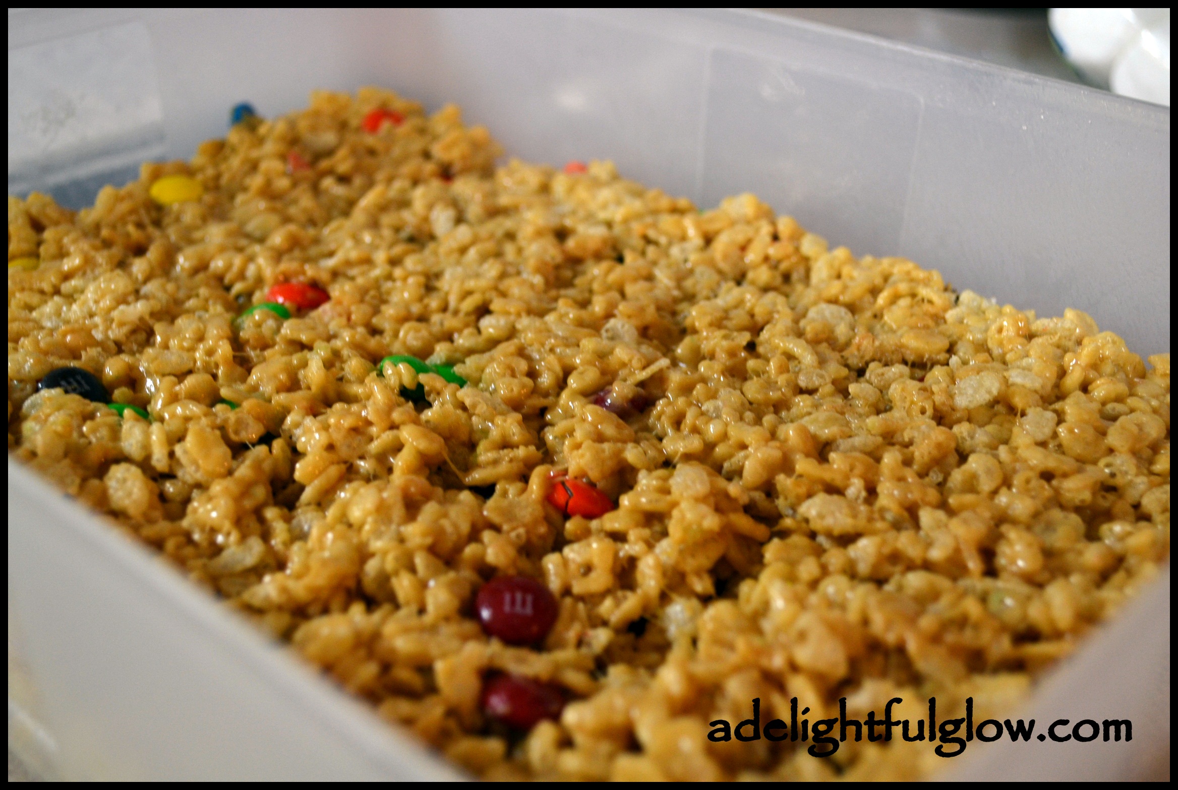 Hello Peanut Butter M&M Rice Krispie Treats! You are so yummy.