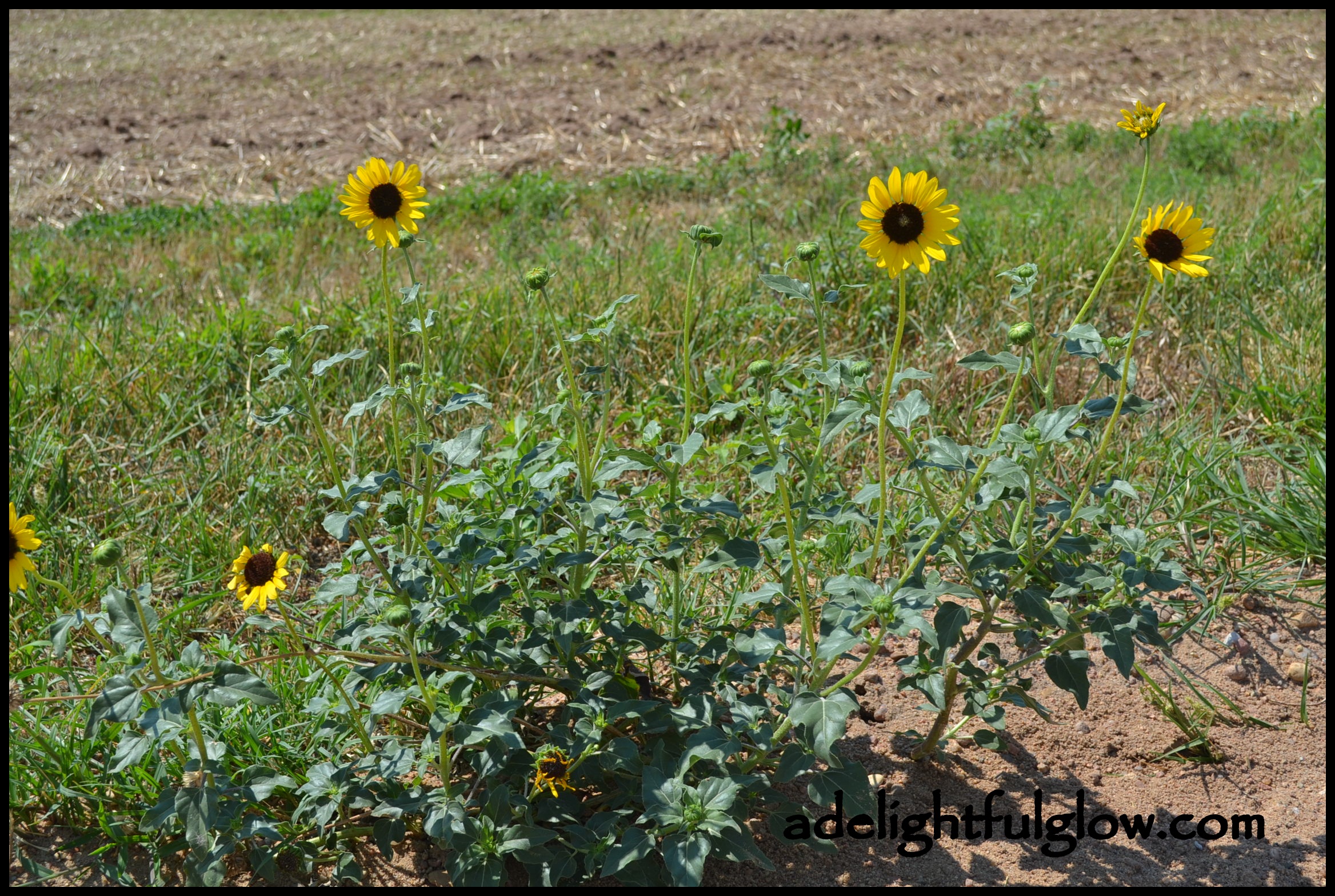 Hello bright, sunny, cheery, sunflowers growing alongside the Kansas dirt roads!