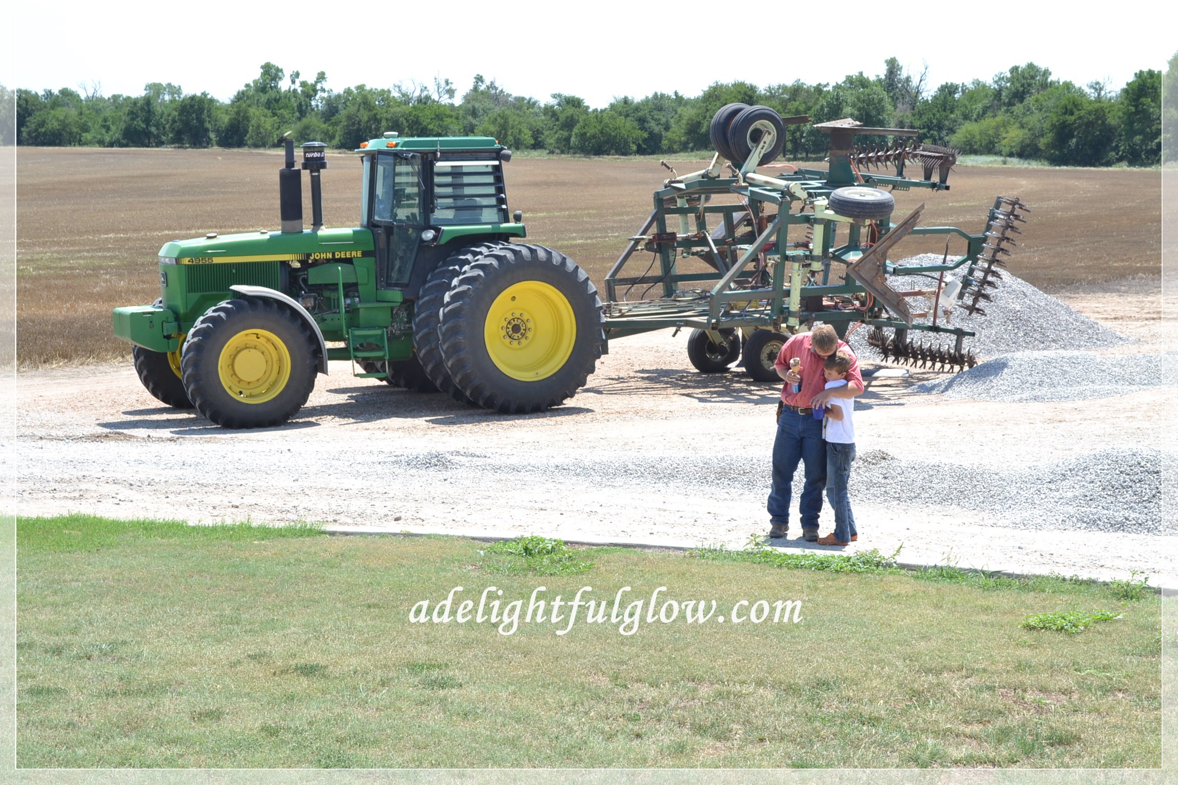 Hello to walking and cleaning out garage and moving rocks and washing rugs and taking lunch to my man and 100 degrees and picking up sweet corn at Mom’s and the kiddos swimming and playing outside and hello to watching sprinklers spray the yard and trees and playing chauffeur for my farmer and the kiddos and I mopping the kitchen floor on Tuesday.