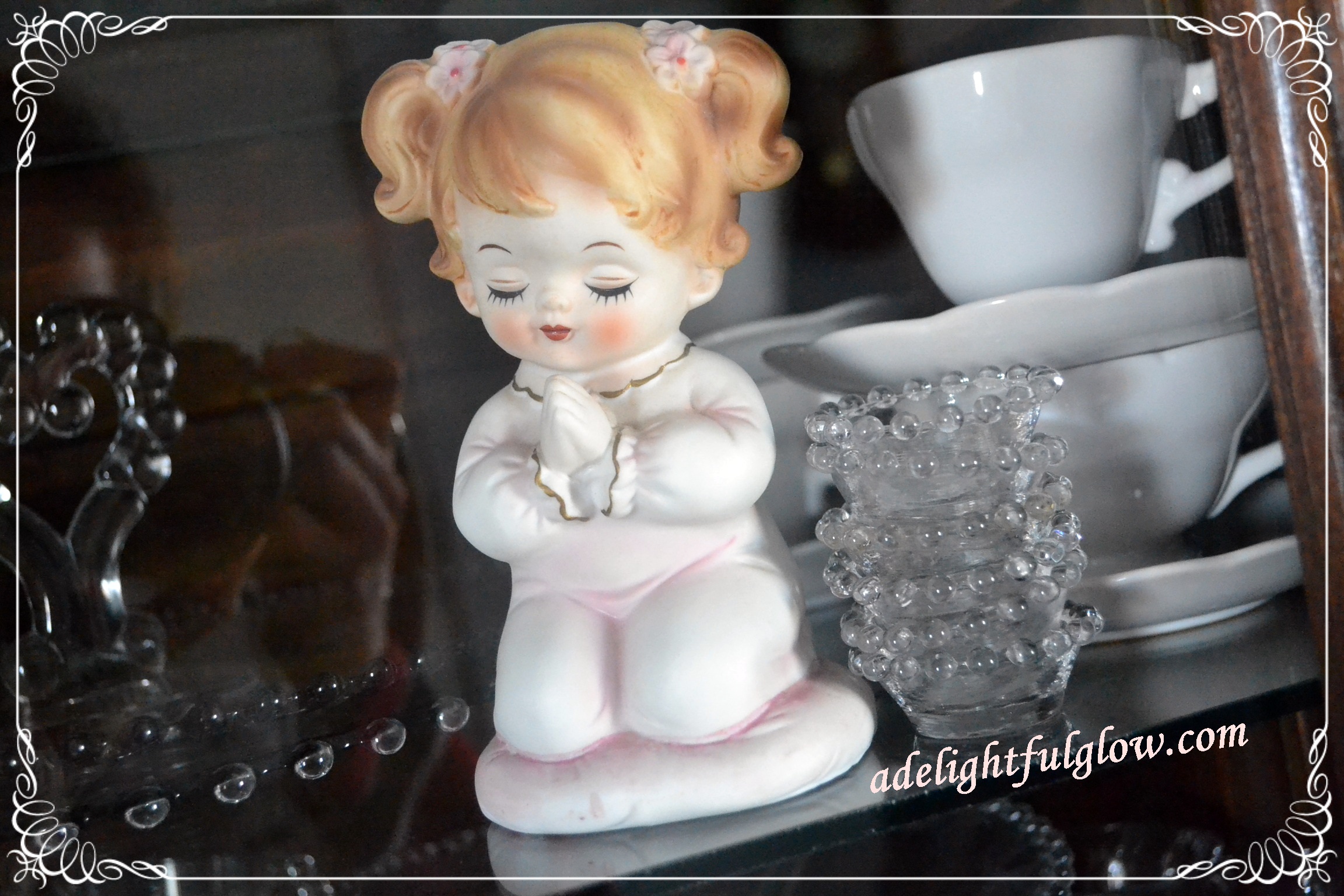 This sweet, little girl was mine when I was small. She is a night light. She resides in my china cupboard and I like her sweet simplicity and the memories attached!
