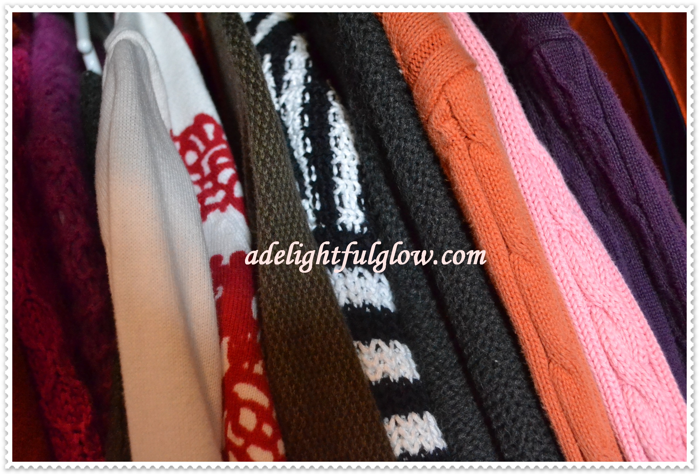 Pretty colorful sweaters all in a row! I love cozy, comfy sweaters.