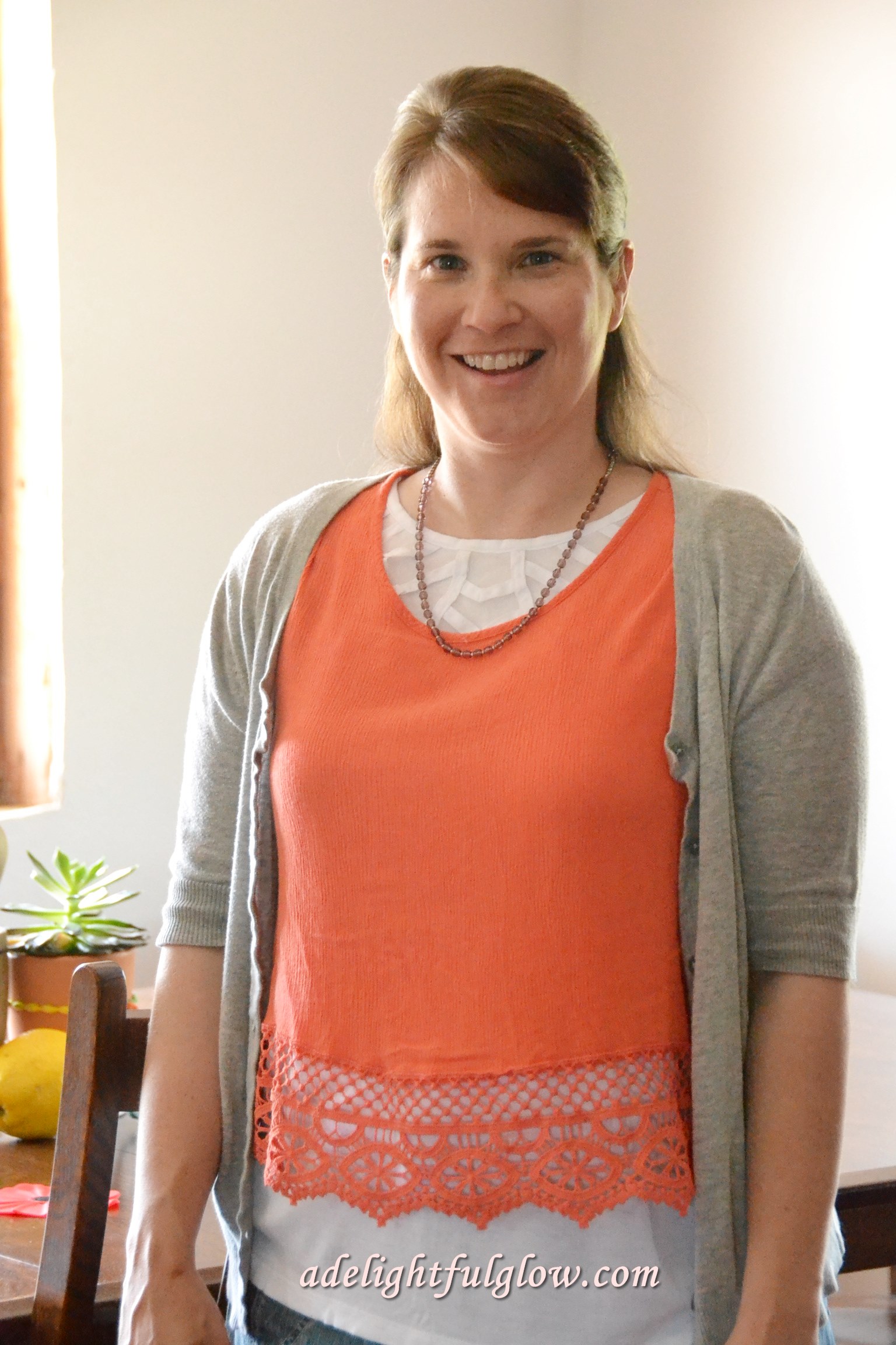 I layered the tank, lightweight shirt and sweater. This gray sweater is also a favorite of mine in spring and summer.