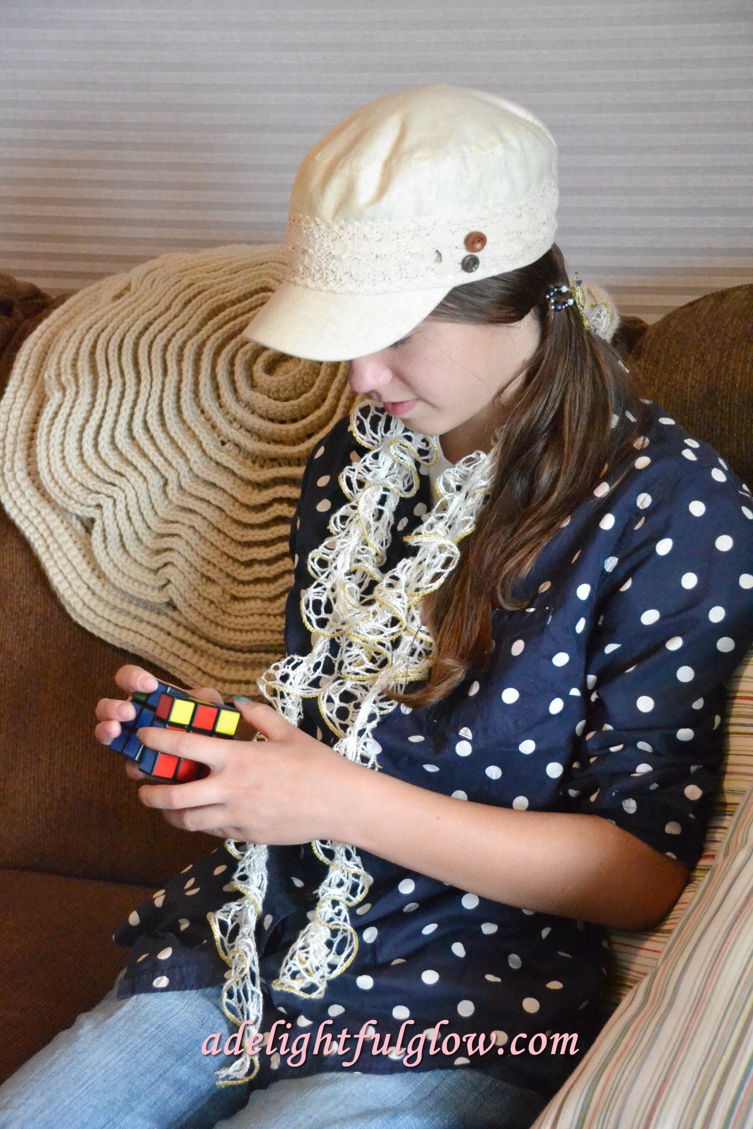 She was working her Rubik’s Cube when we got ready to snap pictures and I loved the colors on the cube with her shirt.
