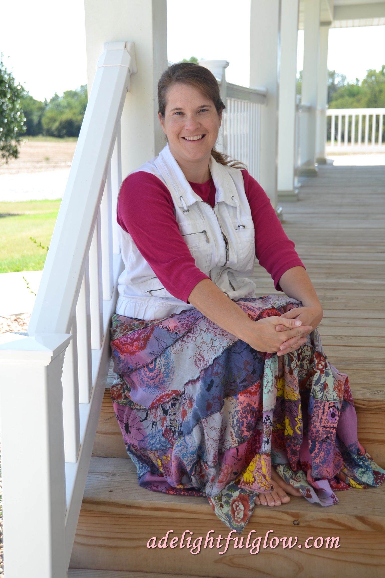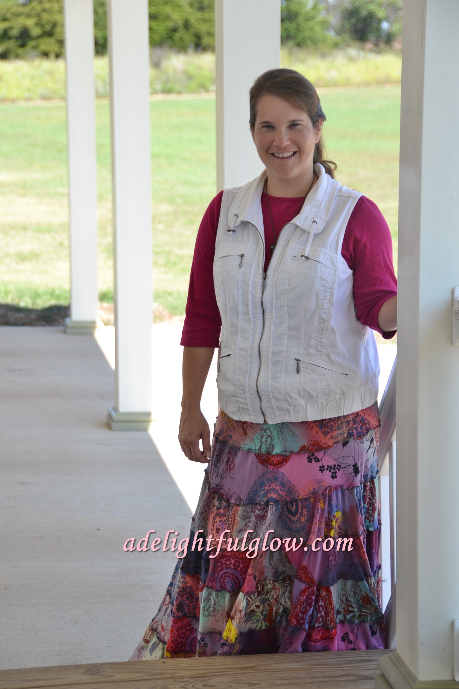 A lot of tiered skirts I do not like on myself. They are cute on other gals, but not me. This one I like and it works and it makes me so happy!