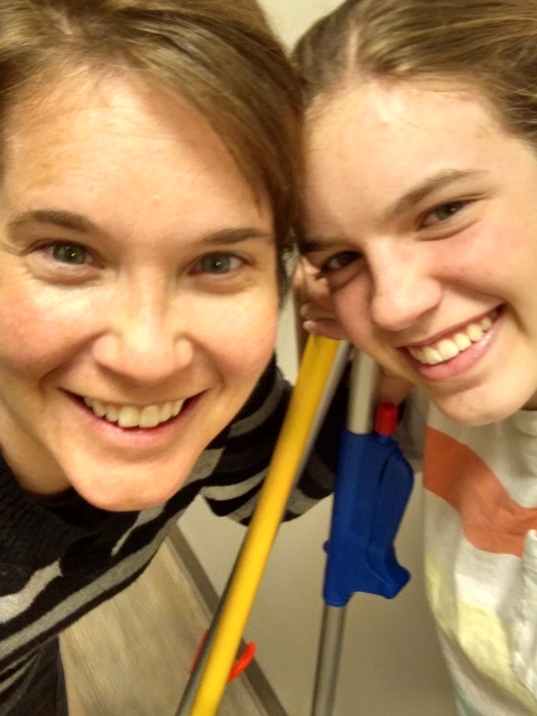 Amen! Praise His Name again and again! Those silly cleaning ladies make cleaning look like a blast not like drudgery! Blessings on all your dear people who take such good care of you. Love you all!