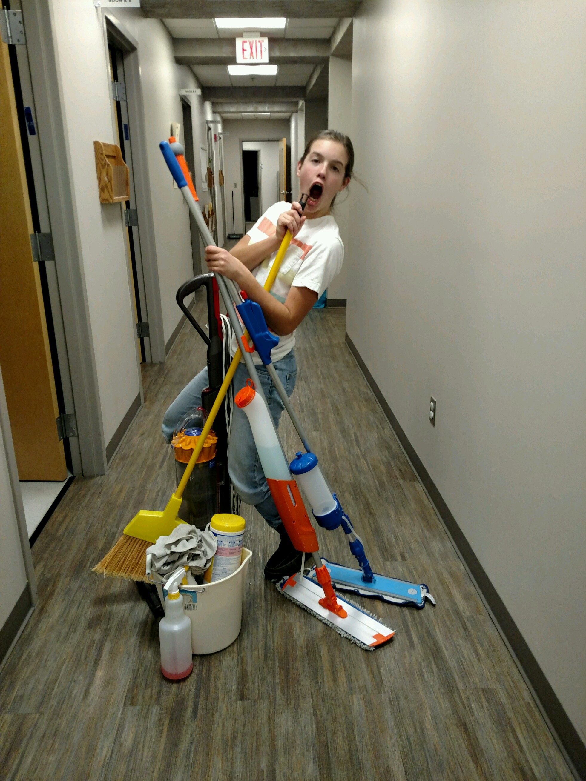 Said cleaning ladies may have gotten a bit silly. Or it may not be all that out-of-the-ordinary either!