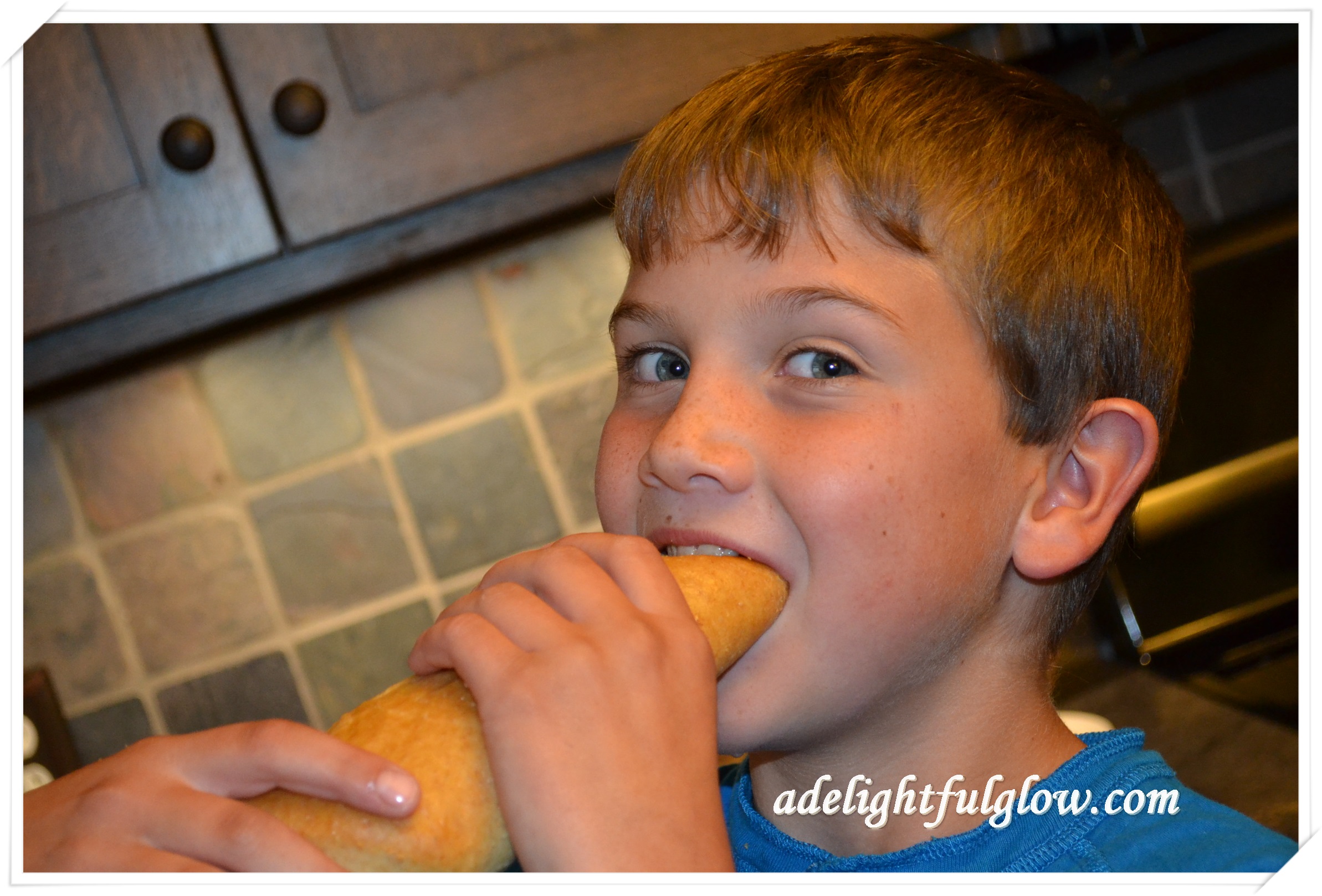 So he did. He used 1/4 of a circle of dough for one roll instead of cutting it into three pieces like we normally would. I think he was pretty pleased with how it turned out and he totally enjoyed eating it. He didn’t end up eating it all in one setting, but that might partly be because he had already eaten a normal size roll fresh out of the oven.