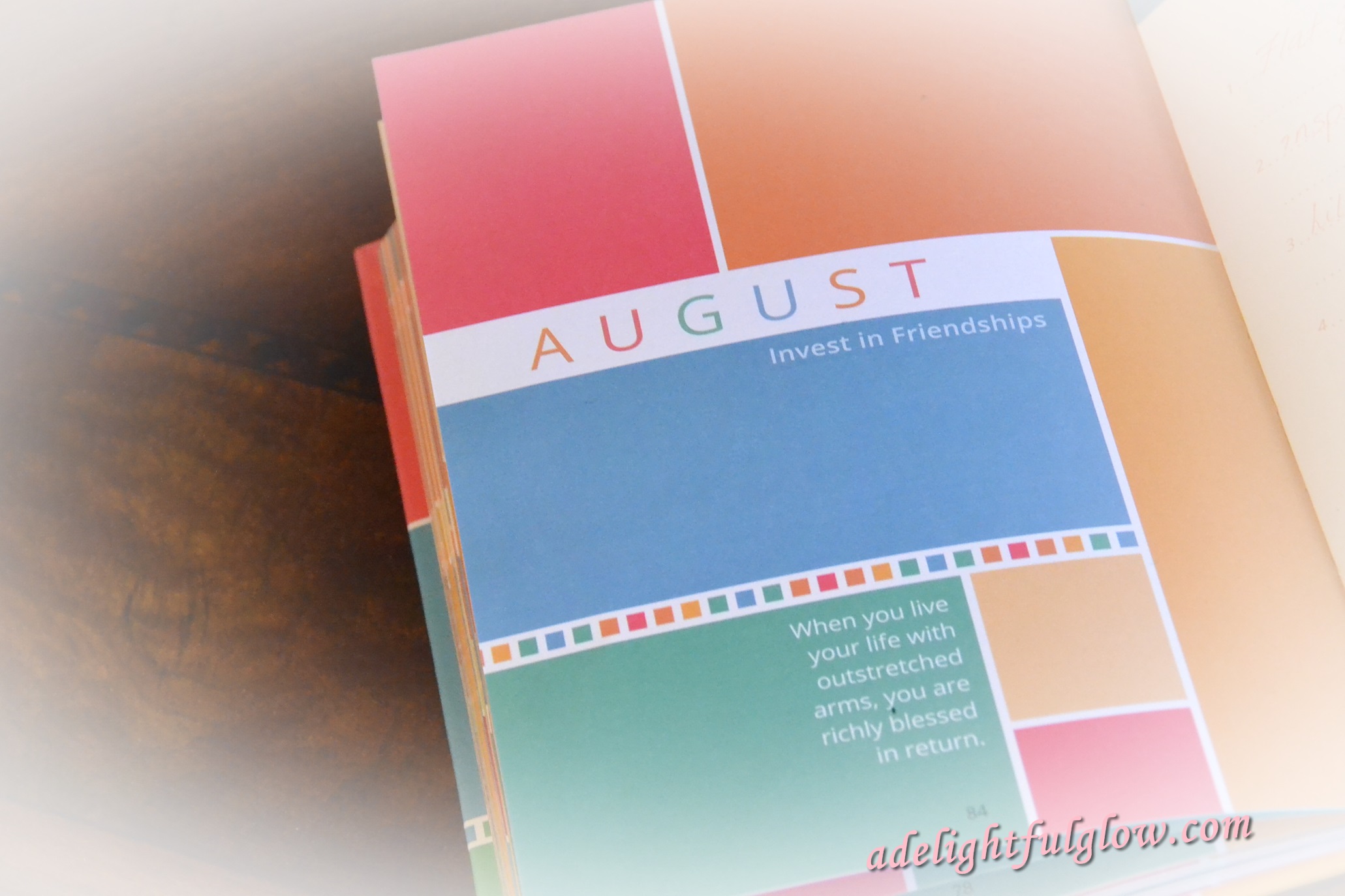 The category for August is the simple heading, Invest in Friendships. I noted it when I turned the page in the journal to August. As August is drawing to a close, I noted with happiness that during August, different opportunities for a few moments or a few hours with friends had worked out.