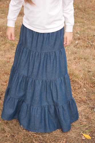 Here’s a closeup of the denim Prairie Peasant Skirt Sarah sells in her shop. So pretty!