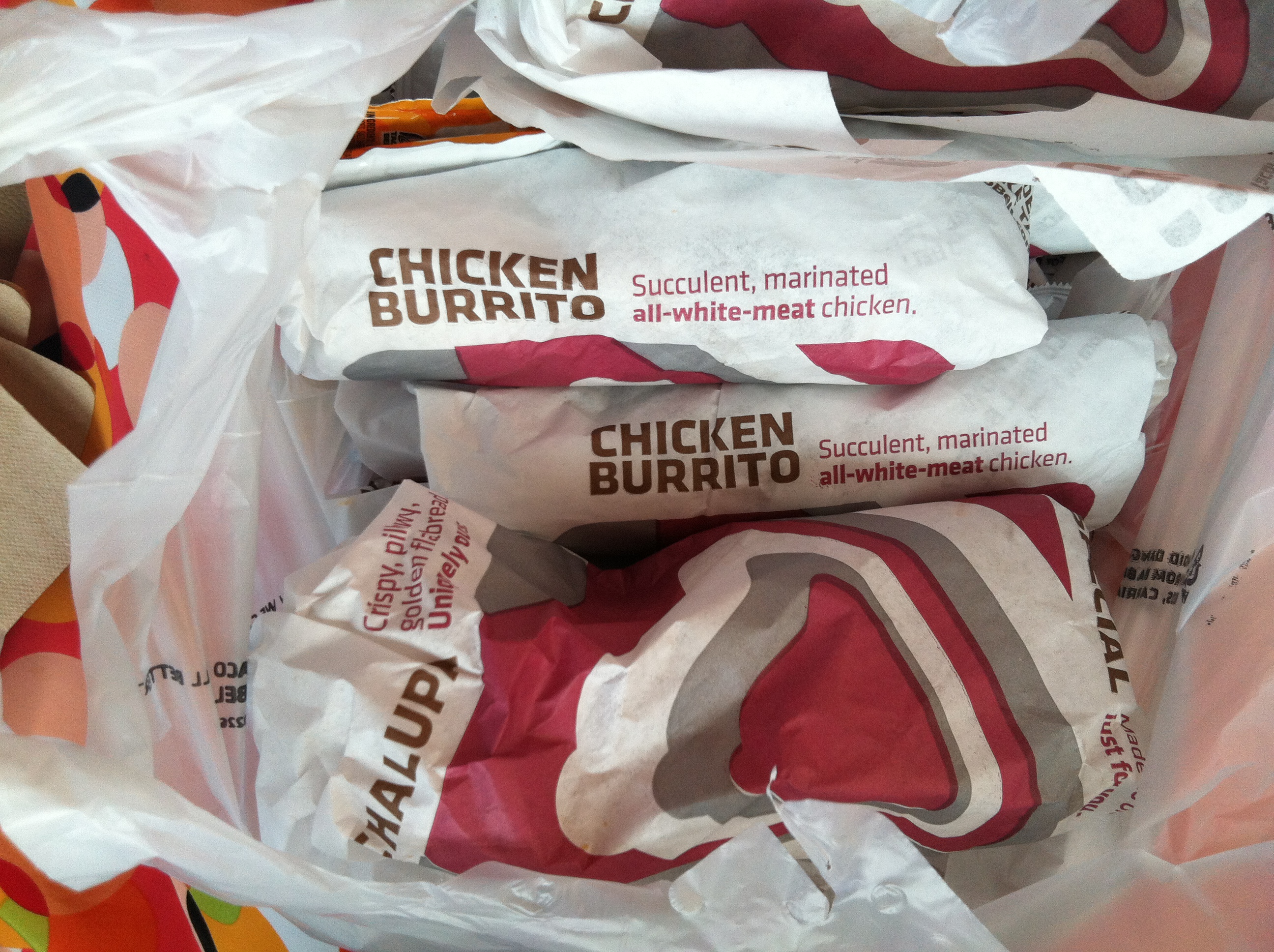 I apologize for not having a photo of a chicken burrito to add to this post. Maybe the next time I go to Taco Bell, I will snap one.