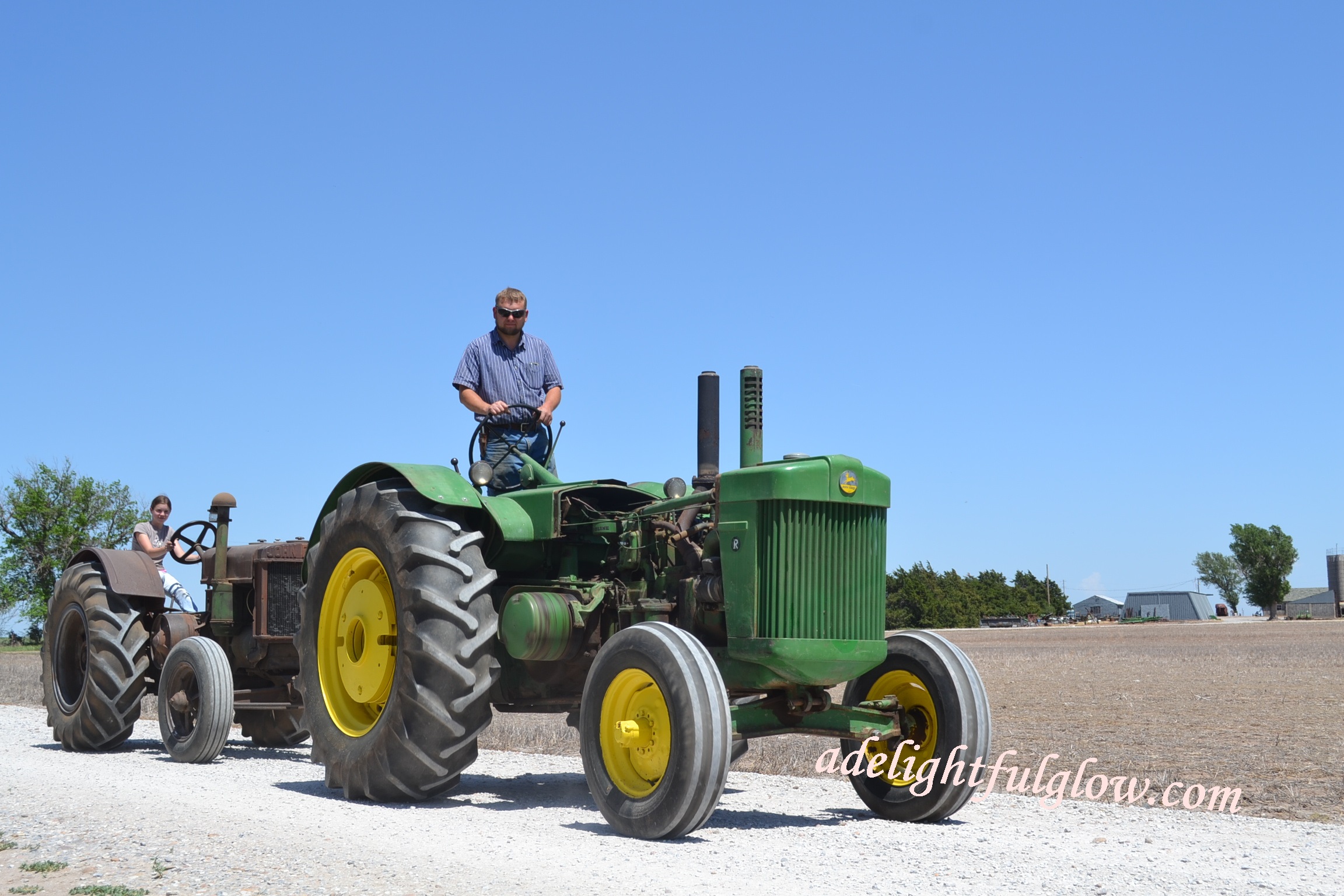 Our old John Deere R had been needing some attention, so the mechanic of the family did some work on it and then got it out to take a spin or two. He ended up bringing his brother’s John Deere D over from the farm and consequently tried starting it up. It sprang to life with a bang and we were in business! Two pop-pops to exercise. I like watching the old tractors and enjoyed sitting on the porch taking in the view. Plus, it was hot in the sun. Like 9o some degrees hot.