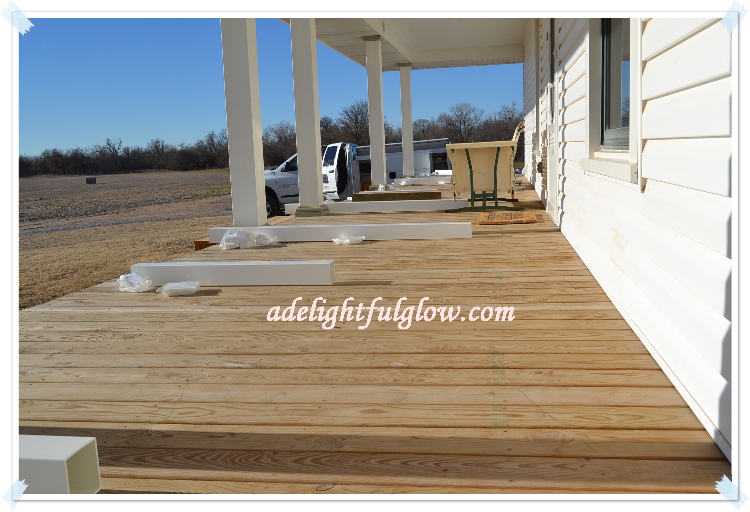 Along with the birthday to celebrate, the beginning of the week brought railing for the porch! Hooray! As we’ve worked on our house and around our farm, some of the changes I will think about a lot or notice the change for quite a while. Something about the railing though, feels to me like it’s always been here and just belongs. I think about it and love it, but it hasn’t seemed new or different. It just feels like it fits, I guess! 🙂