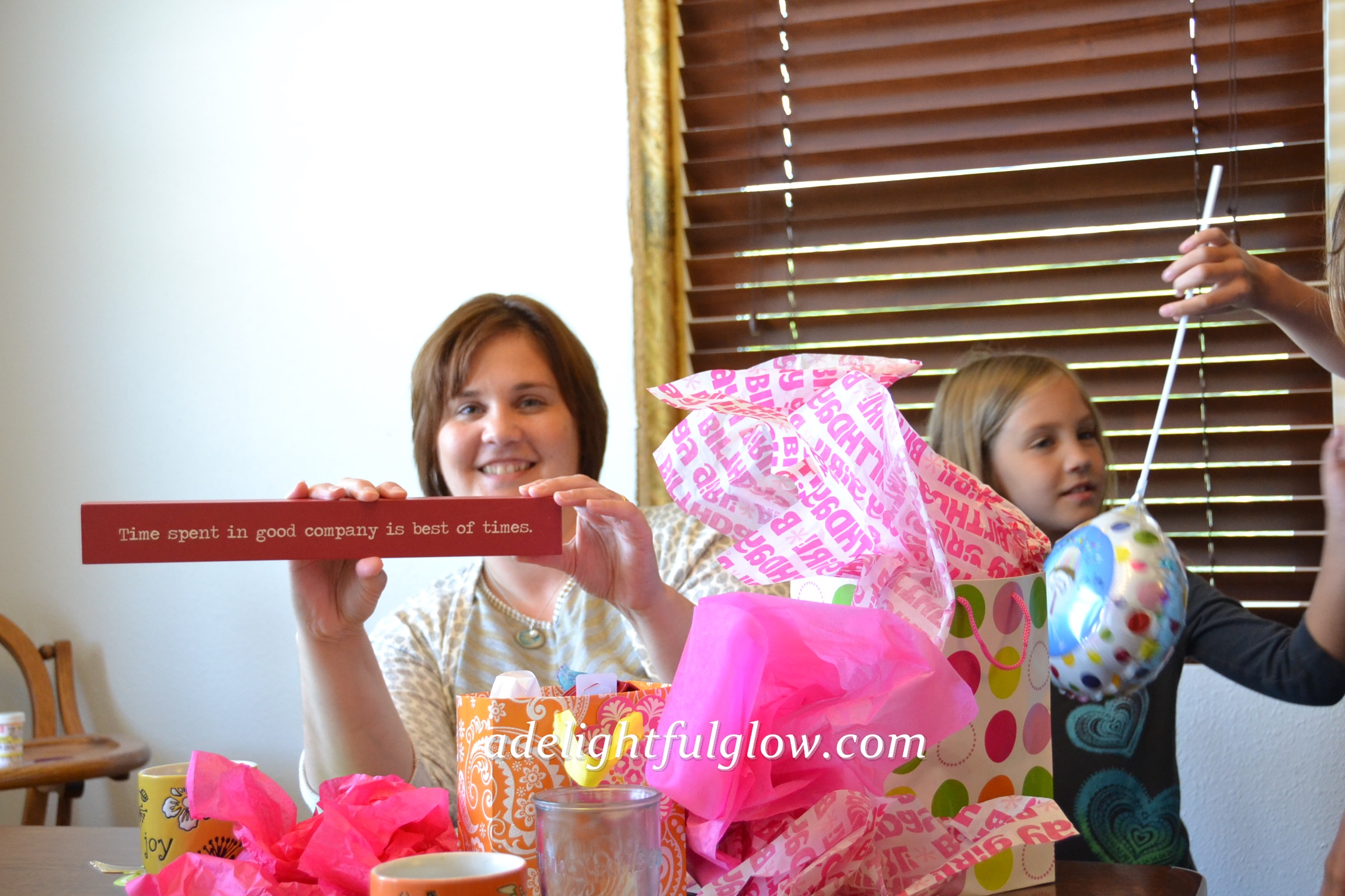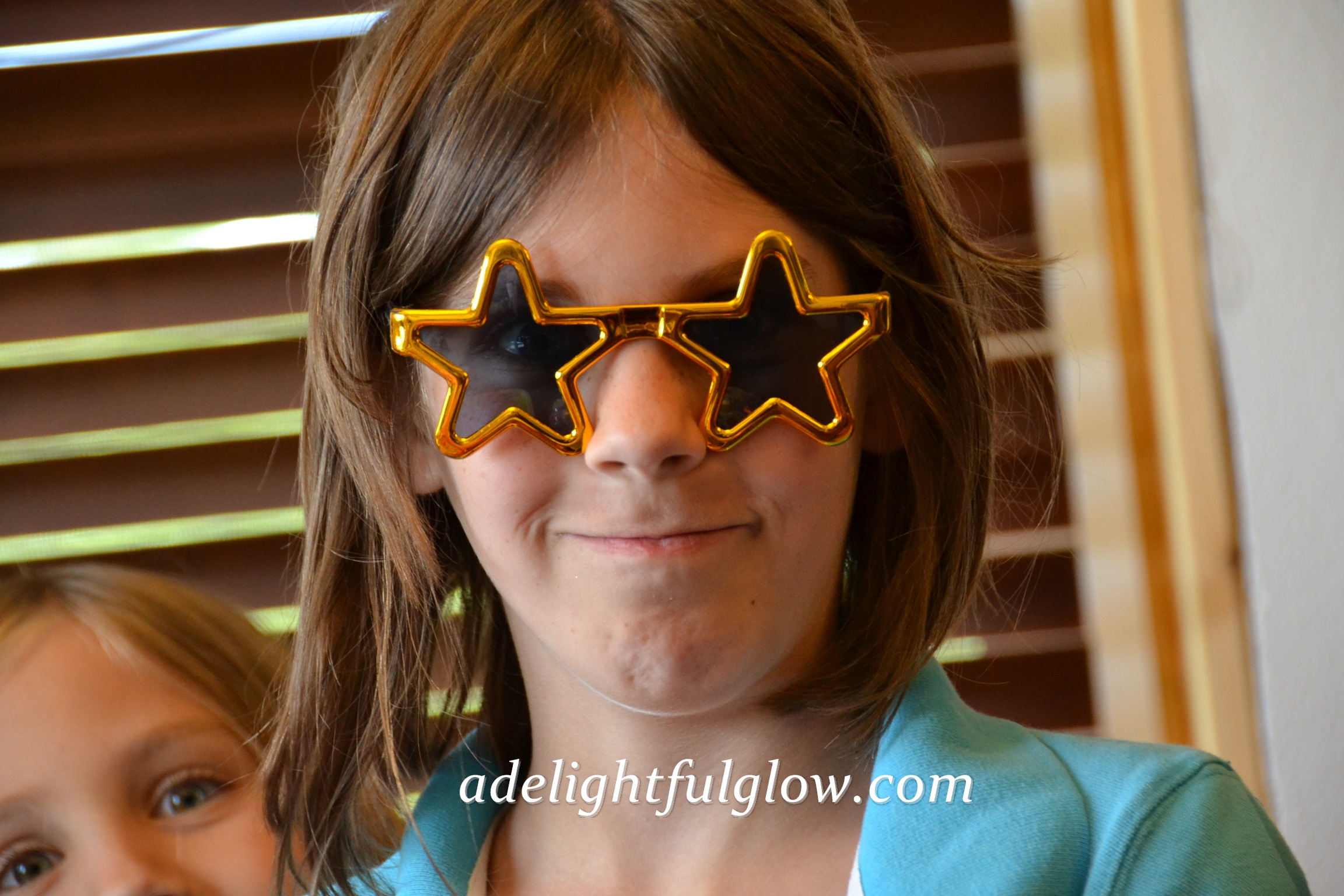 Glasses that came in one of the gift bags! 😉 {And I love little sister’s sparkling eyes in the corner of this photo!}