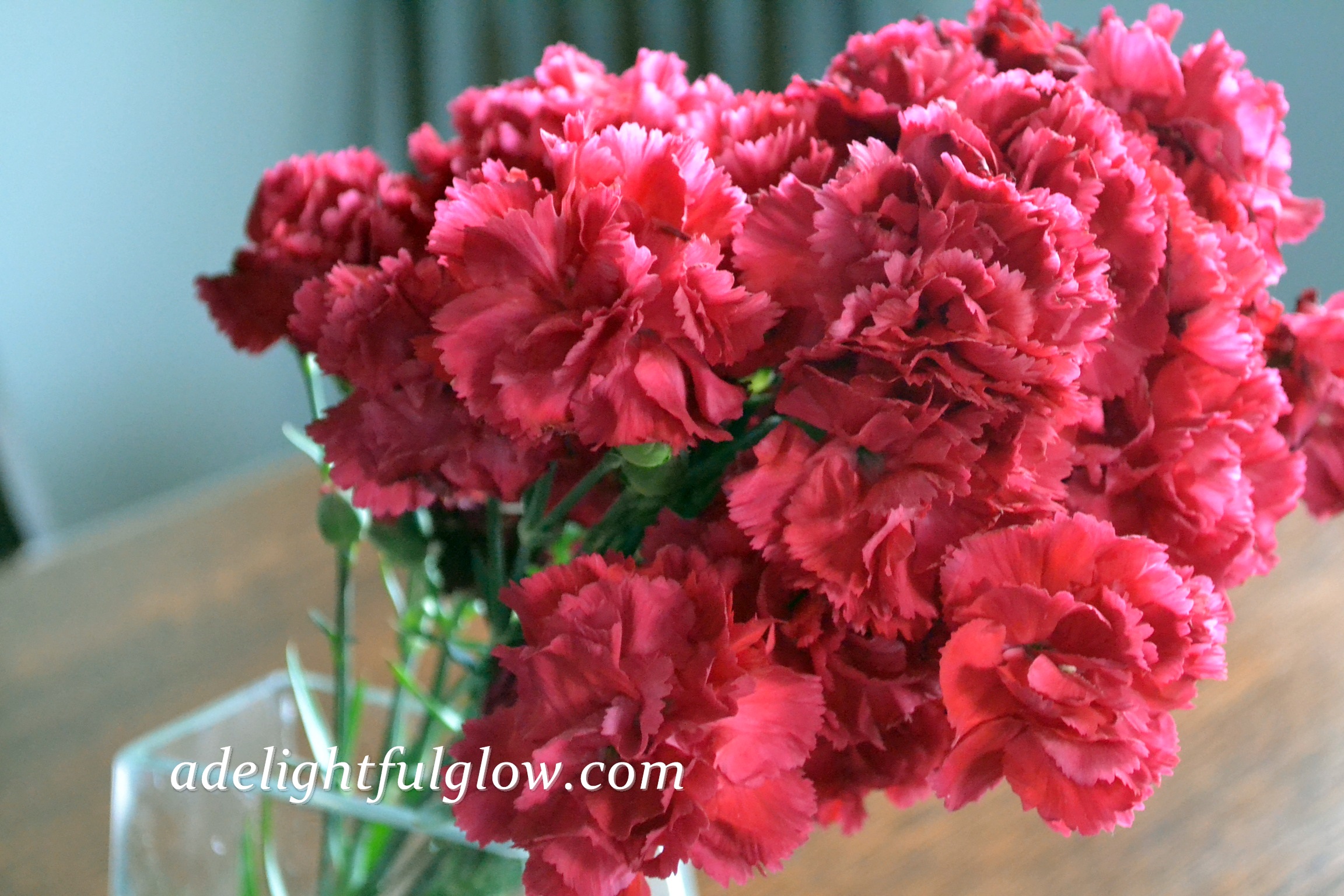 This tiny glass bottle with a sprig of begonia makes me happy.