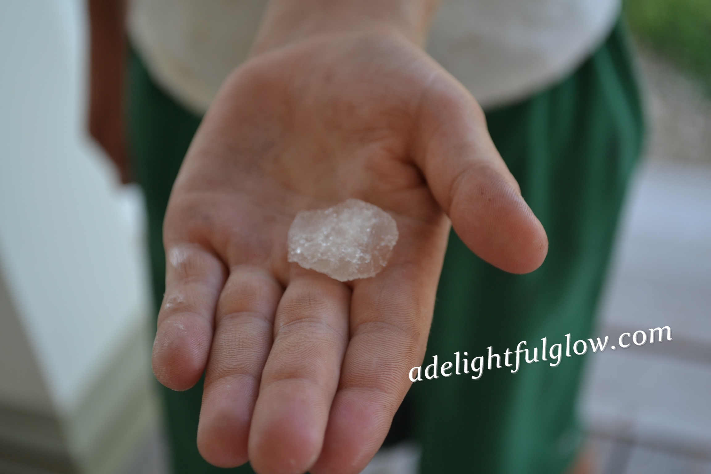 Back in the winter, my son put a bag of snow in the freezer. He remembered it last week and decided to get a bit of it out. He was out on the porch and I did snap this photo, but the small bit was smaller than ever and fast disappearing!